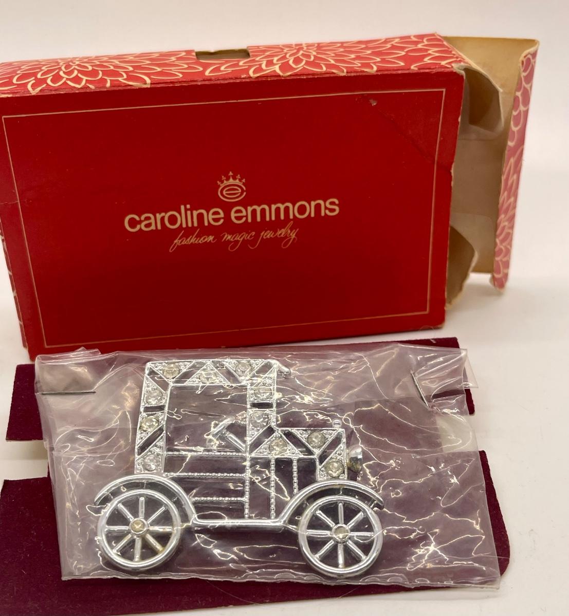 Brooch by Caroline Edmonds Rhinestone Model T Car in Mint Condition