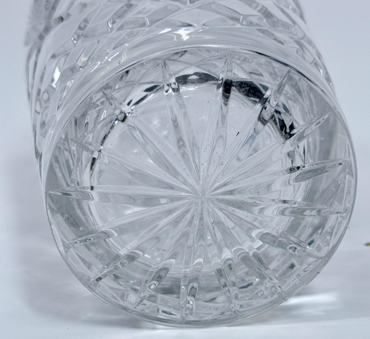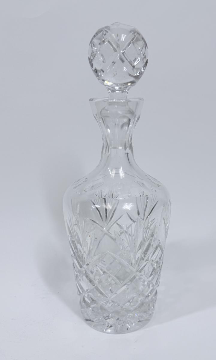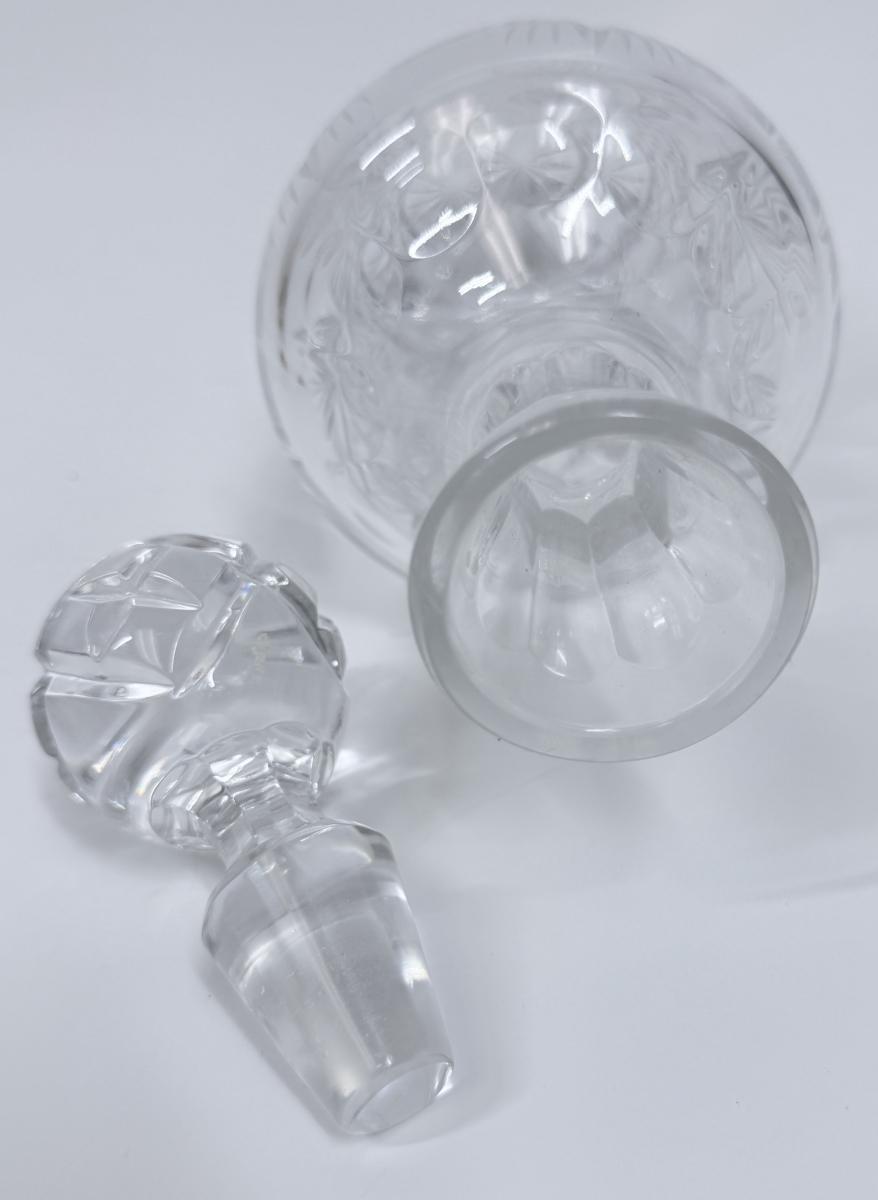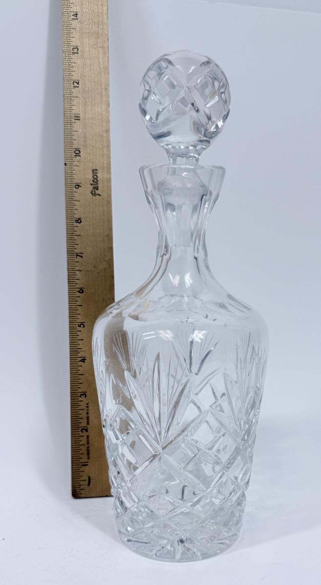 The maker is unknown for this decanter that looks like Waterford but we can't find a mark. Approx. 13" tall.