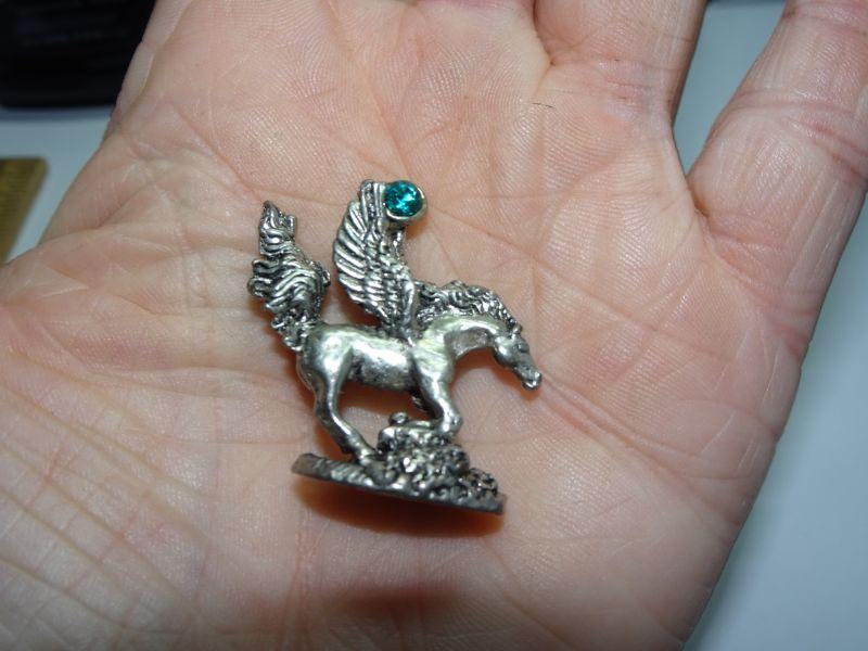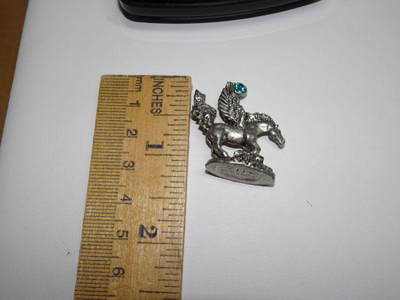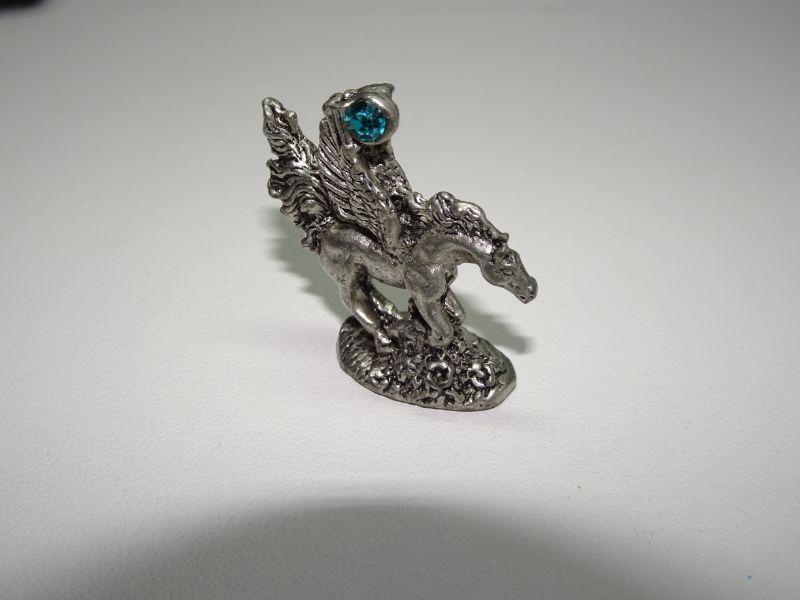 CCI 4119 PEWTER PEGASUS HORSE W/WINGS & TURQUOISE TEAL BLUE RHINESTONE GEM
