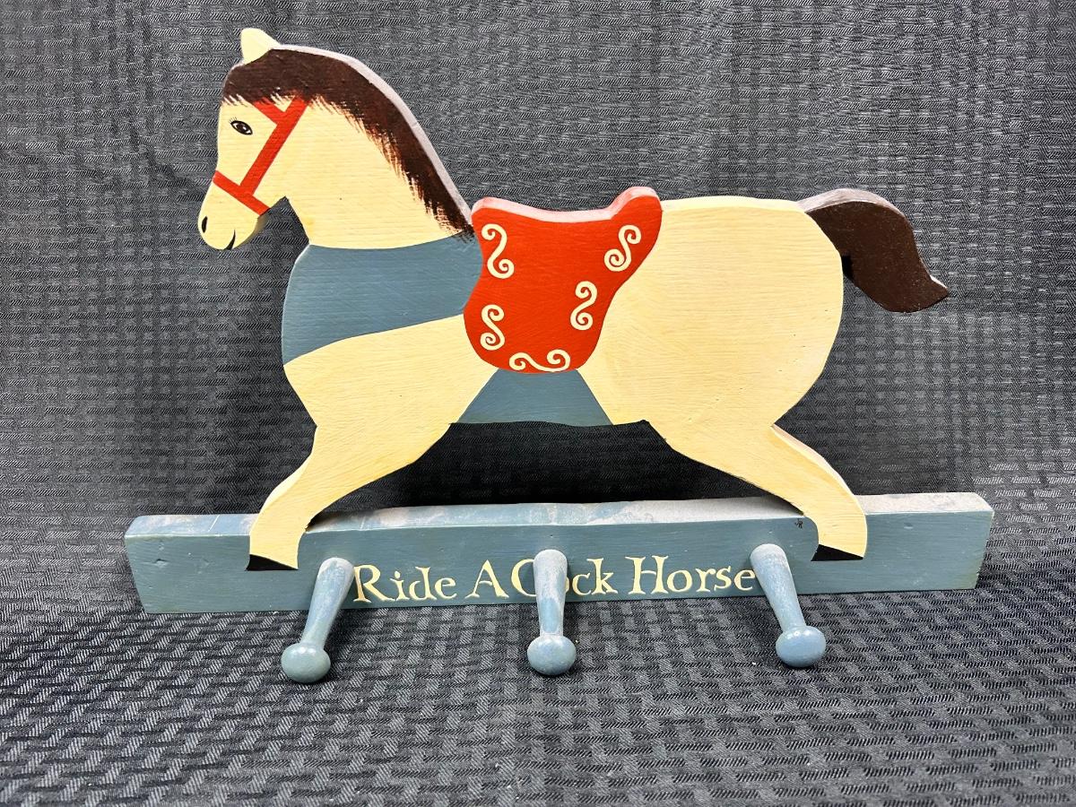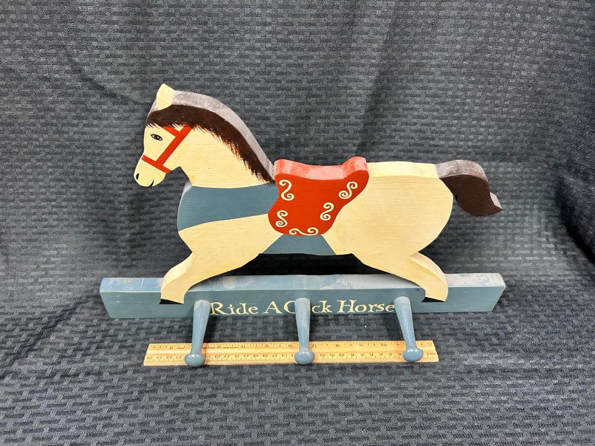Horse Horseback Hat Coat Rack Wall Mounted Wood