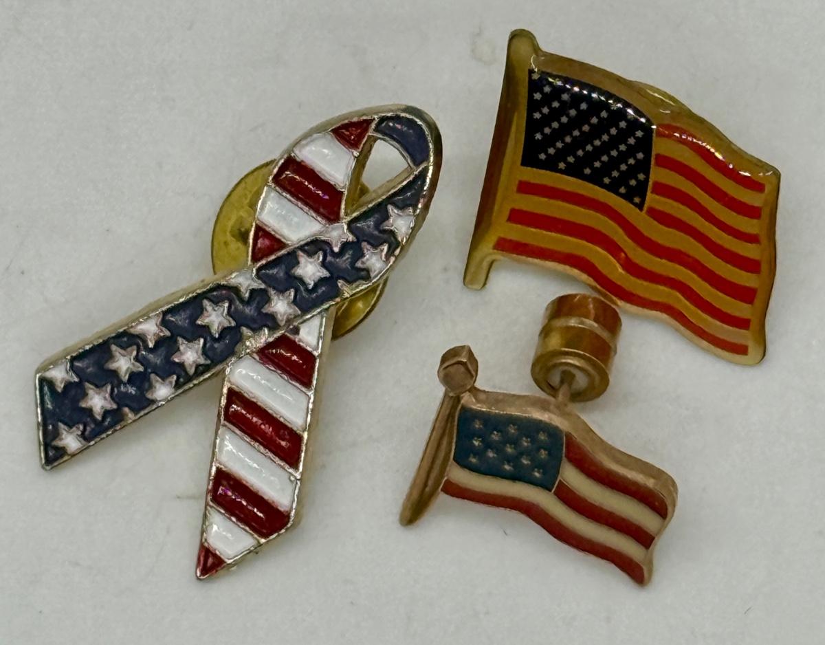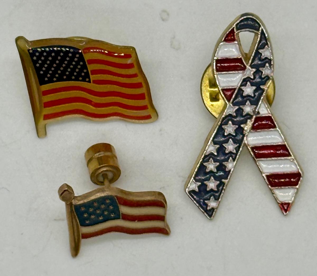 Lot of 3 Vintage America Flag Patriotic Lapel Pins