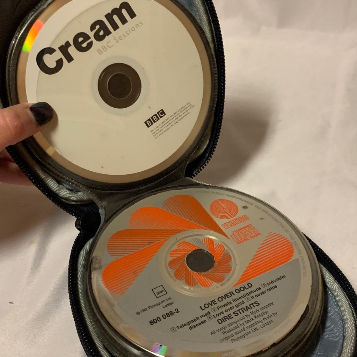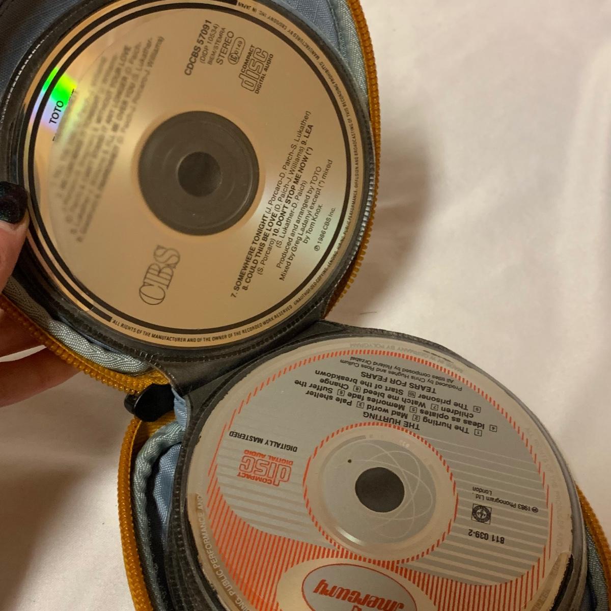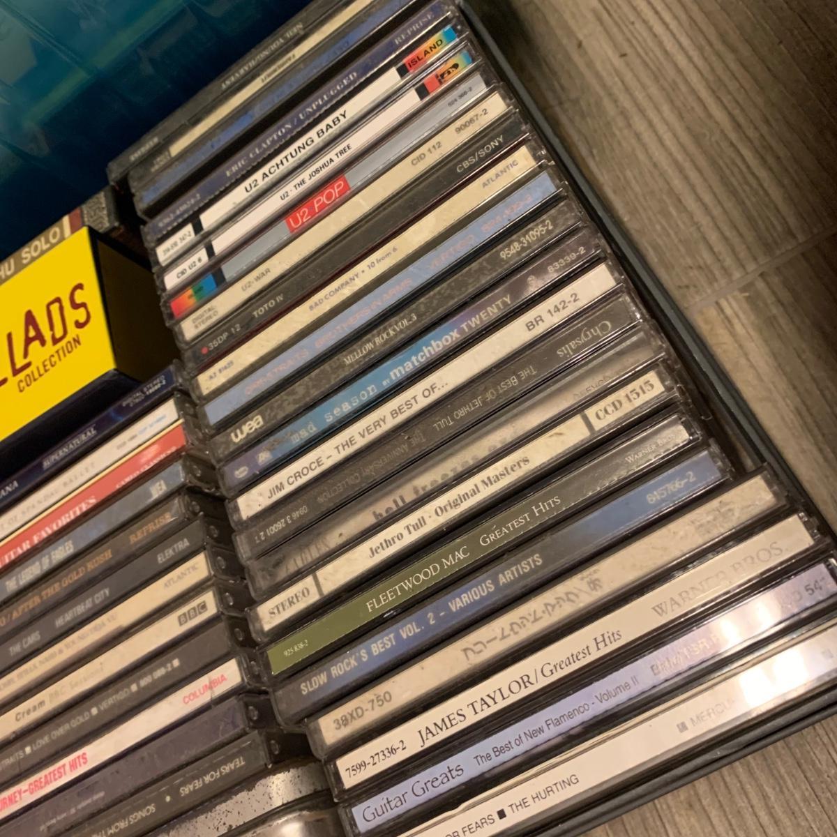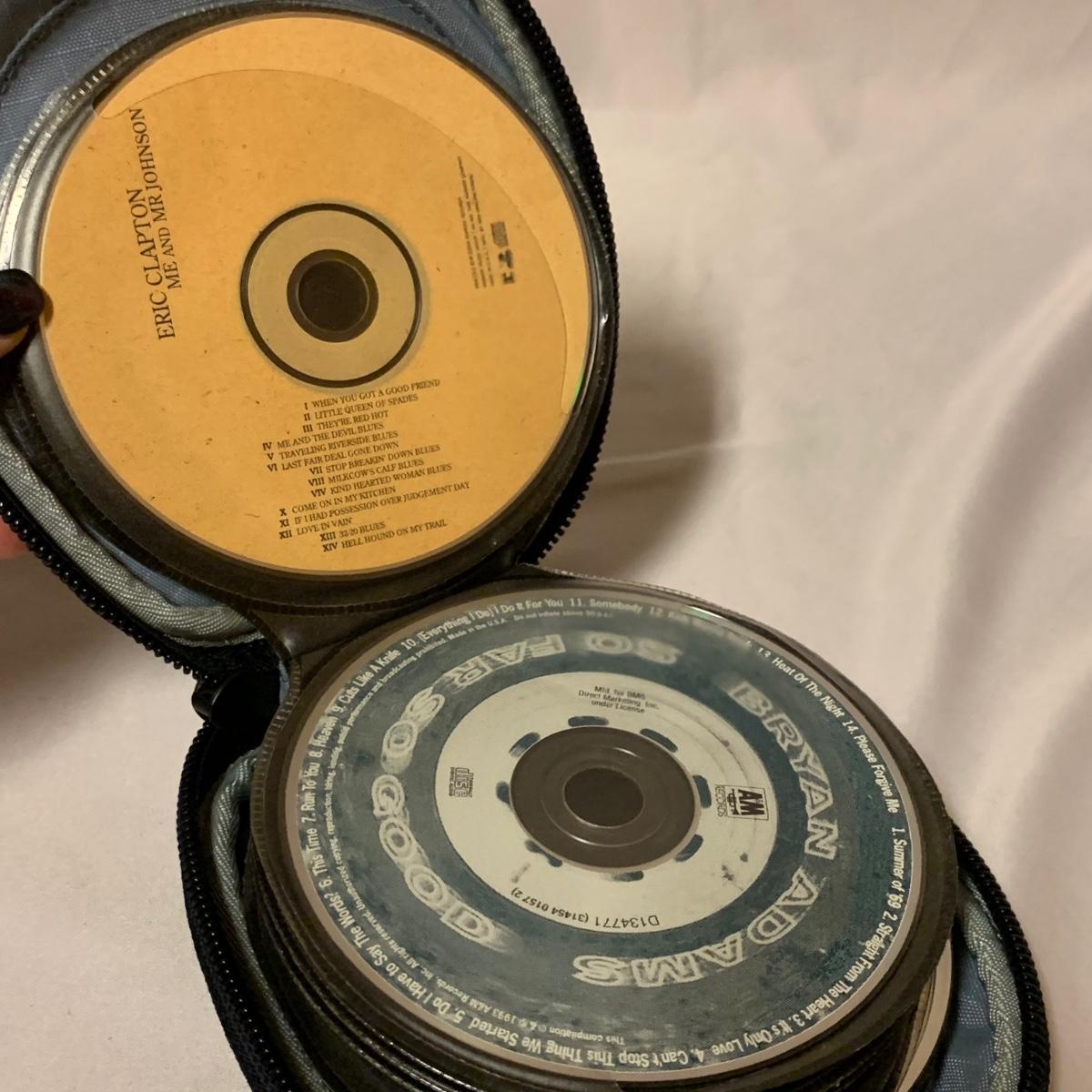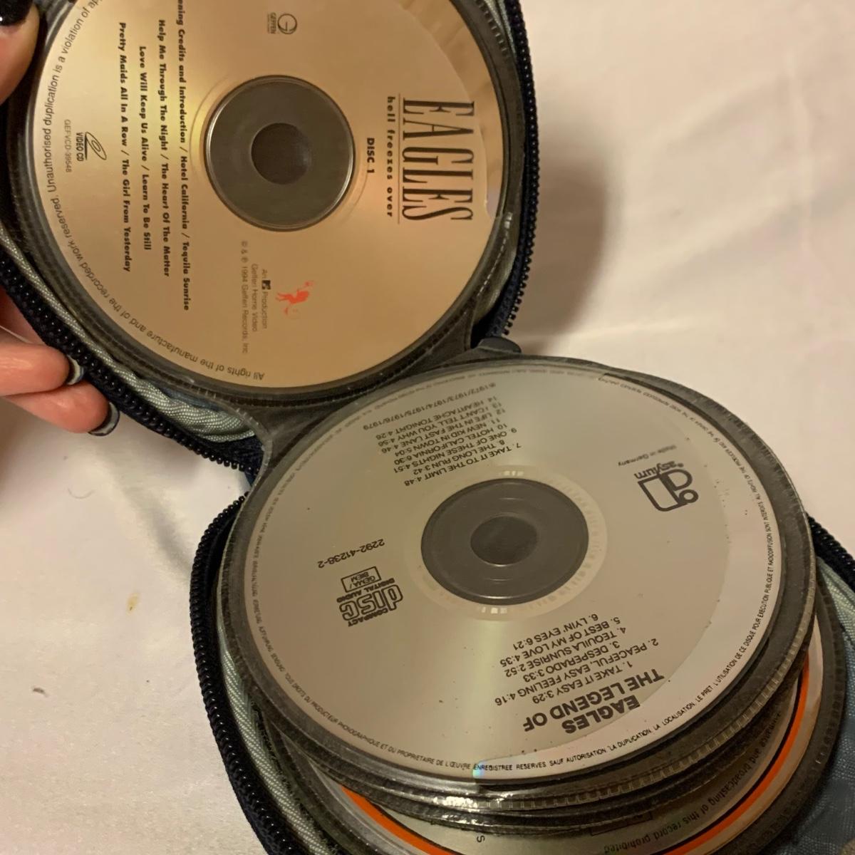 75+ CDs! The majority are in the three Crumpler brand CD cases, and 8 are in their original jewel cases. There is a huge variety of music, including: Eric Clapton, Santana, Jimi Hendrix, Sting, Dire Straits, Toto, Tears for Fears, George Winston, U2, Neil Young, Hiroshima, Chinese classical music, and much more. There are also two boxes of empty CD jewel cases included, that likely belong to the discs in the Crumpler cases. Some discs show wear, but most appear to be in good condition.