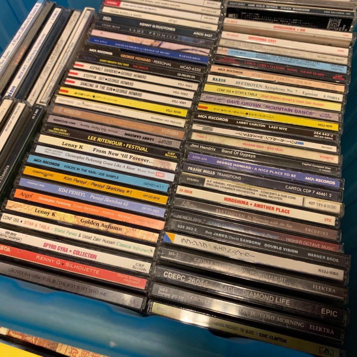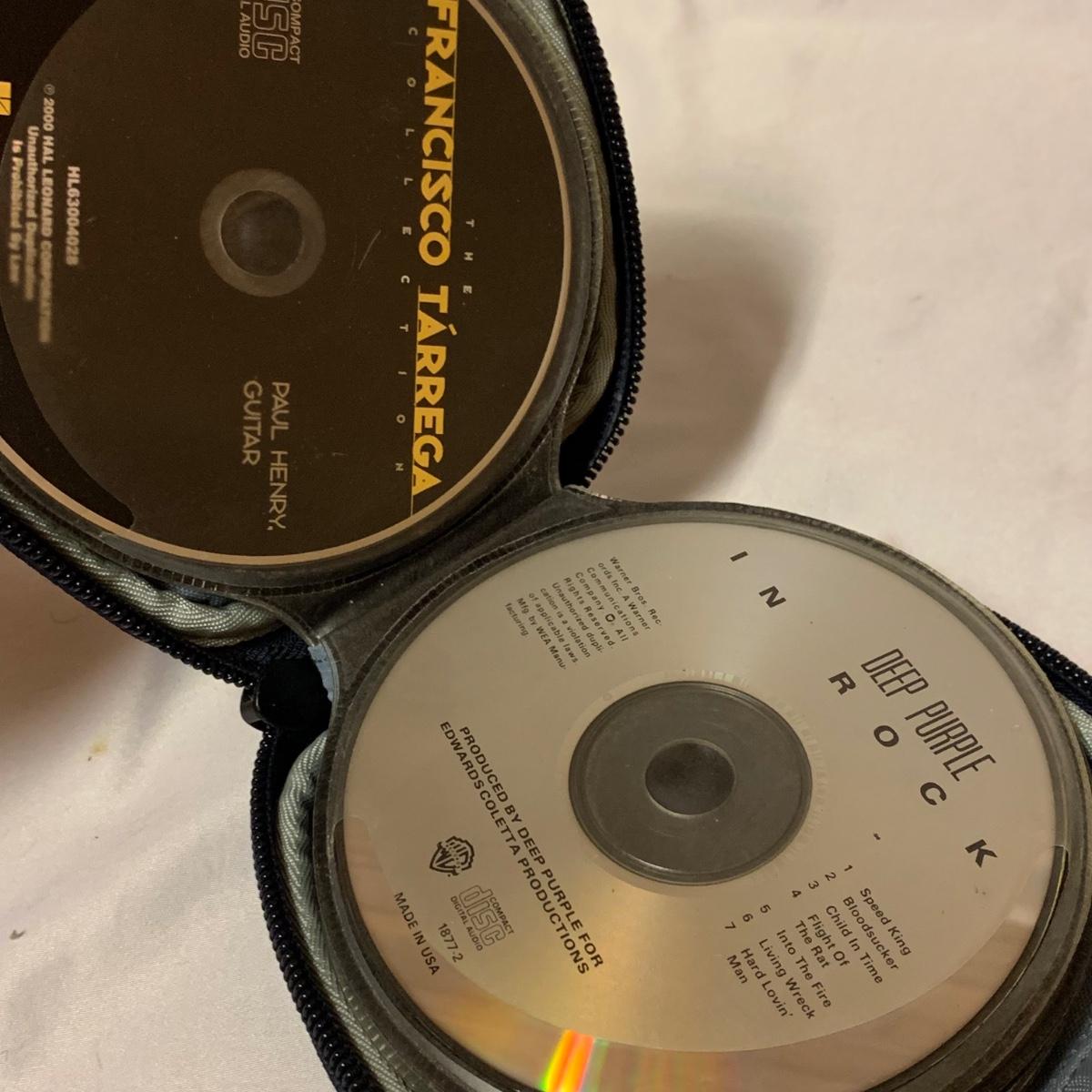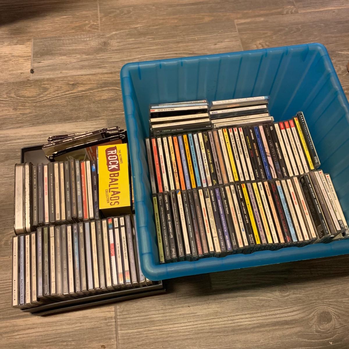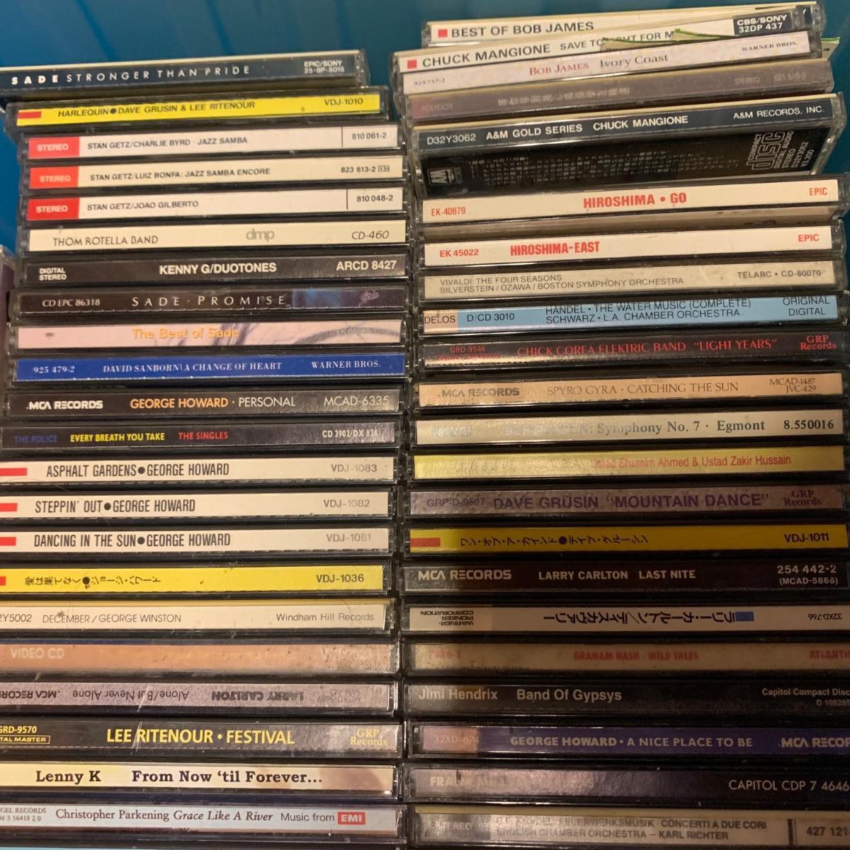 75+ CDs! The majority are in the three Crumpler brand CD cases, and 8 are in their original jewel cases. There is a huge variety of music, including: Eric Clapton, Santana, Jimi Hendrix, Sting, Dire Straits, Toto, Tears for Fears, George Winston, U2, Neil Young, Hiroshima, Chinese classical music, and much more. There are also two boxes of empty CD jewel cases included, that likely belong to the discs in the Crumpler cases. Some discs show wear, but most appear to be in good condition.