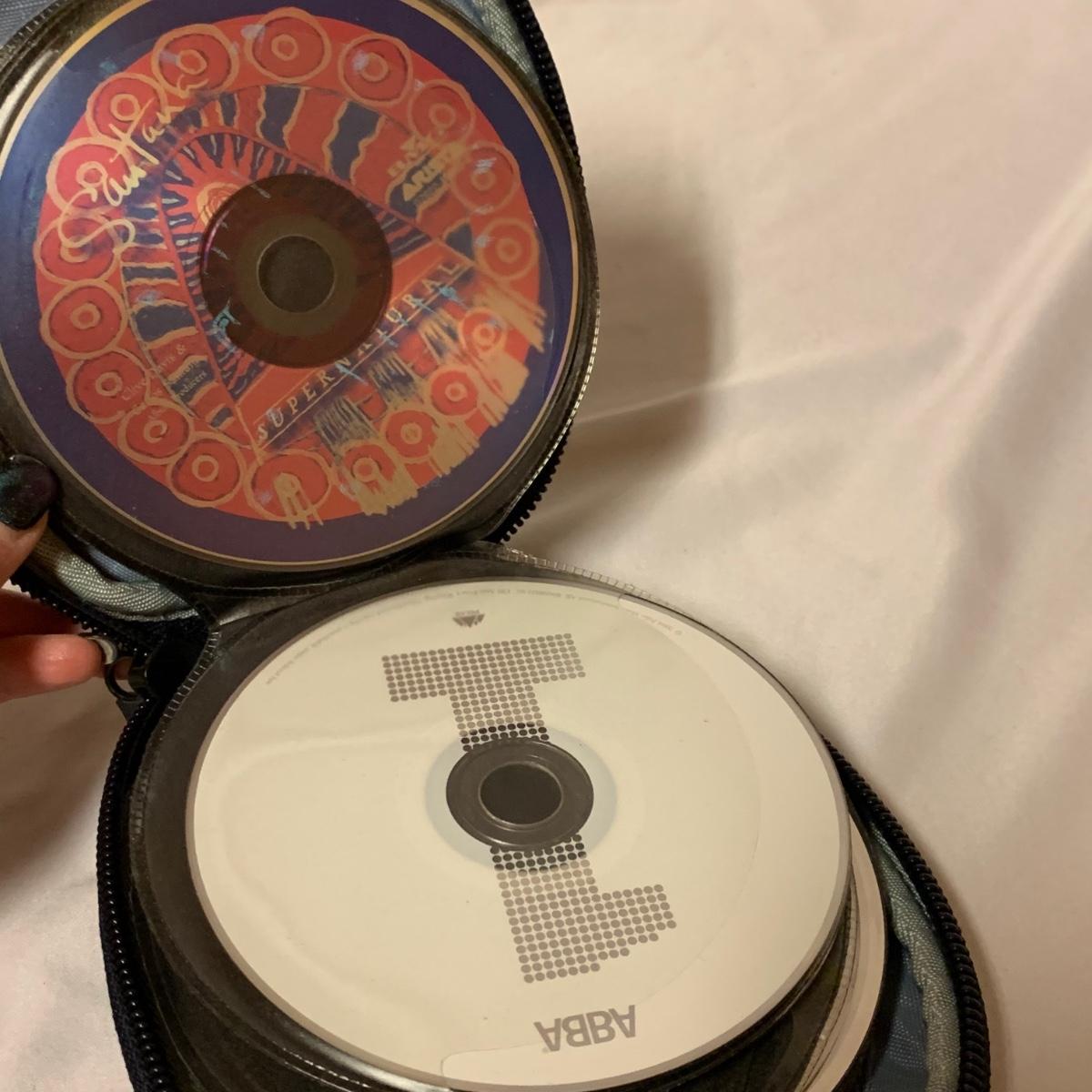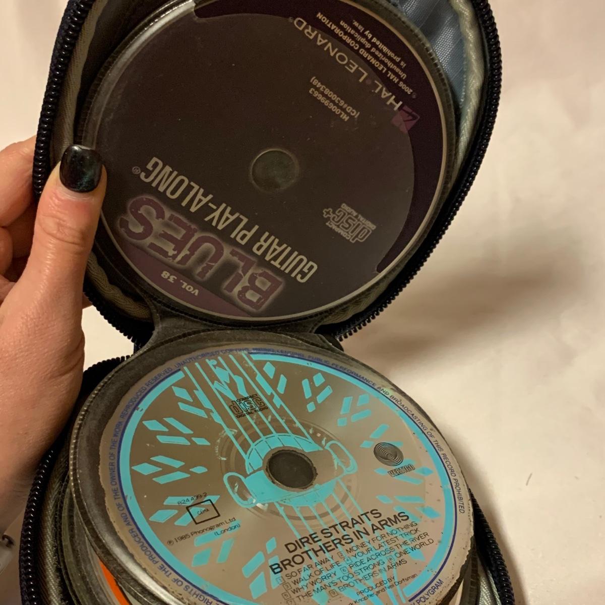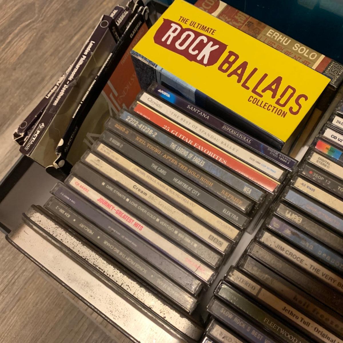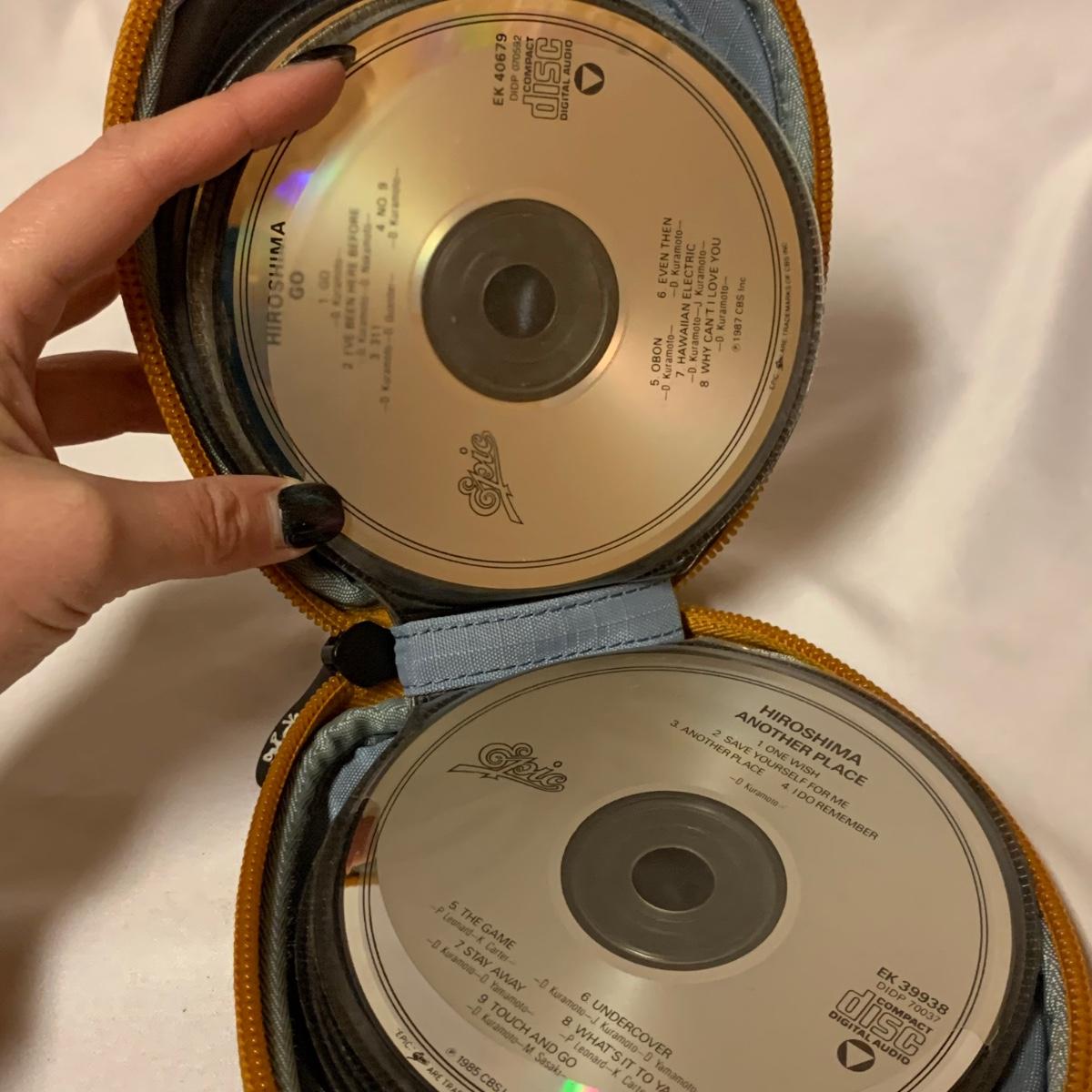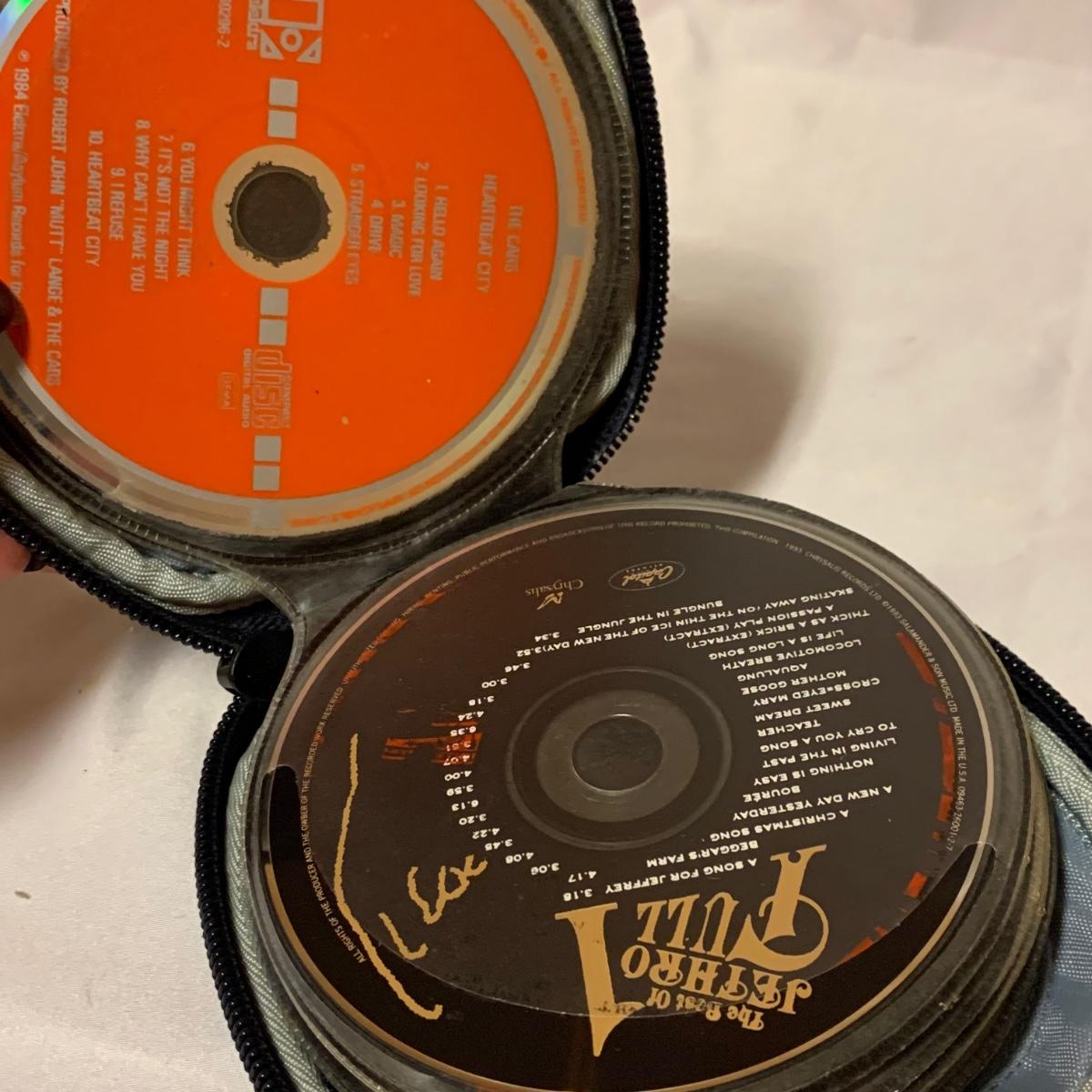 75+ CDs! The majority are in the three Crumpler brand CD cases, and 8 are in their original jewel cases. There is a huge variety of music, including: Eric Clapton, Santana, Jimi Hendrix, Sting, Dire Straits, Toto, Tears for Fears, George Winston, U2, Neil Young, Hiroshima, Chinese classical music, and much more. There are also two boxes of empty CD jewel cases included, that likely belong to the discs in the Crumpler cases. Some discs show wear, but most appear to be in good condition.