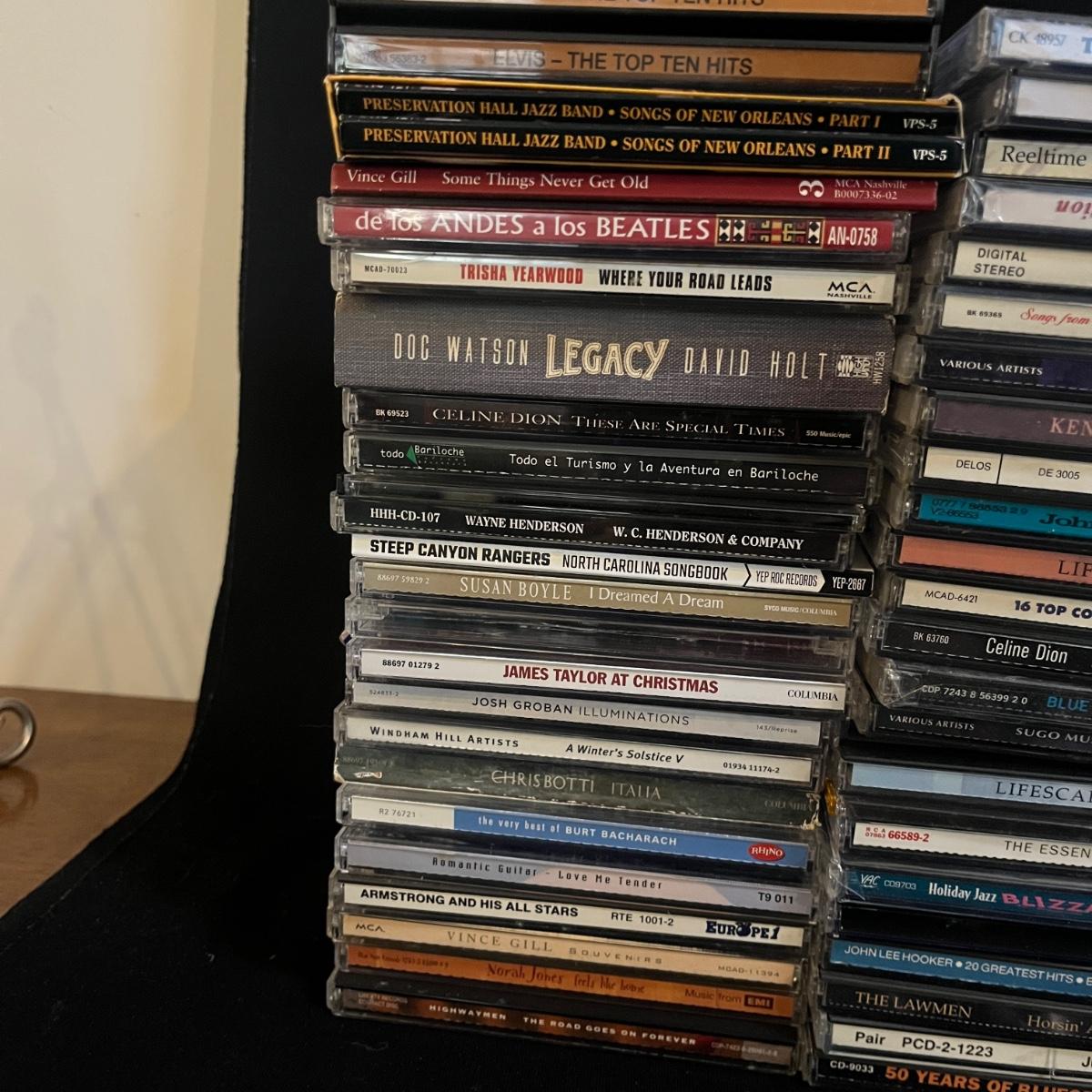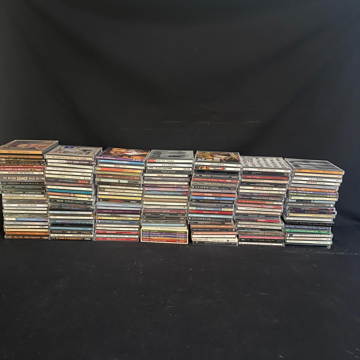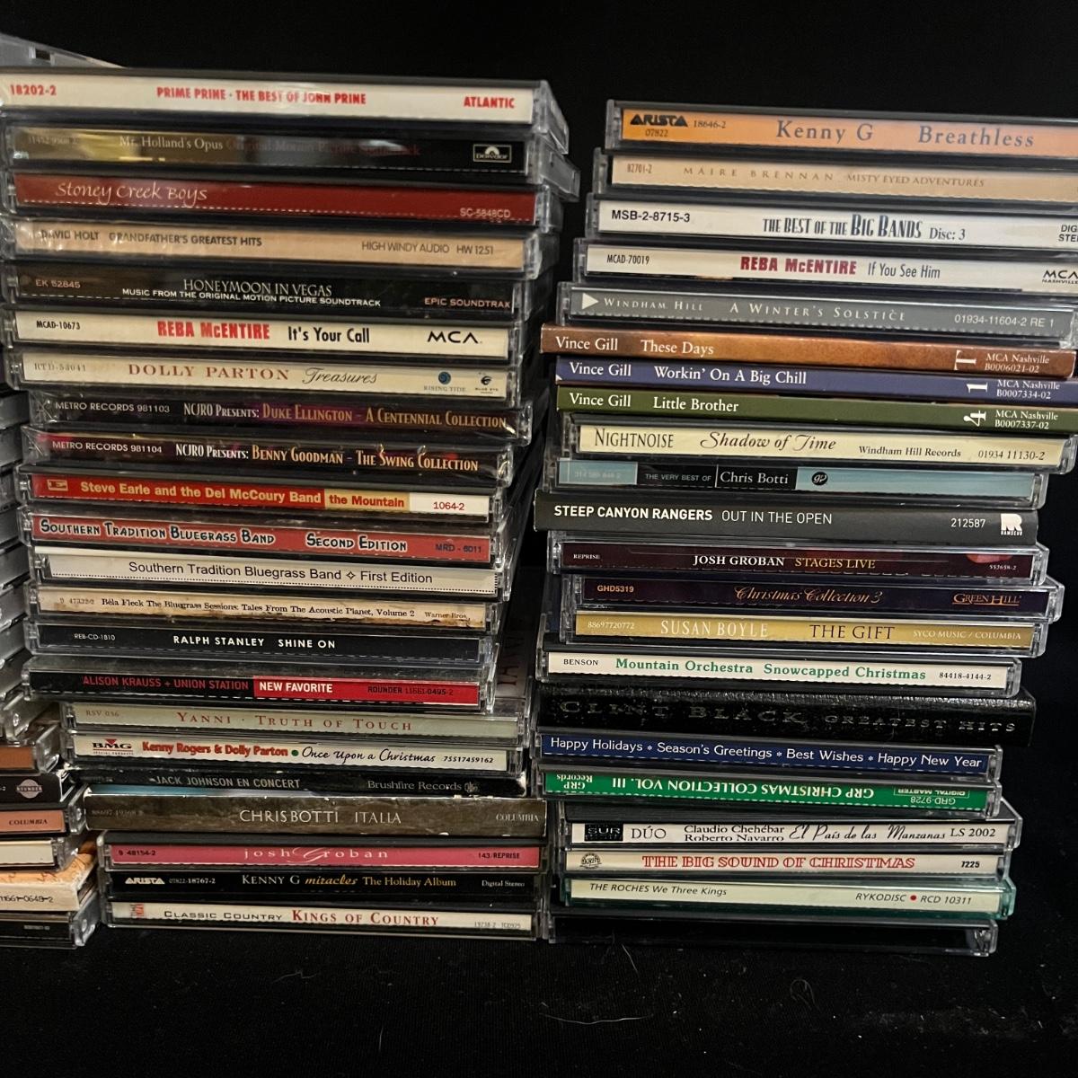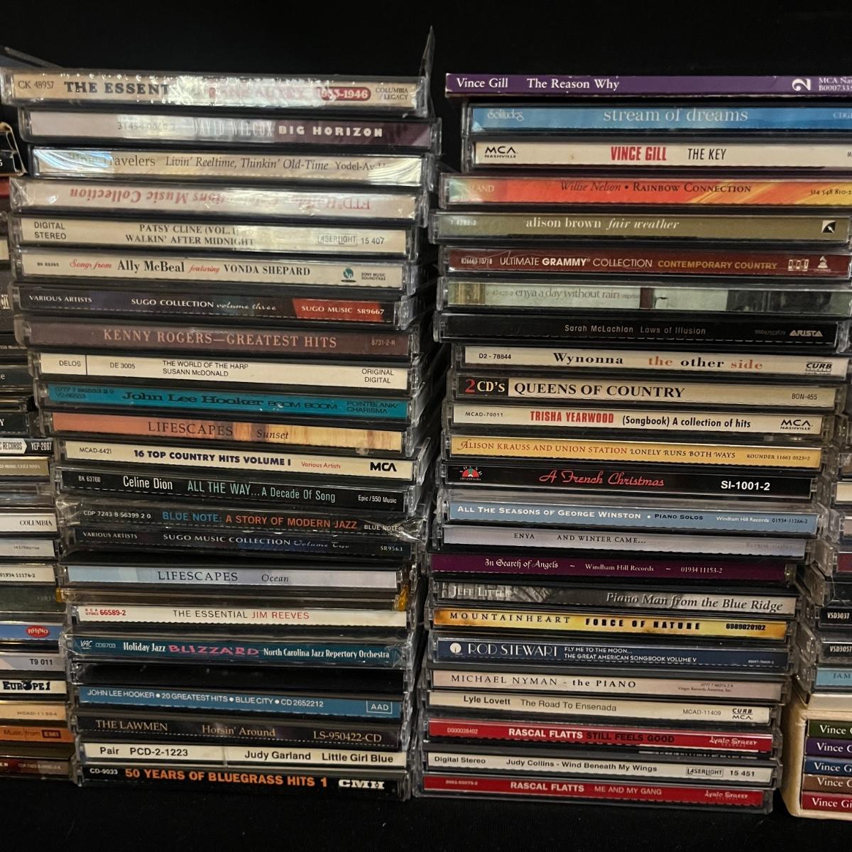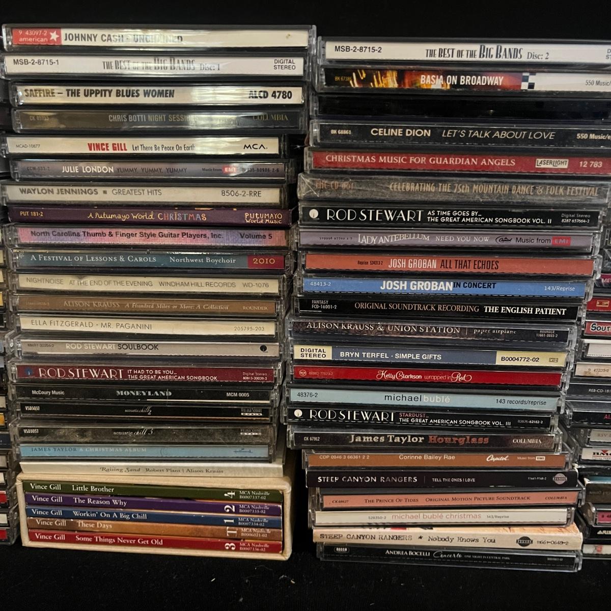 Lot contains over 120 CDs including music by Rod Stewart, Vince Gill, James Taylor, Reba McIntire, Celine Dion, Trisha Yearwood and many more.