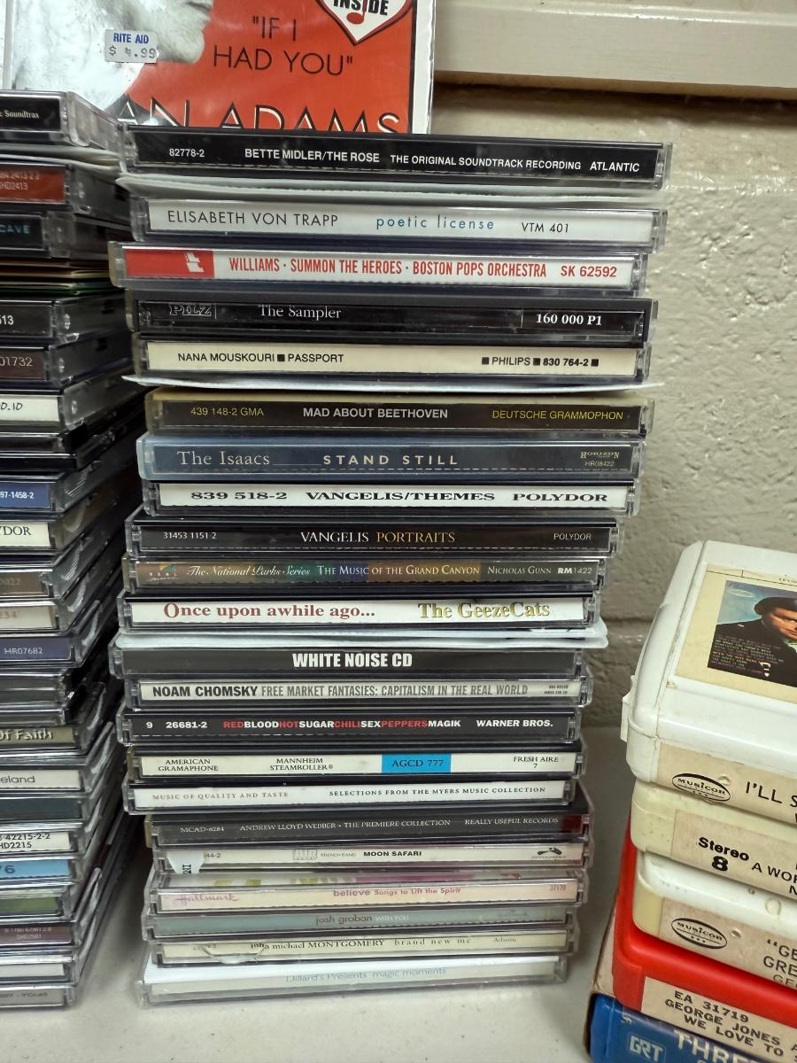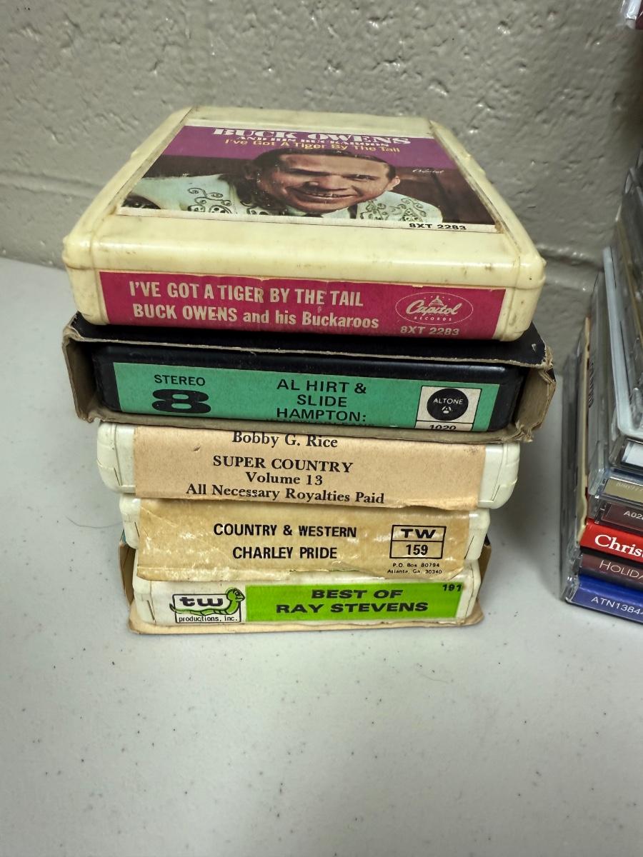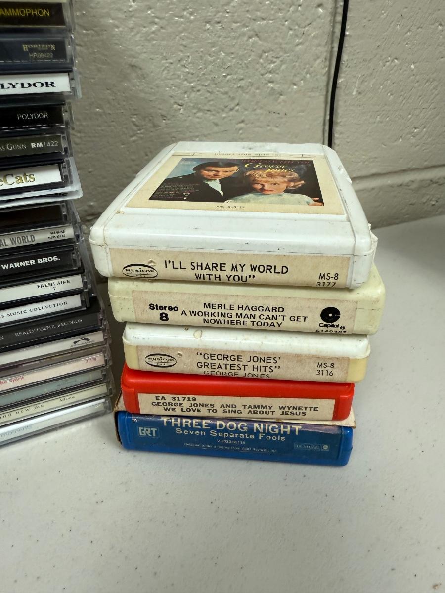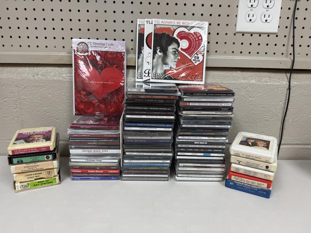 70+Assorted genre music CDs, 10 8Track tapers, 6 love cards w/cd