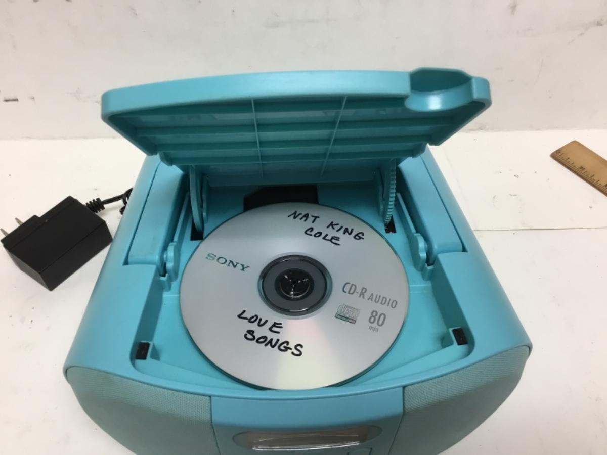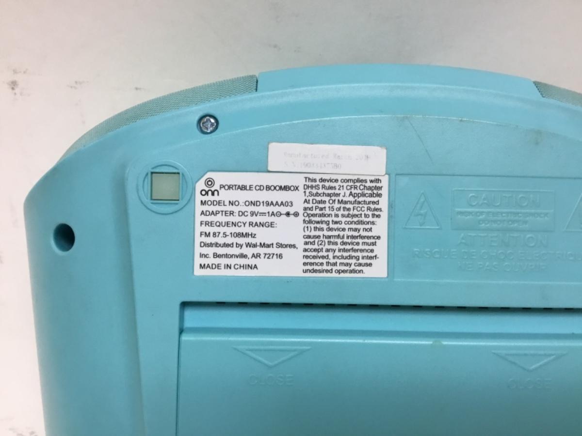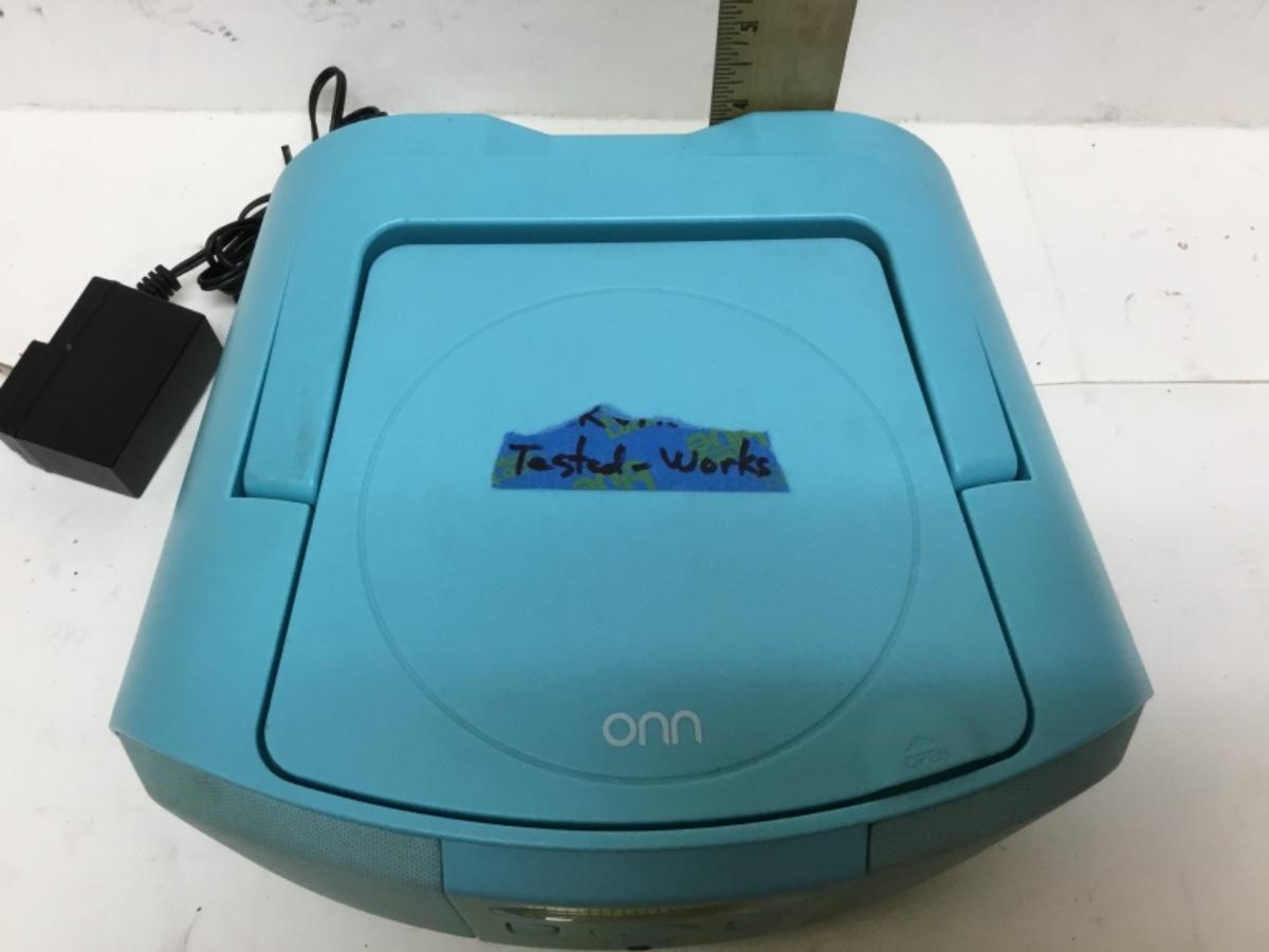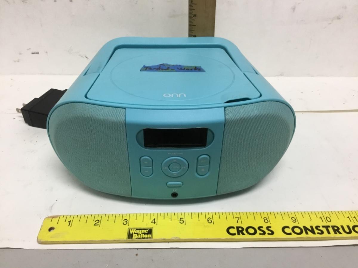 Small Bright Blue Onn Portable CD Player Boombox. Tested and works. Corded or battery op.