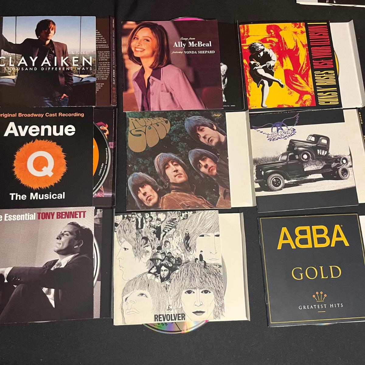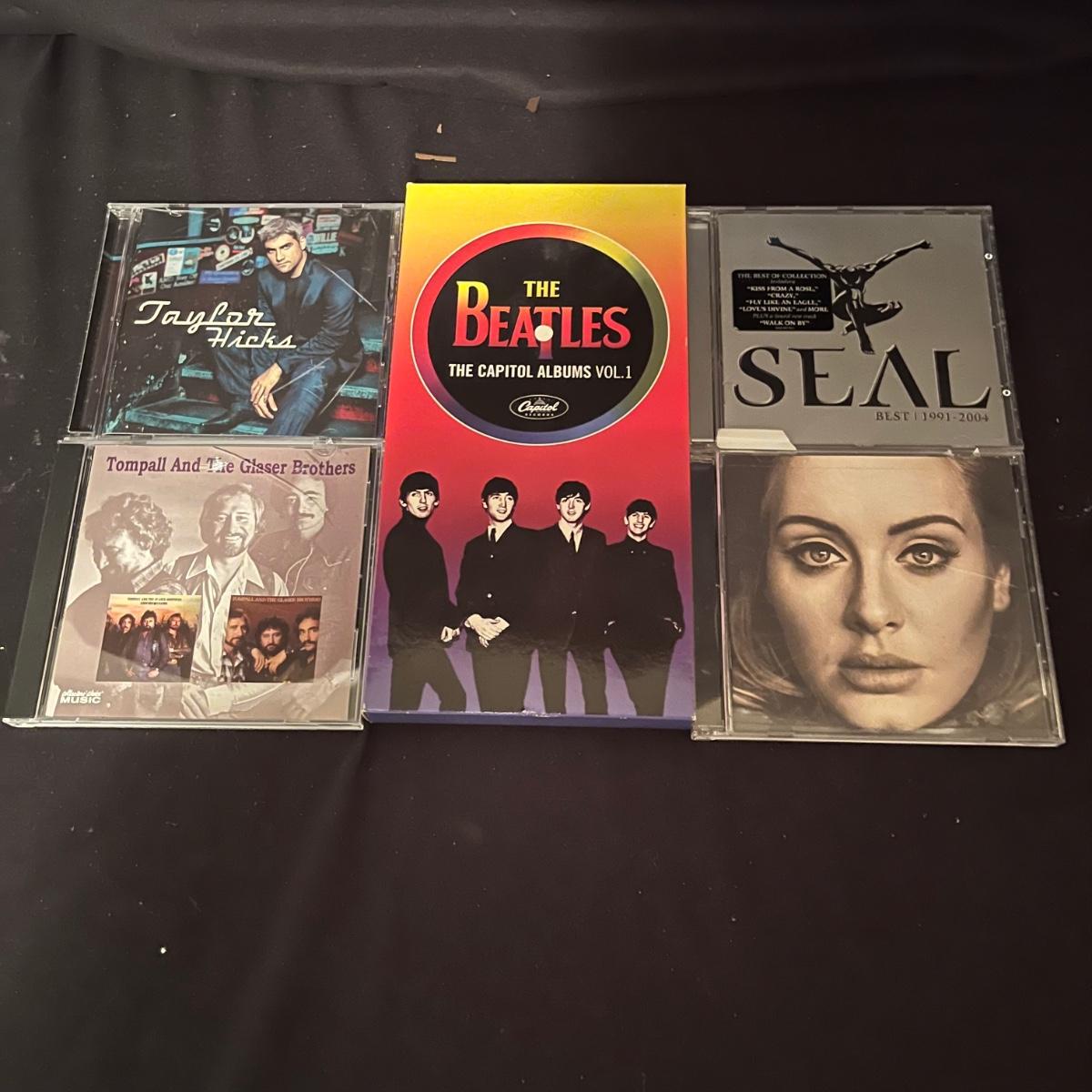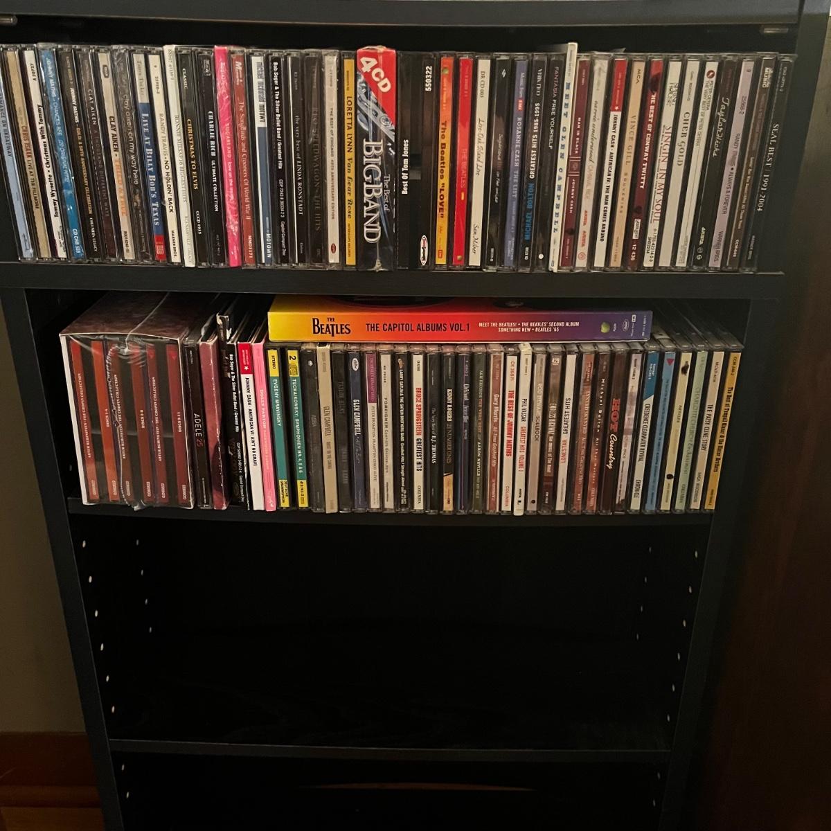 Lot contains over seventy CDs in cases including Adele, The Beatles, Seal, Cher, Bob Seger and many more. Also includes over seventy CDs without hard cases for a total of over 140 CDs. Shelving not included.