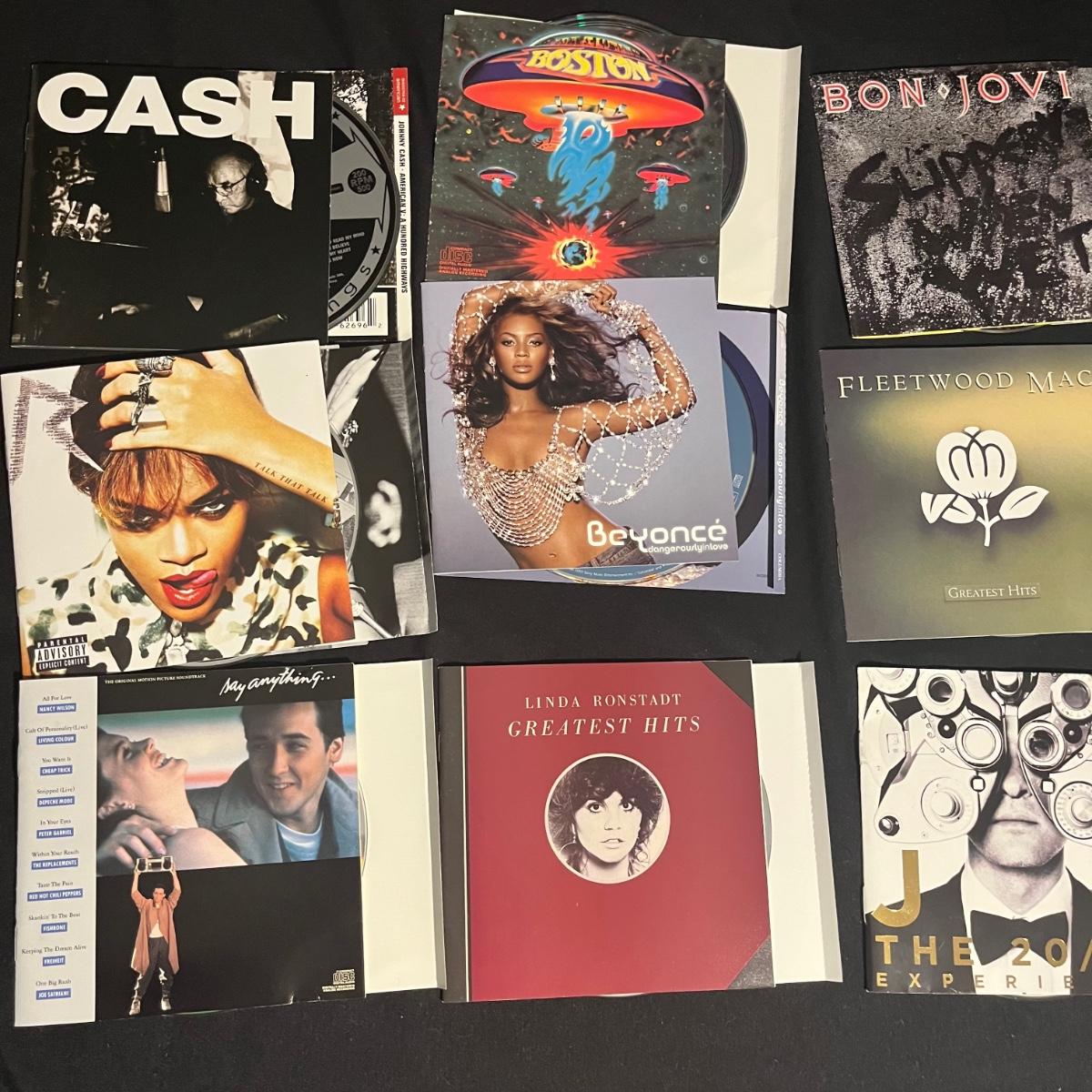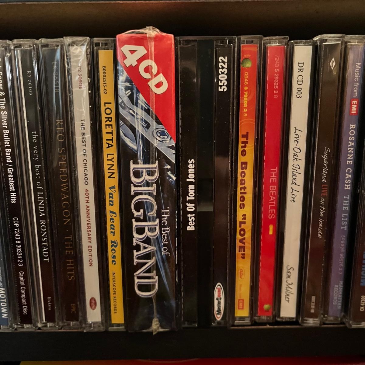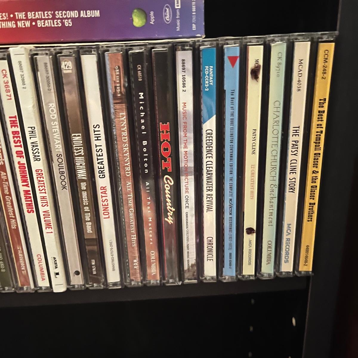 Lot contains over seventy CDs in cases including Adele, The Beatles, Seal, Cher, Bob Seger and many more. Also includes over seventy CDs without hard cases for a total of over 140 CDs. Shelving not included.