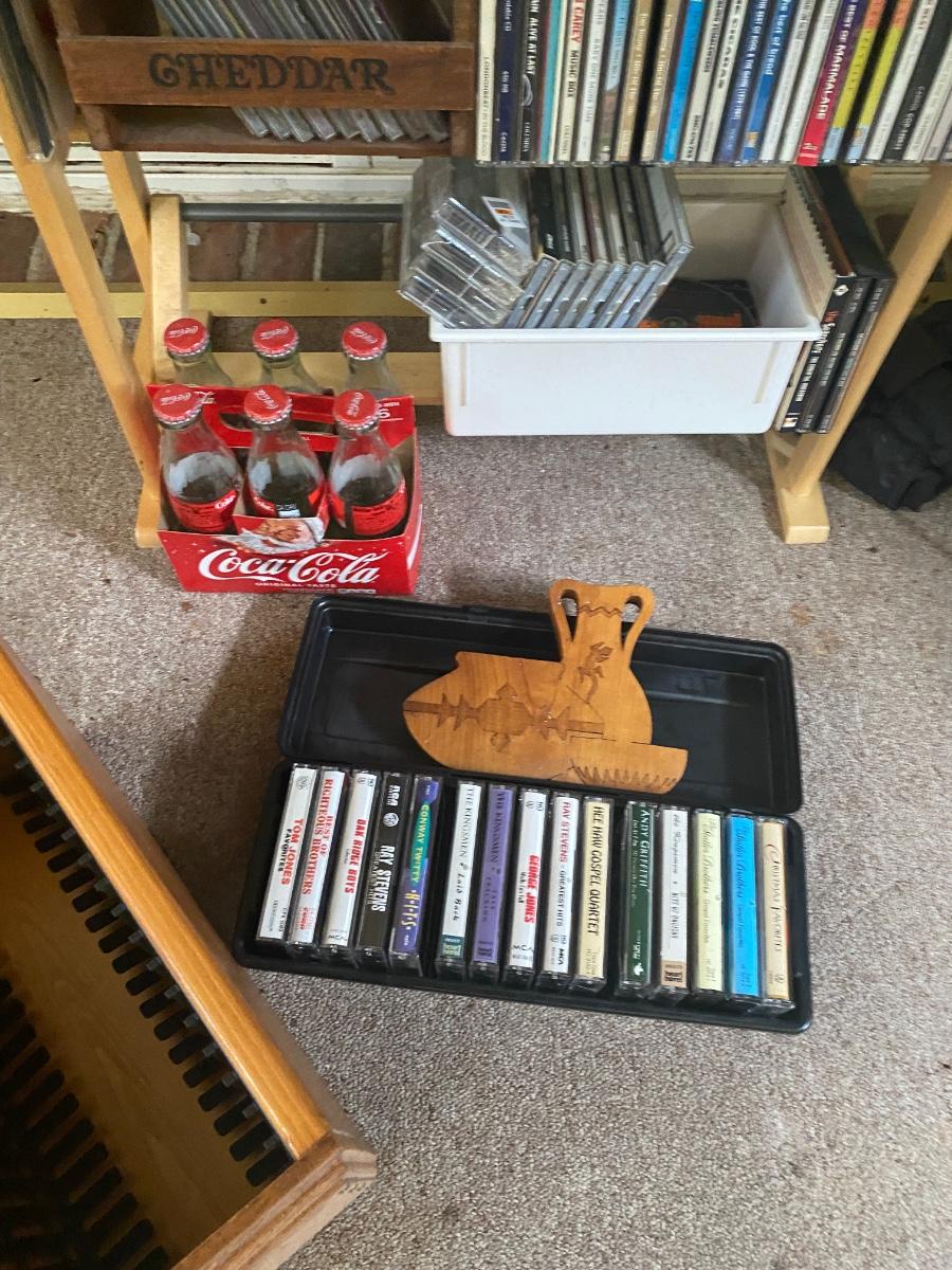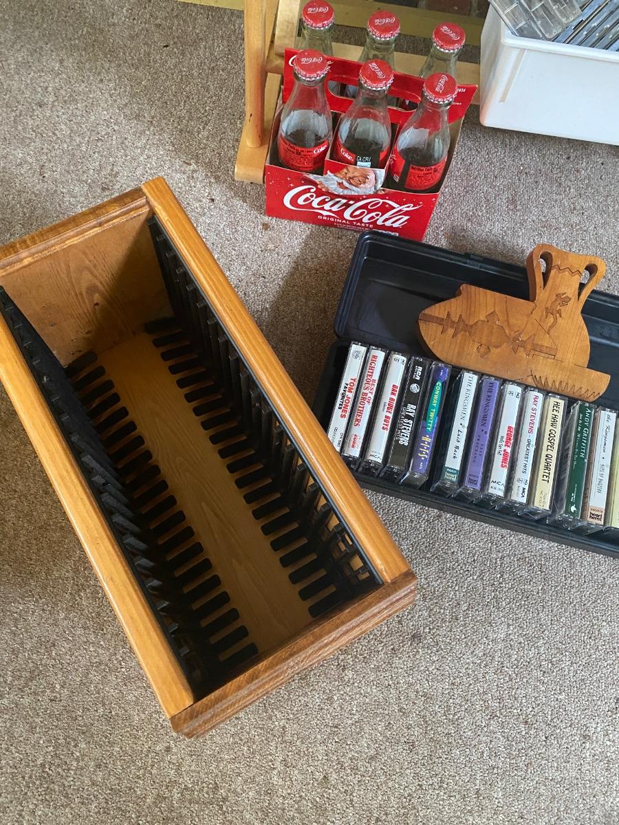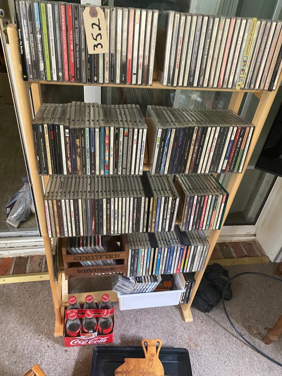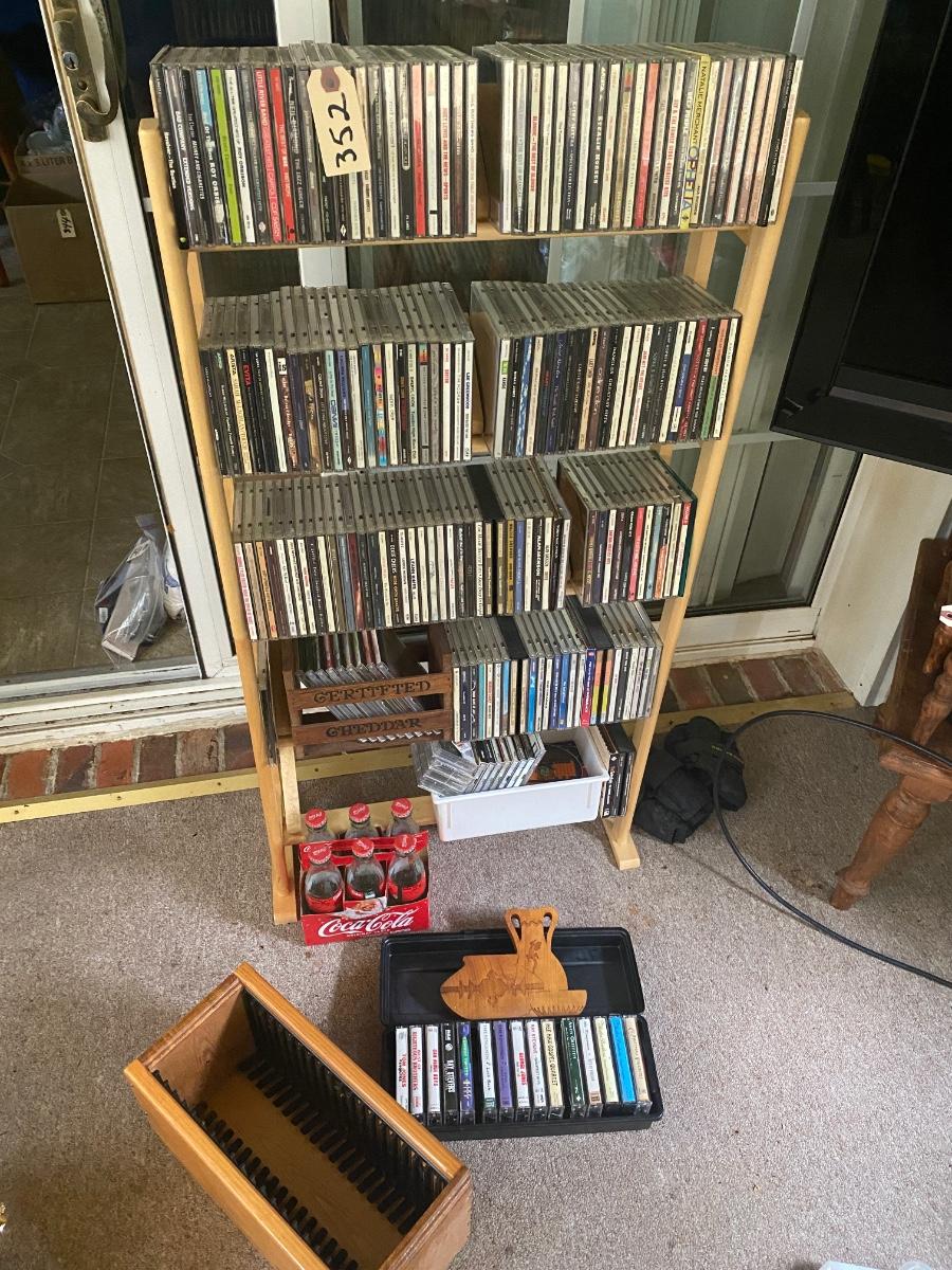 Cds,DVDs, cassette tape lot icludes stands as pictured