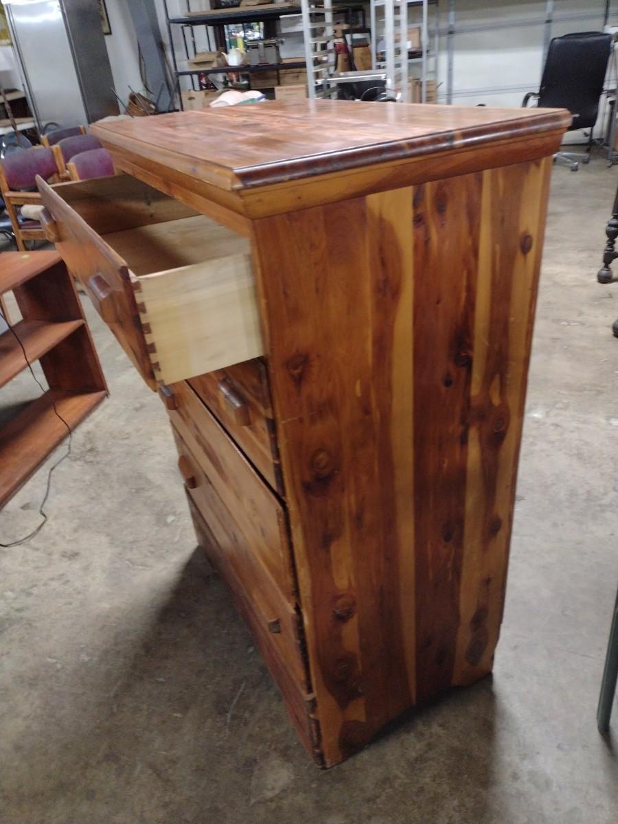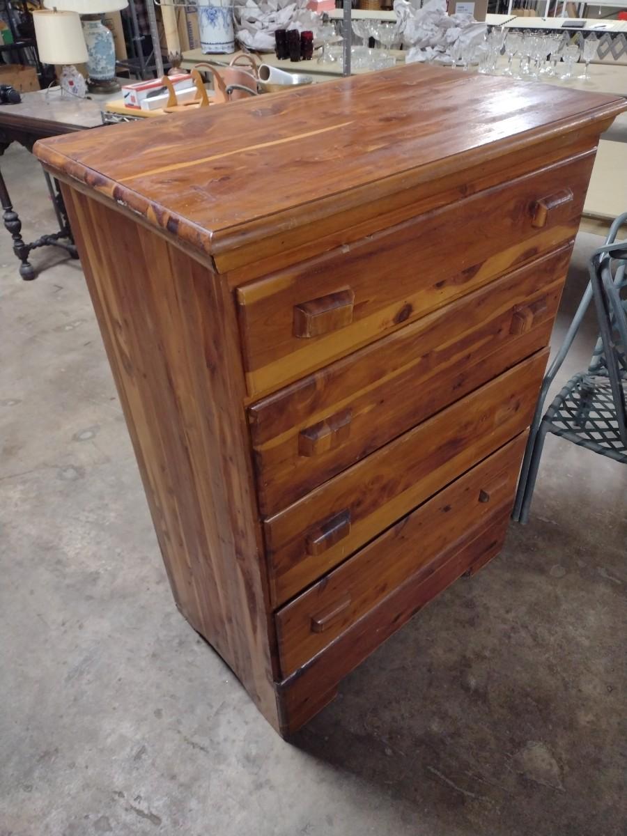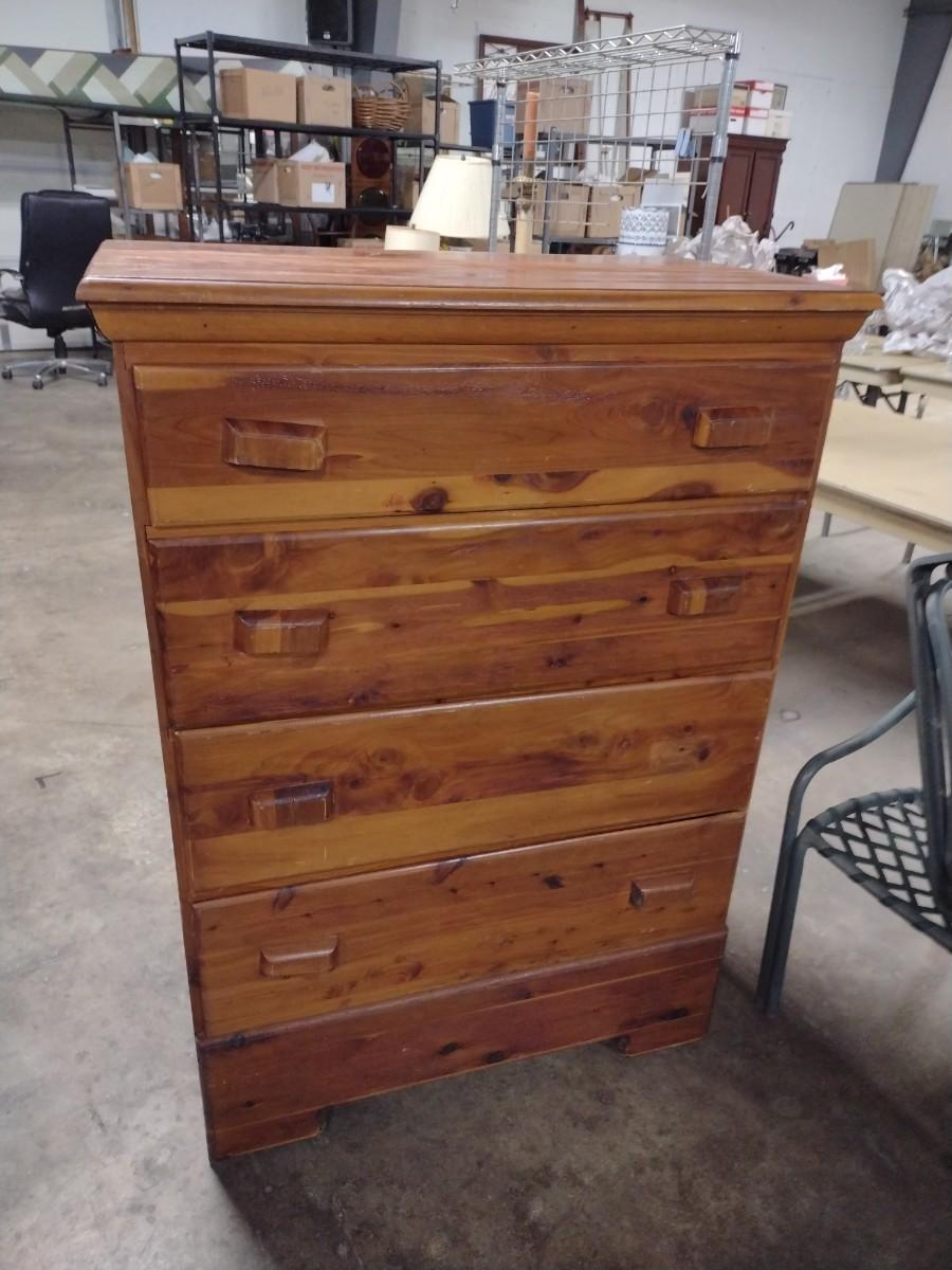 Cedar Four Drawer Dresser one pull will need to be repaired