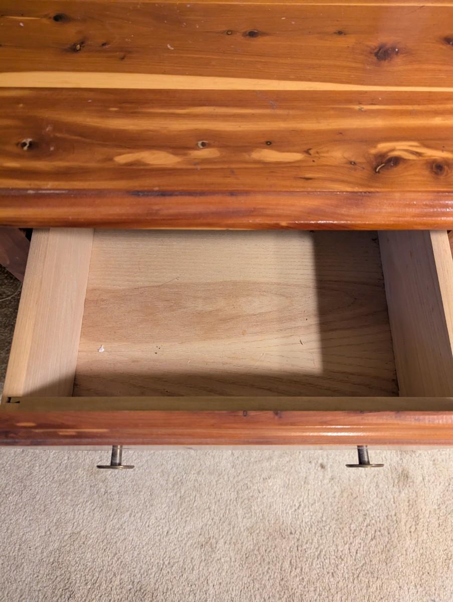 Cedar Bedroom Night Stand - You have to take dresser out the front door. The deck is not safe to walk on