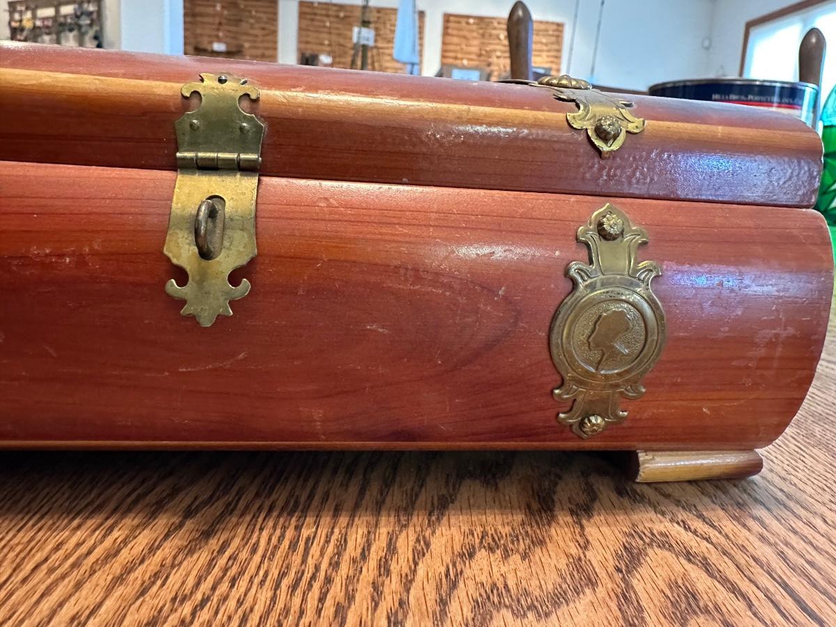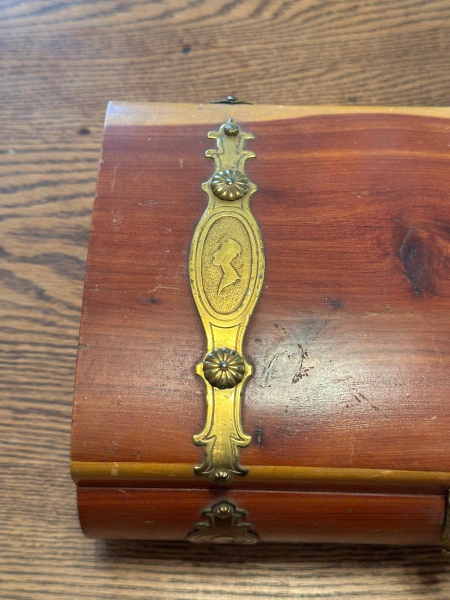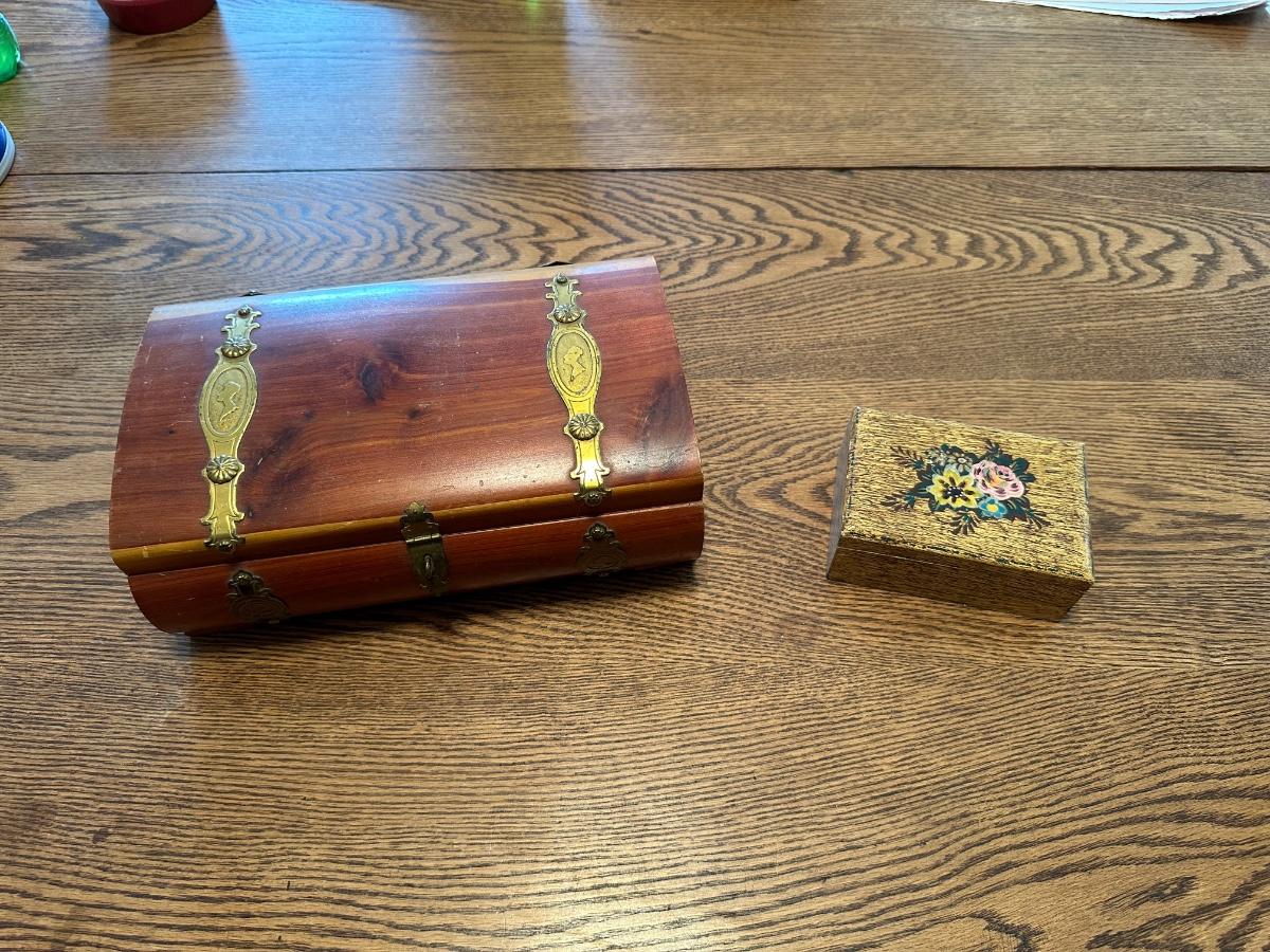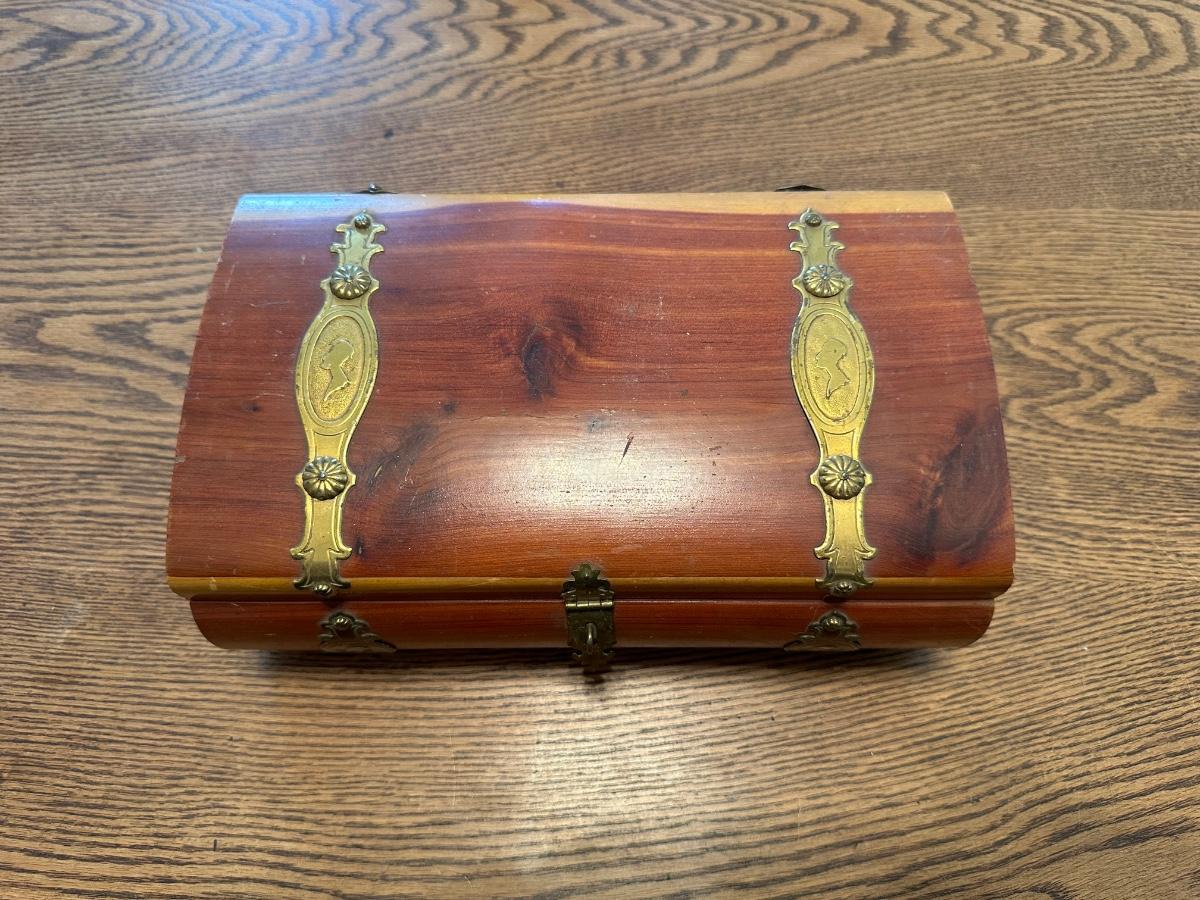 CEDAR BOX WITH BRASS ACCENTS AND OTHER WOODEN BOX