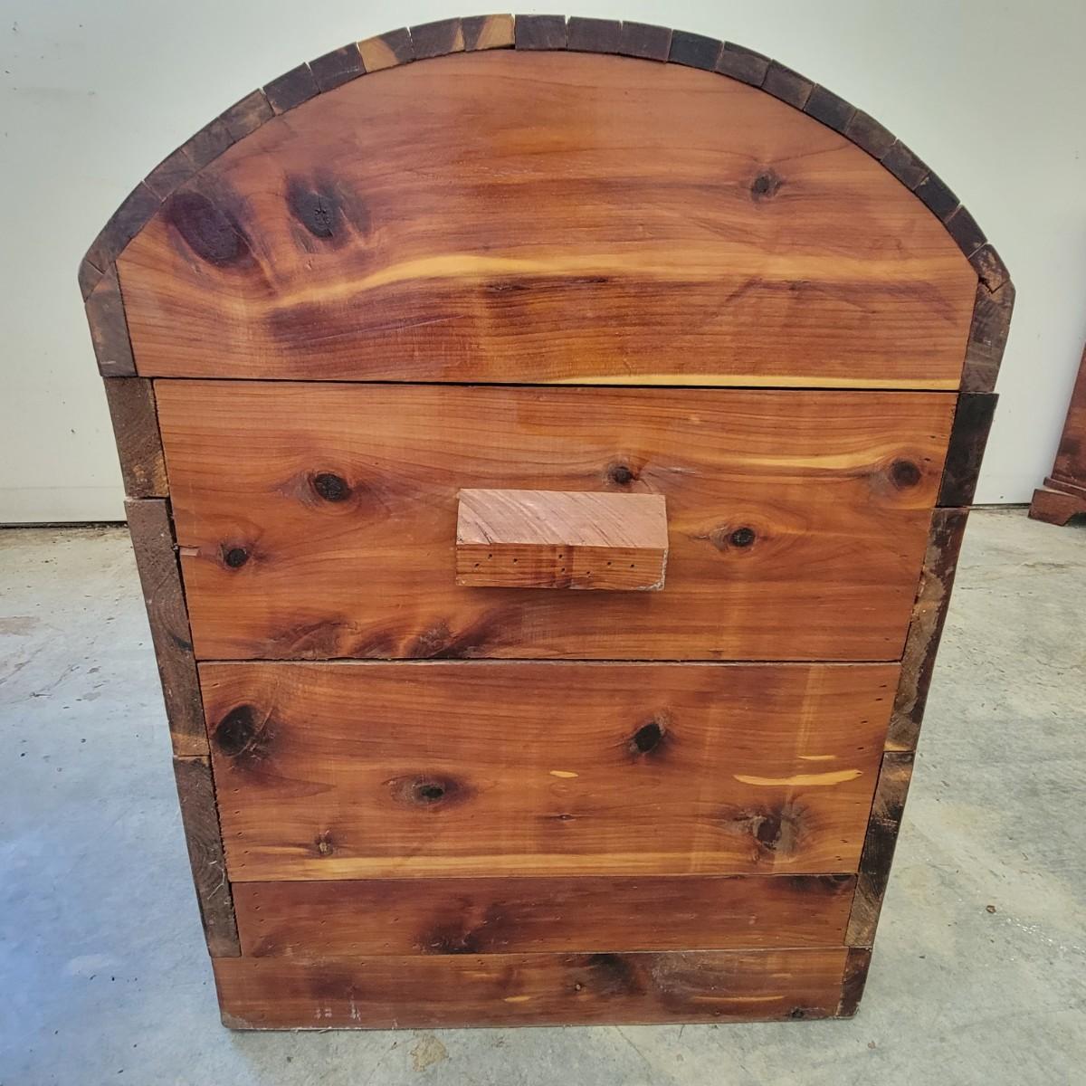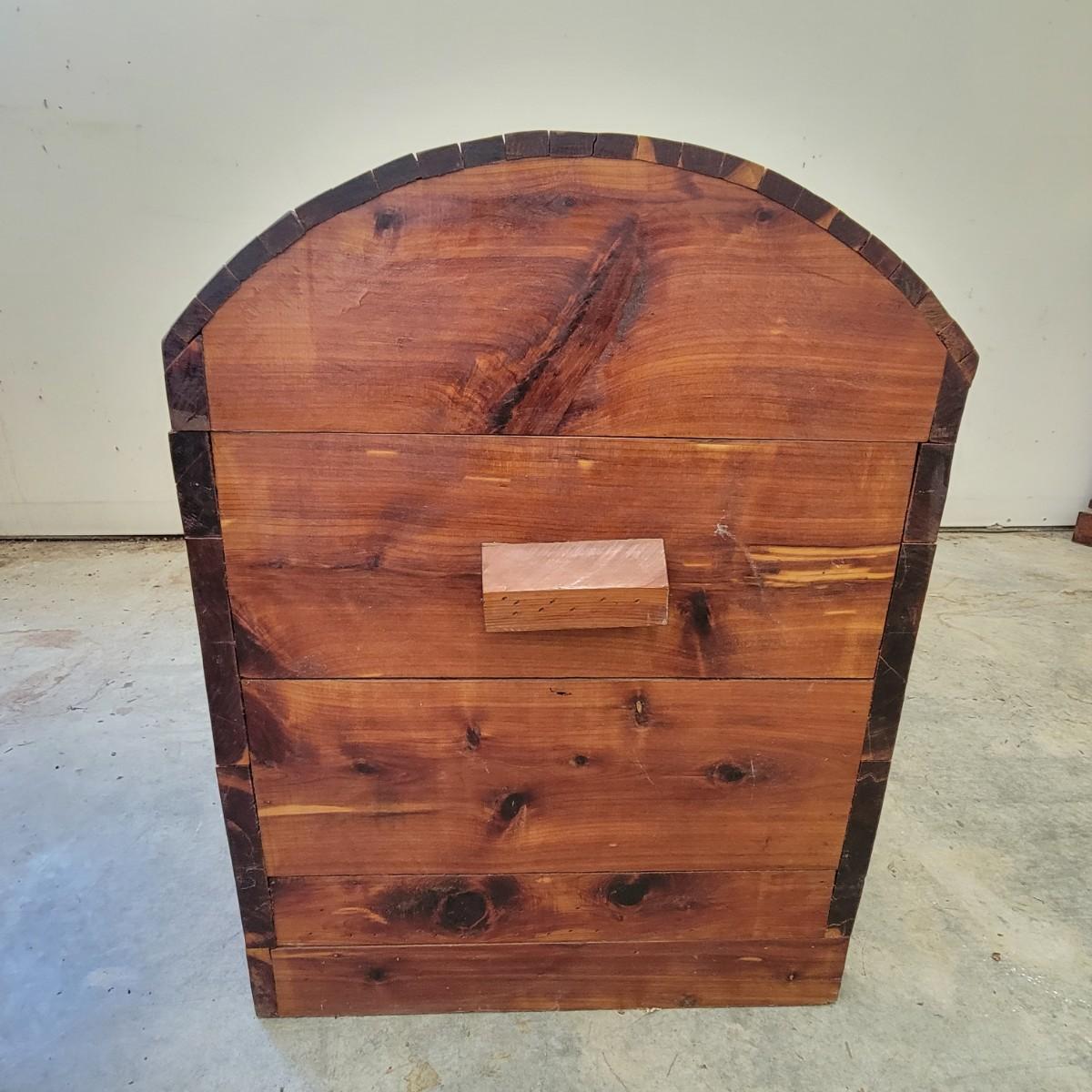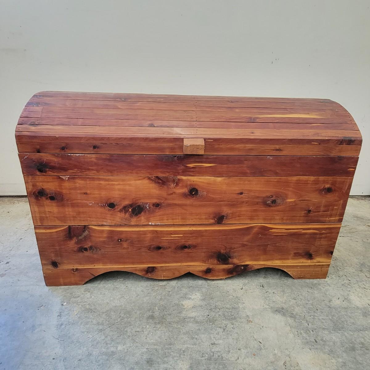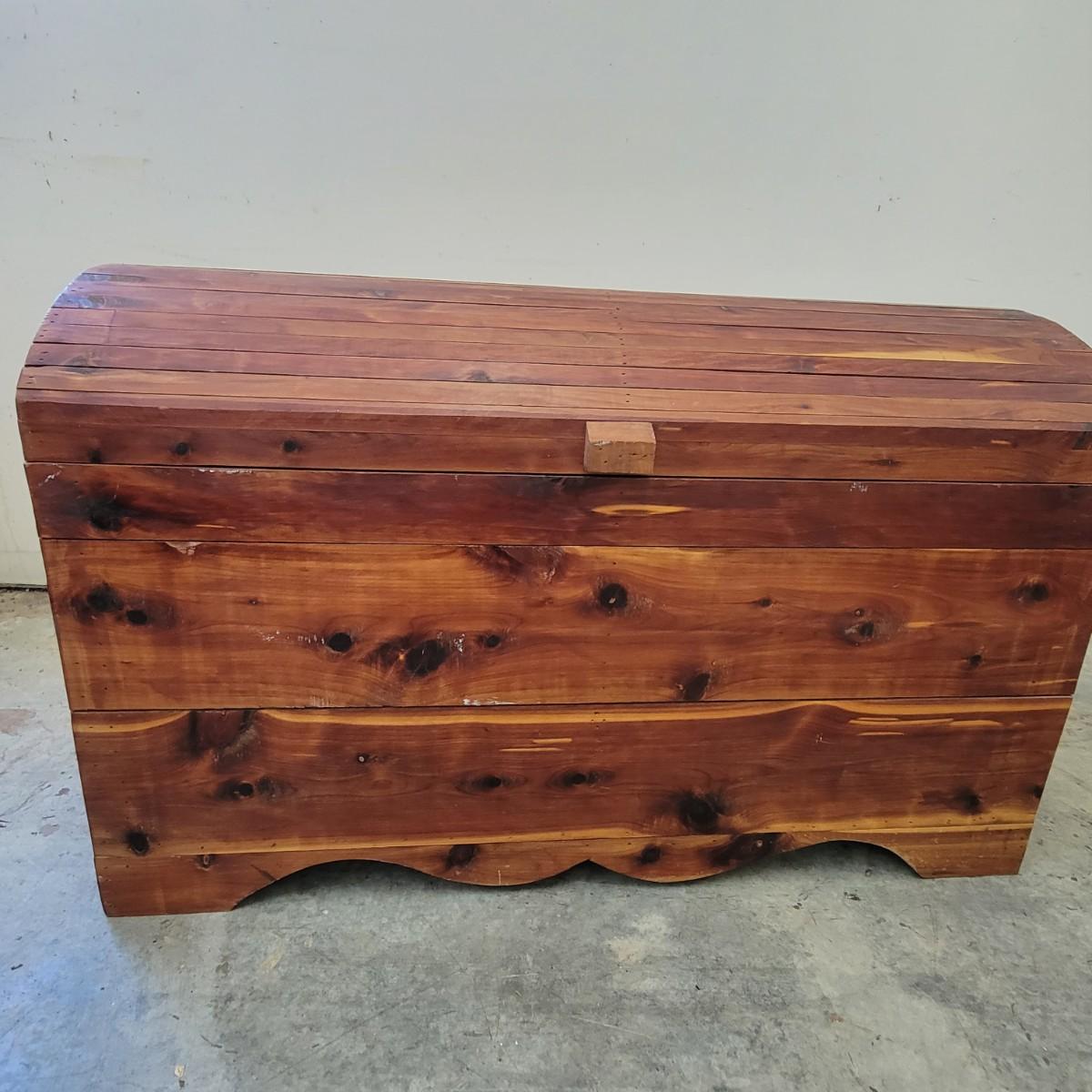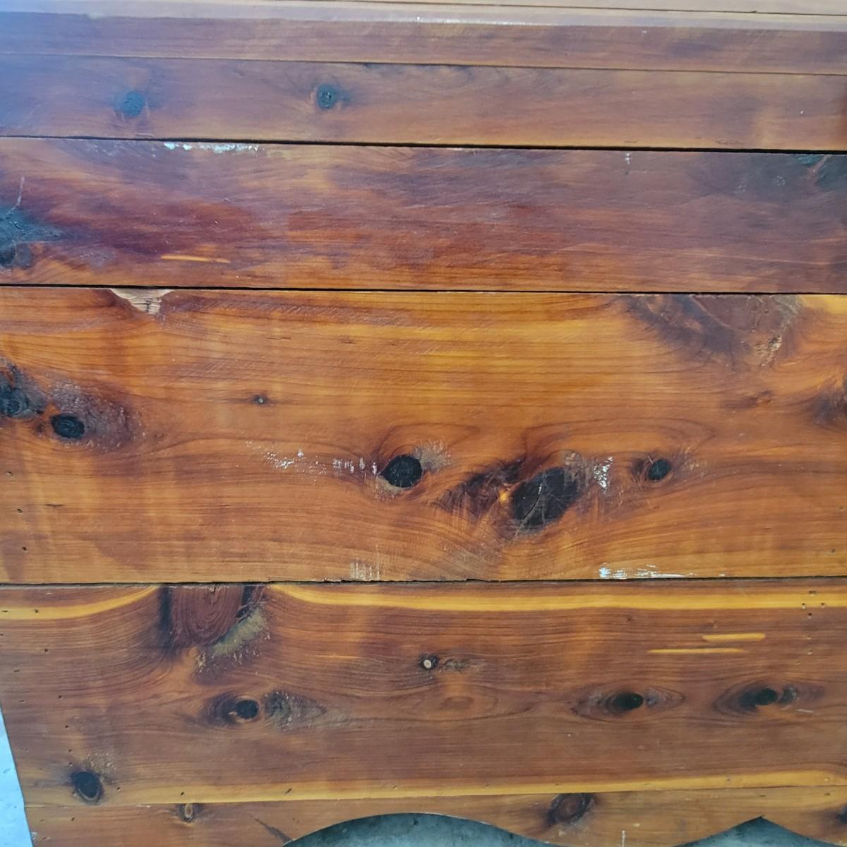 Medium sized cedar chest. Some small surface scratches in the wood, but no deep gouges. The interior still smells like cedar.