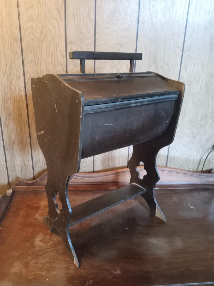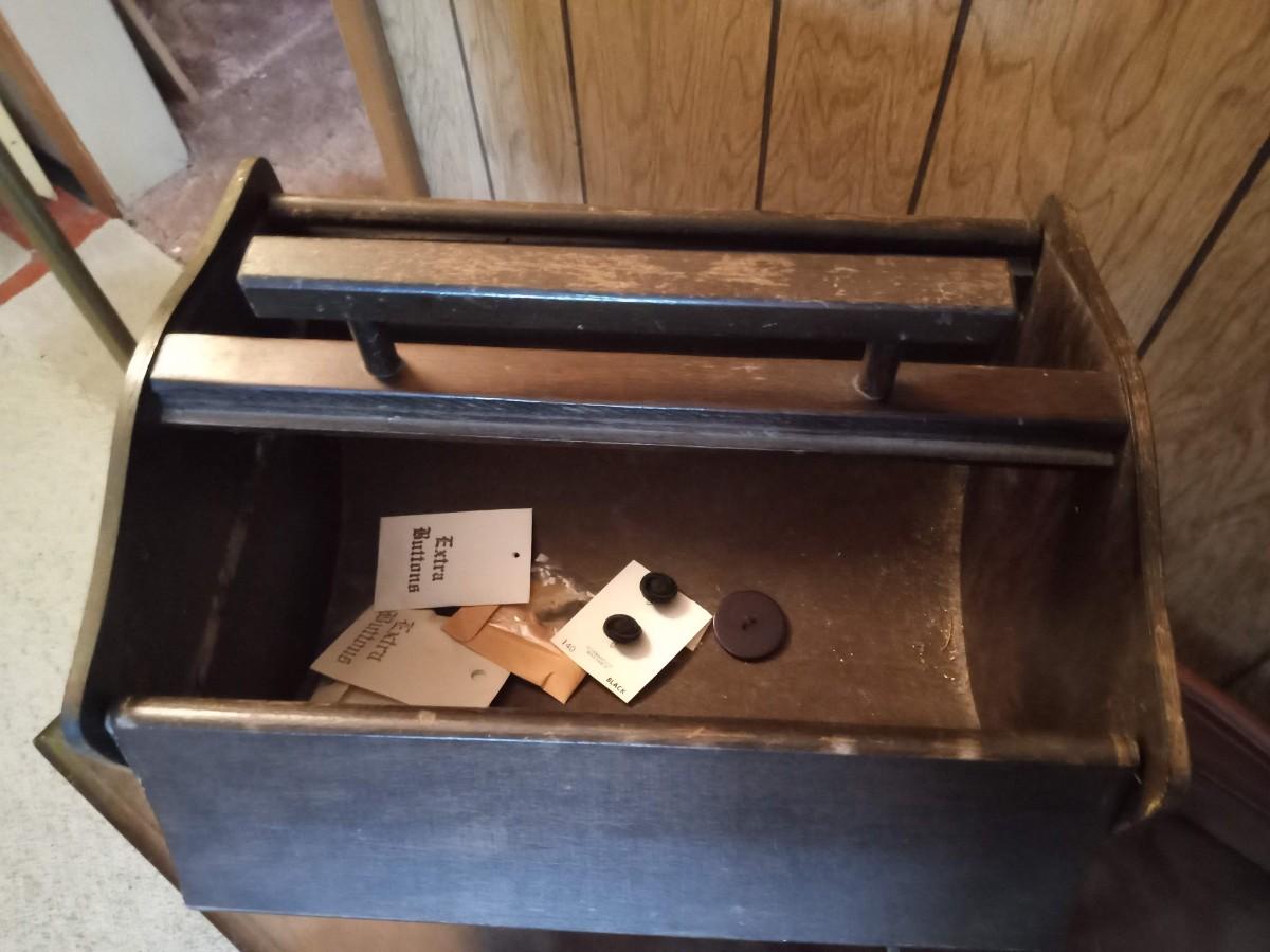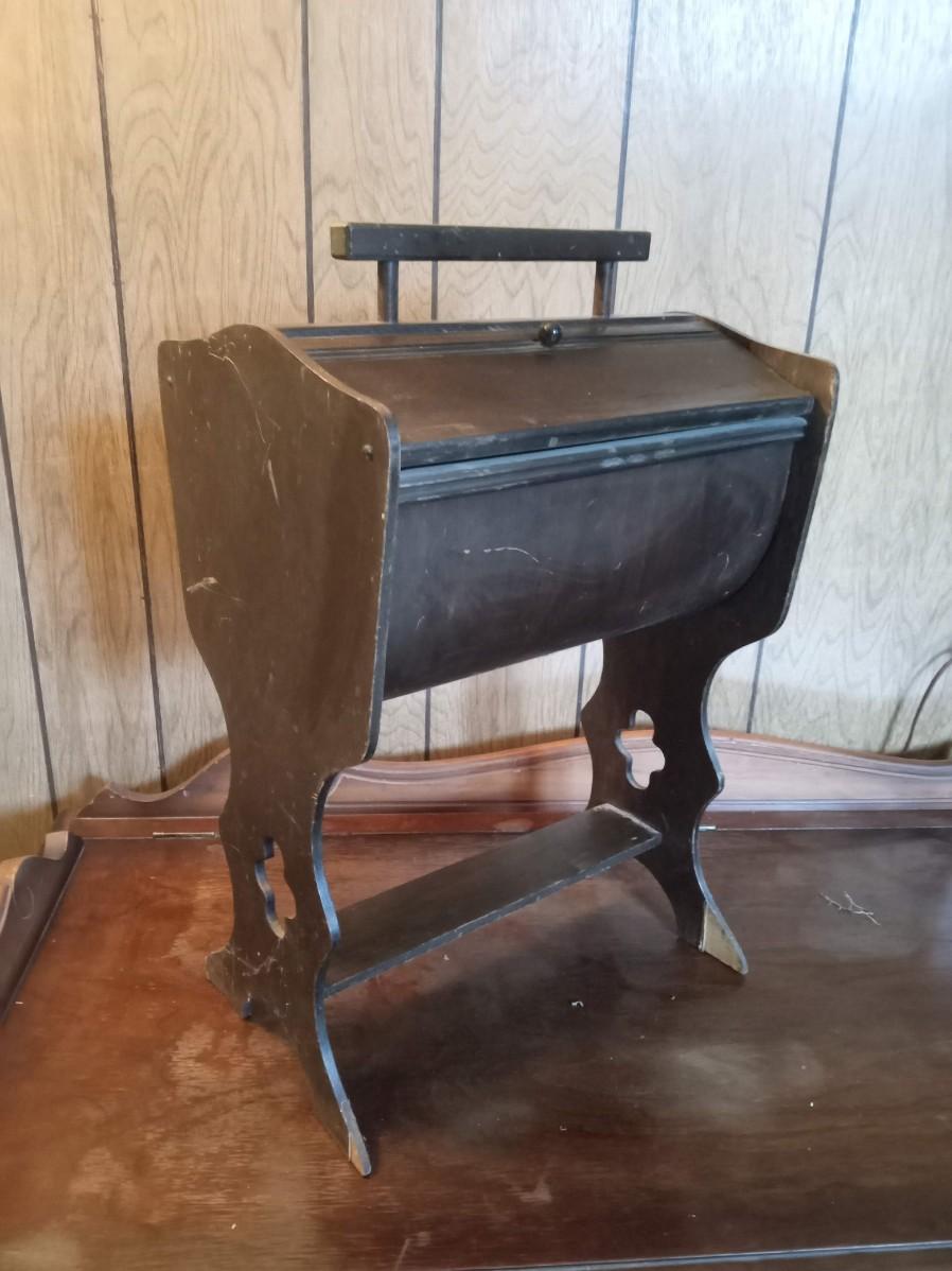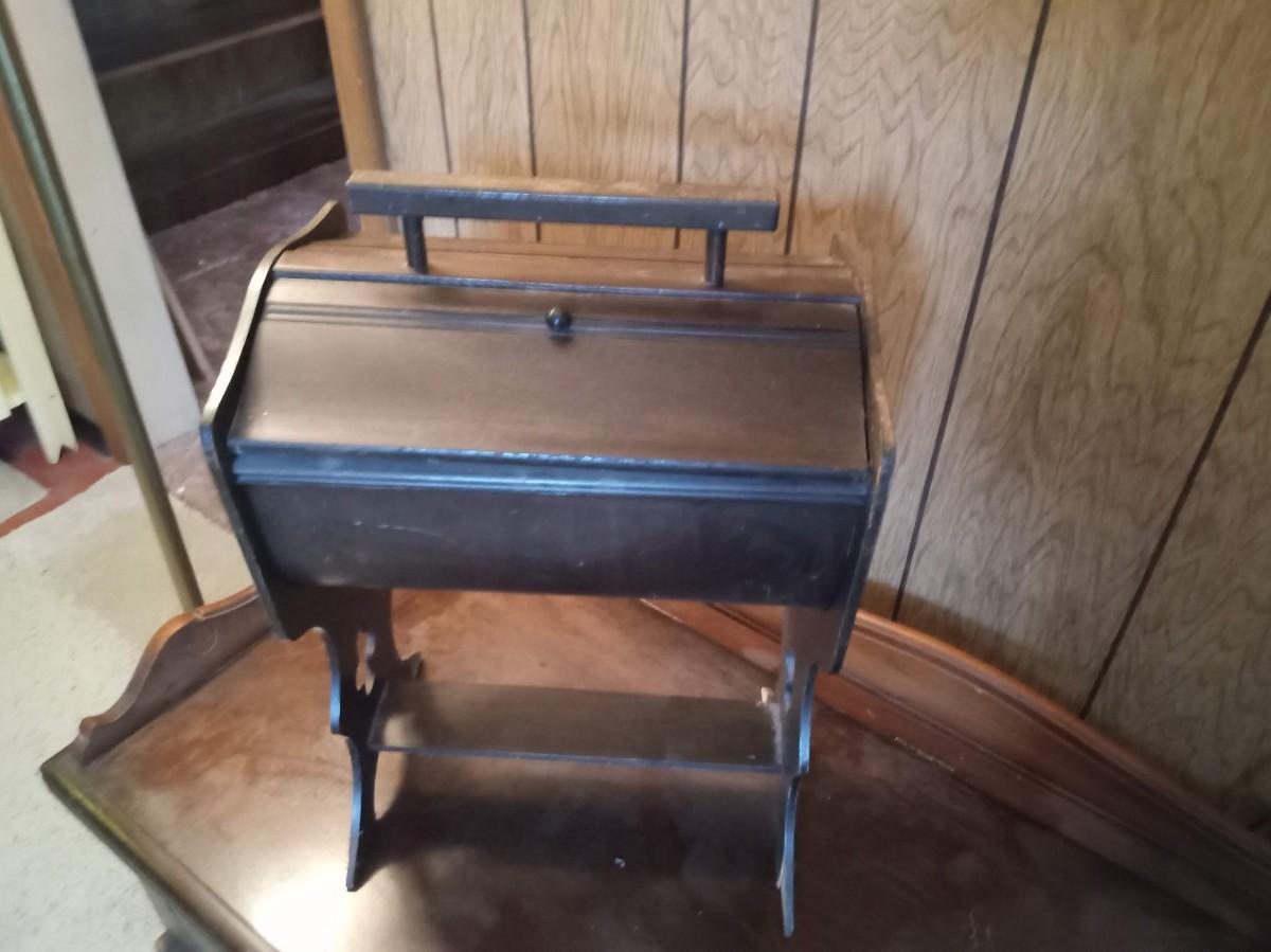 THE SEWING BOX IS MISSING A KNOB AND ALSO HAS SOME DAMAGE 20" X 13"