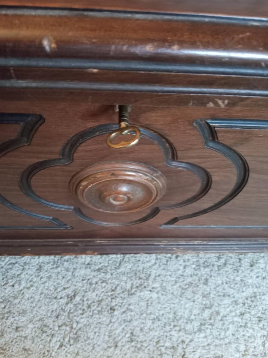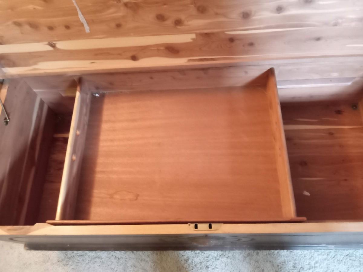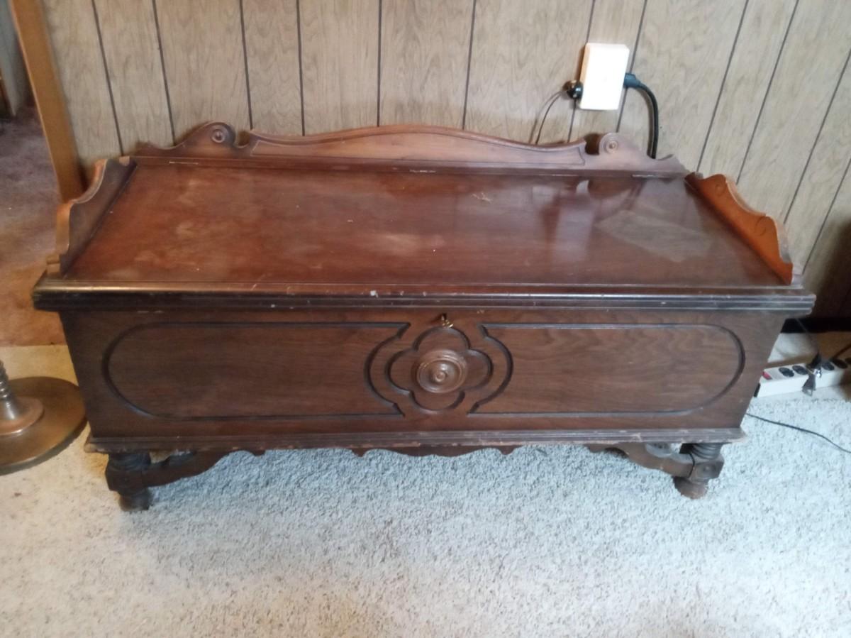 CEDAR CHEST HAS DAMAGE TO THE FINISH ON THE LID IT MEASURES 45" X 19" X 22"