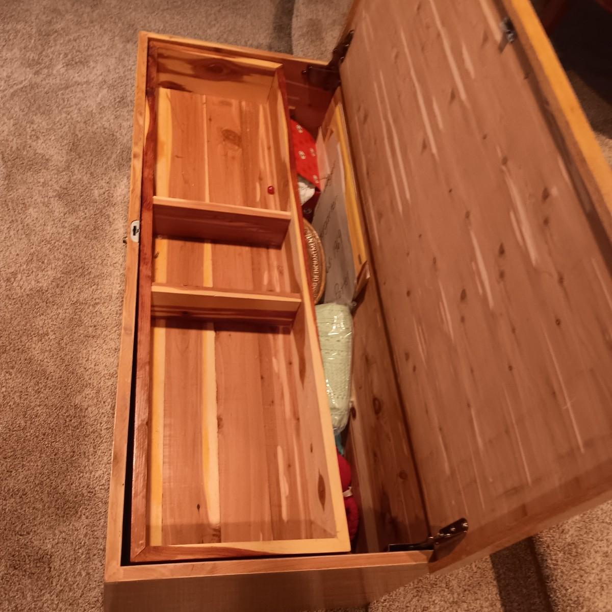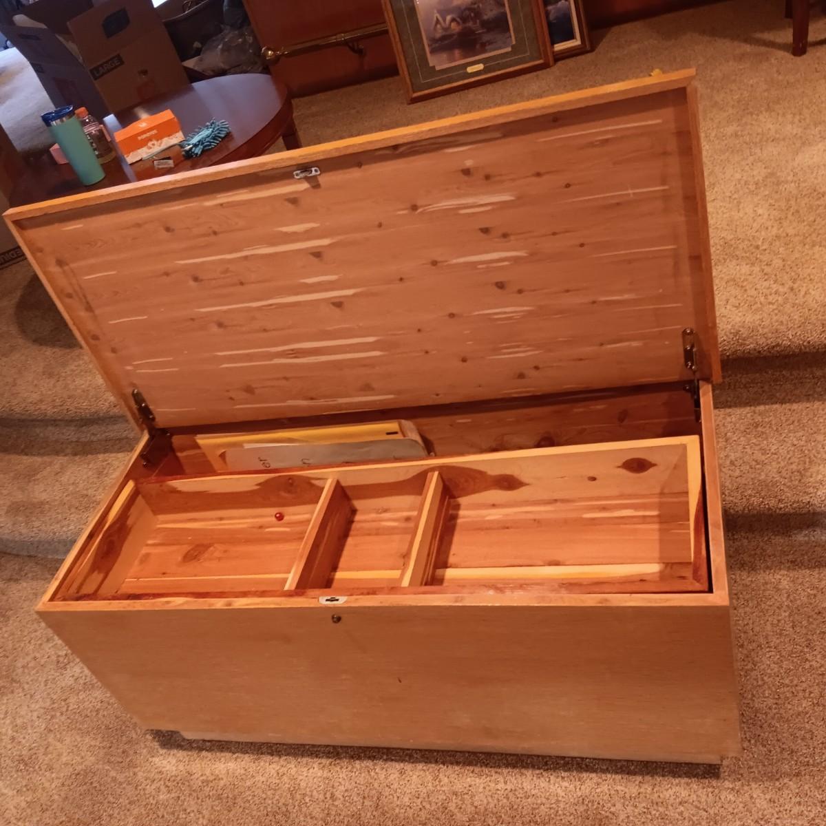 45" X 19" X 20" THERE IS A LOSS TO THE FINISH MAINLY ON TOP OF THE CHEST