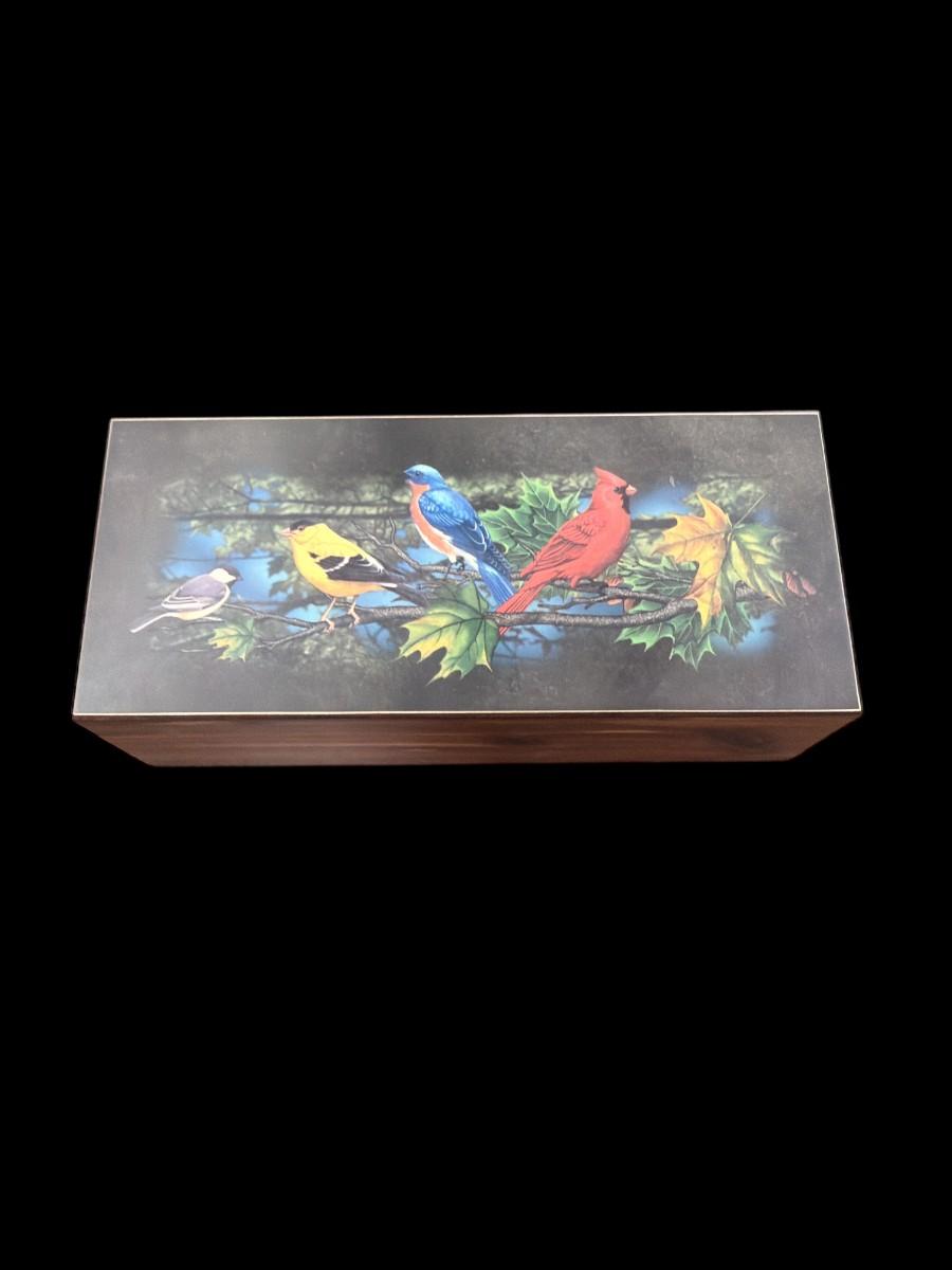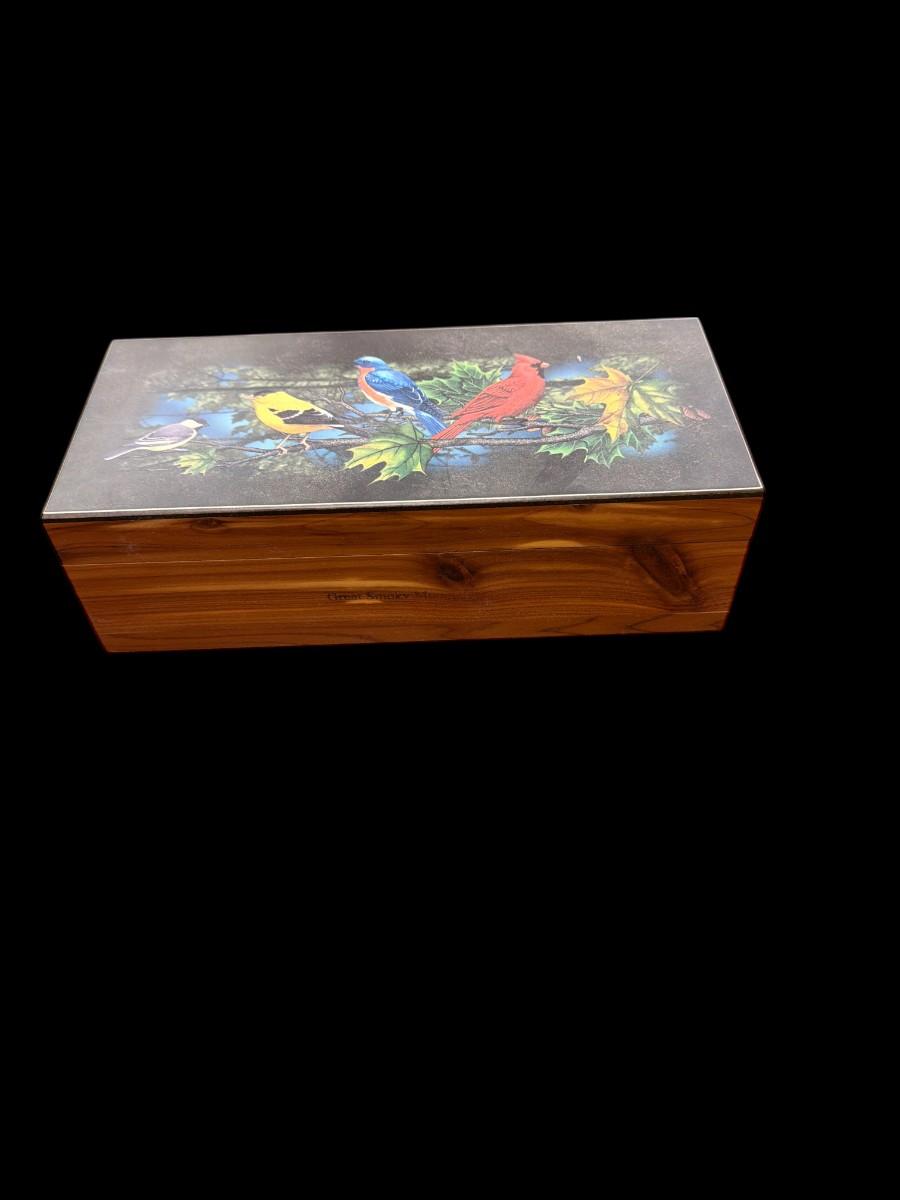 Cedar Keepsake Jewelry Box featuring a Bird Friends Decorative Top