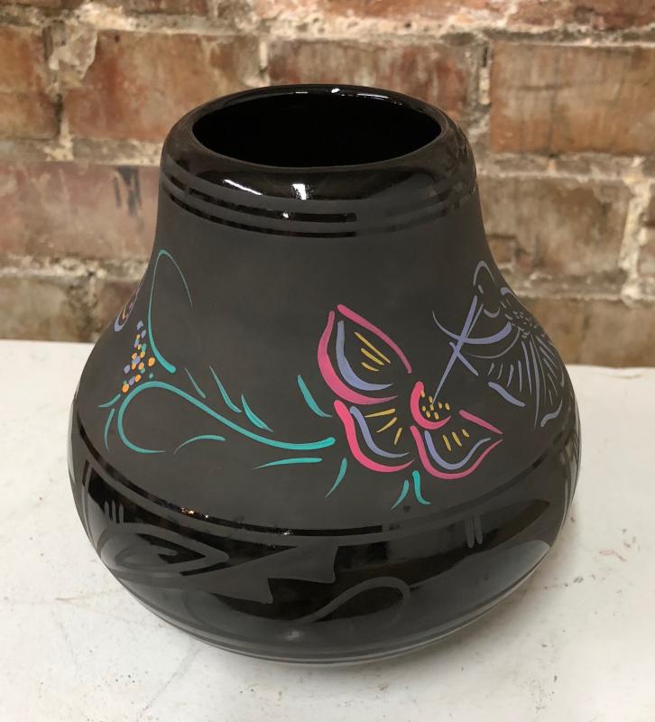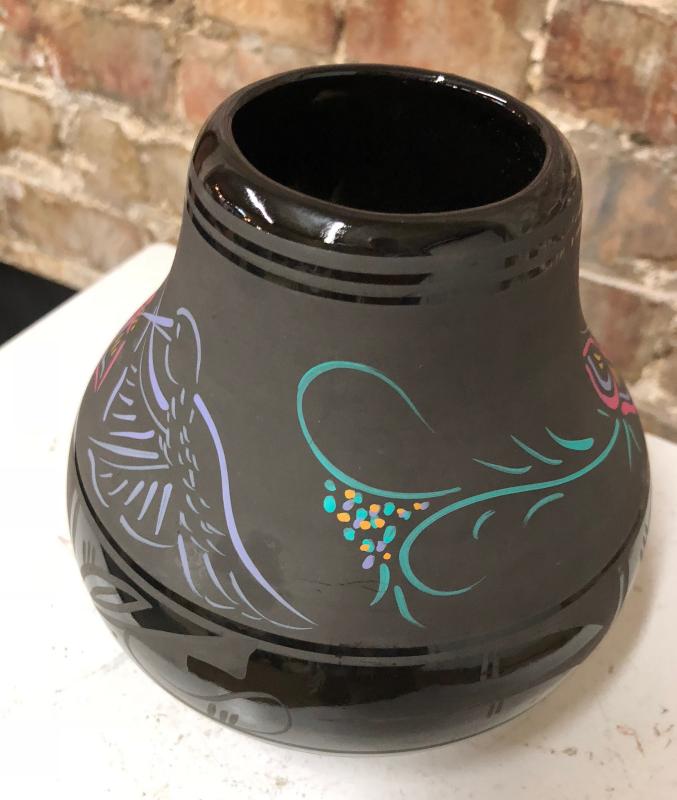 Black on black on this Southwestern Cedar Mesa Pottery jar...Nice condition...