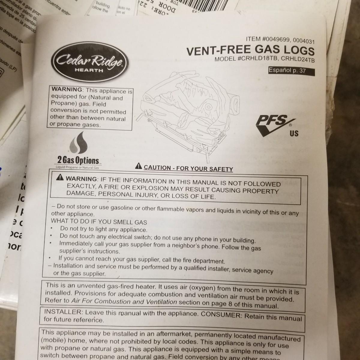 Cedar Ridge Hearth 18" Vent Free Gas Log Set +More  (BS-JS)