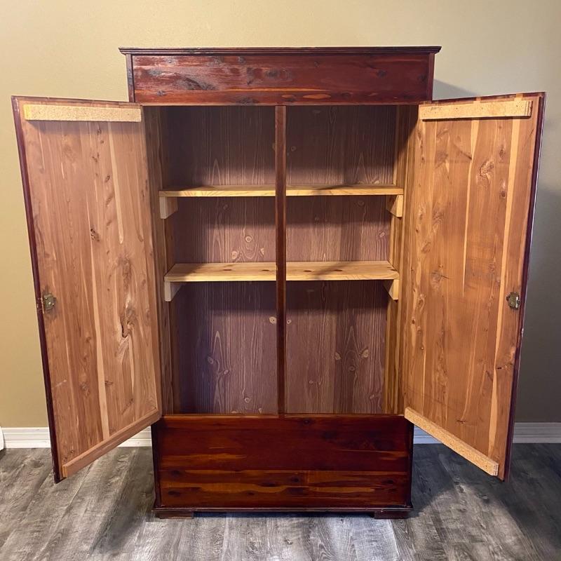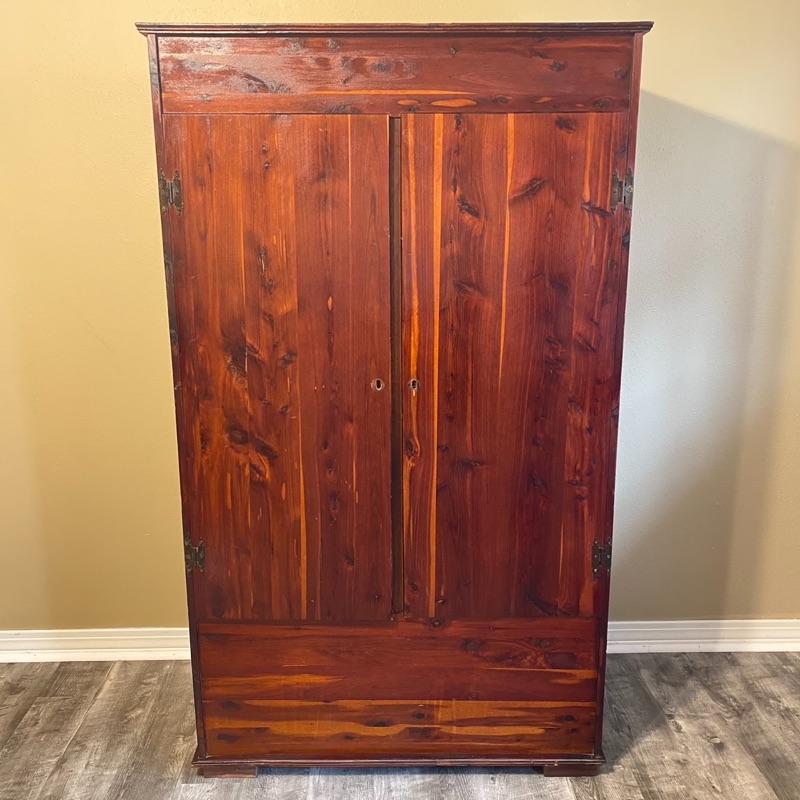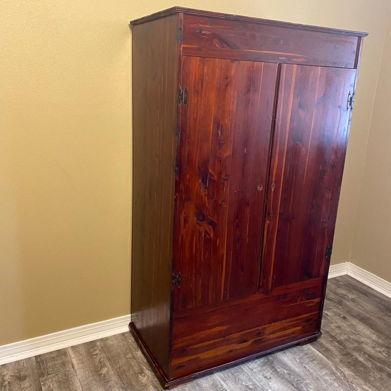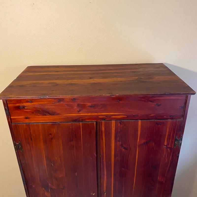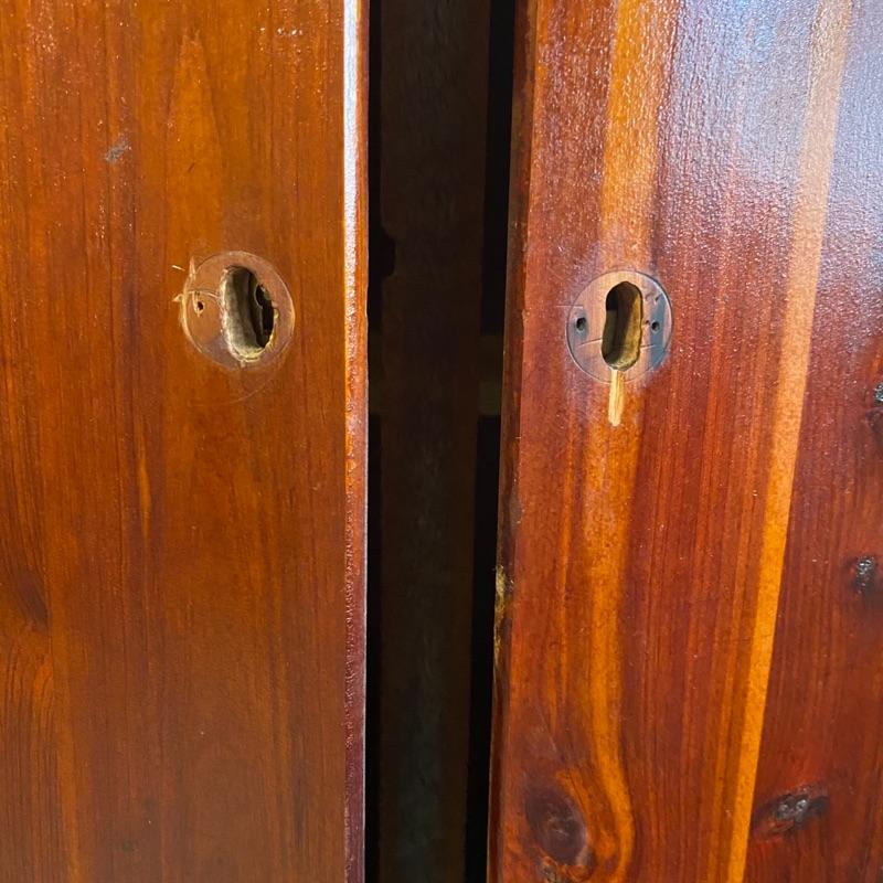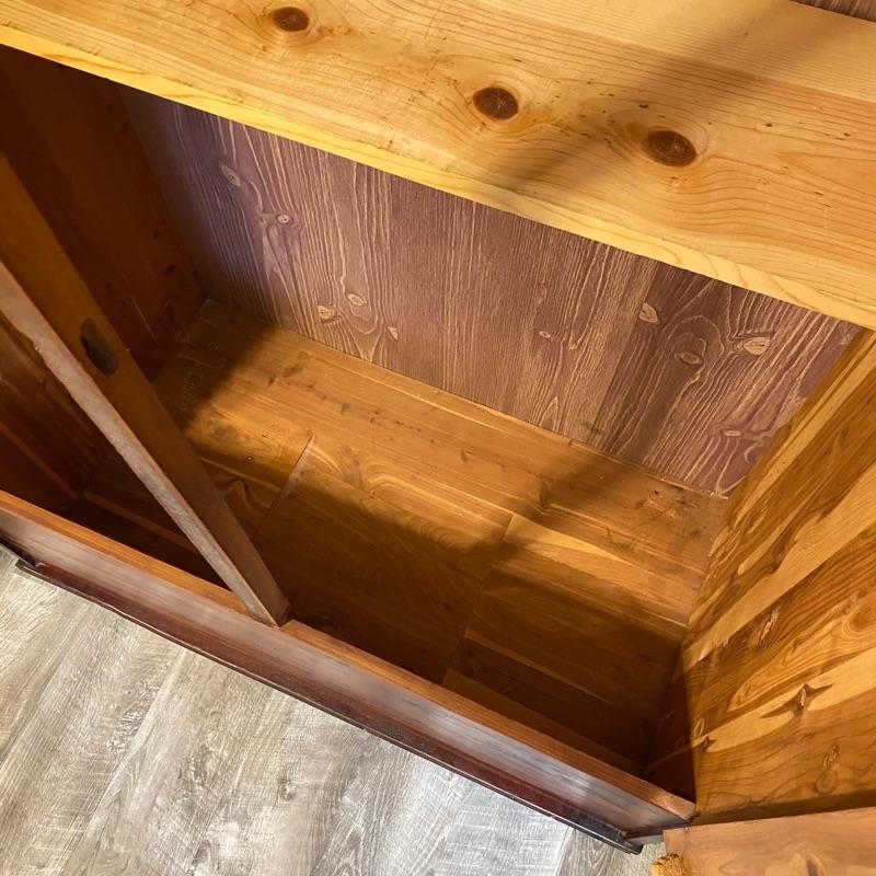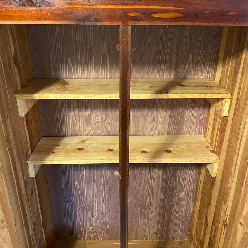 Wood Hanging Bar - see photo / No Keys / 2 removable shelves / Minor Wood wear / 37” L x 20”D x 63”H