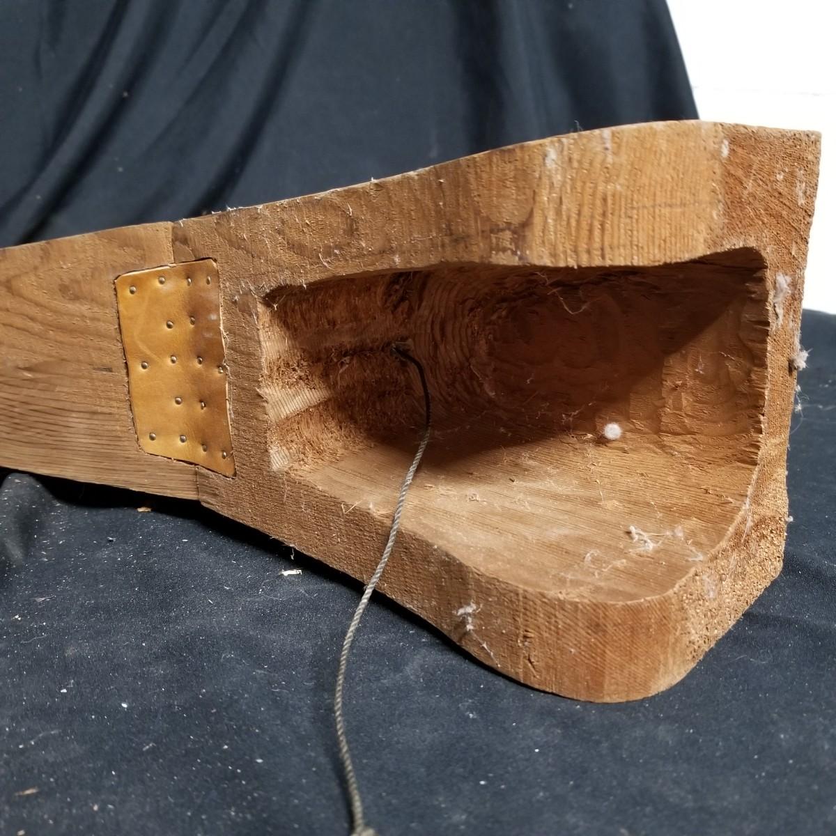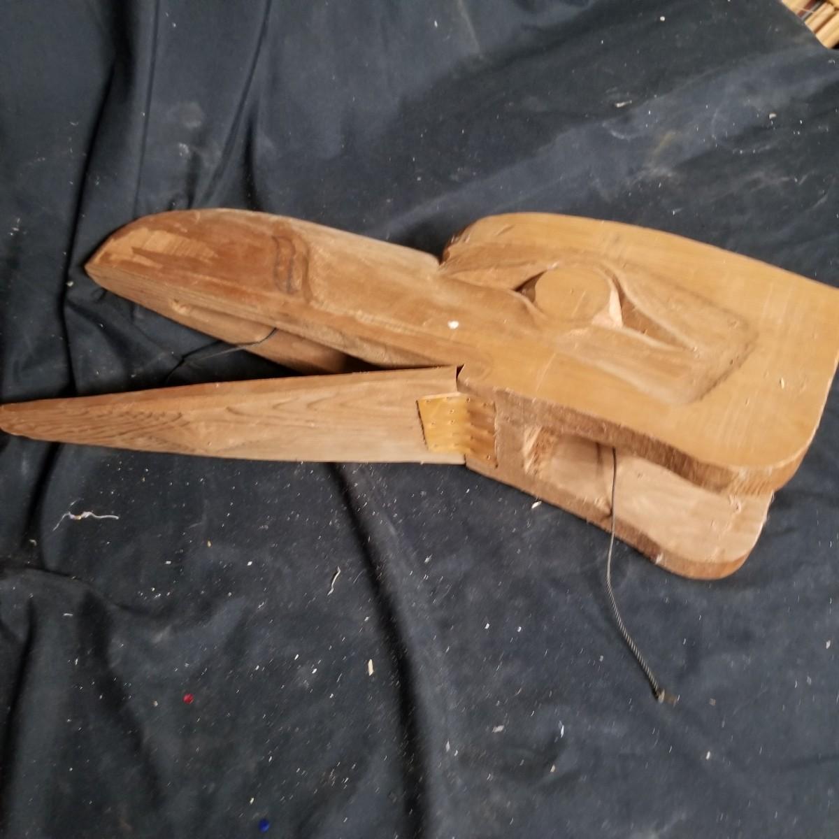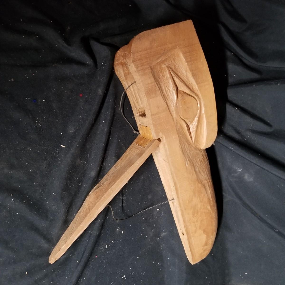 Hand carved cedar seahawk head.   Mouth opens, has leather hinge.  See photos for more detail.  19"x6"x5.5".  Shipping available.