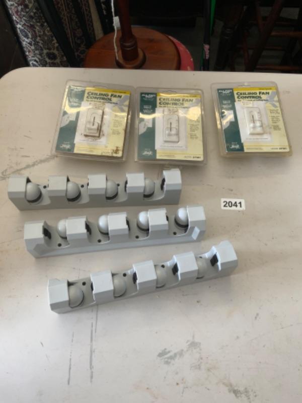 Ceiling fan controls (3) and hanging tool organizer (3) Lot 2041
