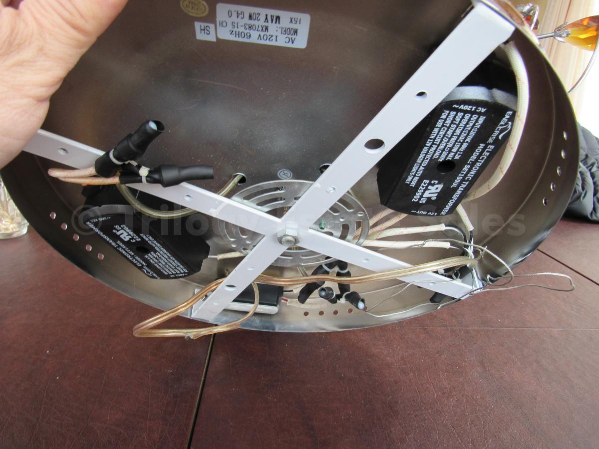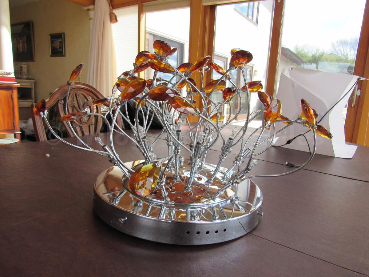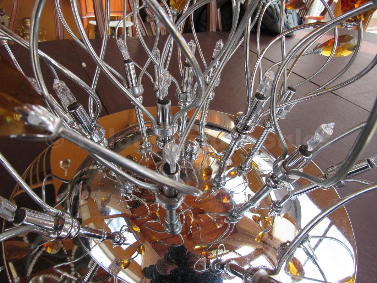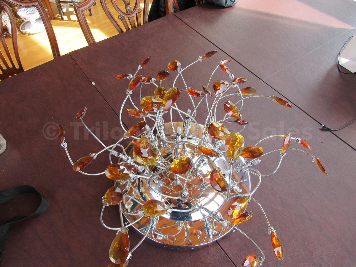 Ceiling fixture: chrome housing with jeweled arms and small halogen light bulbs. Model MX7083-15
