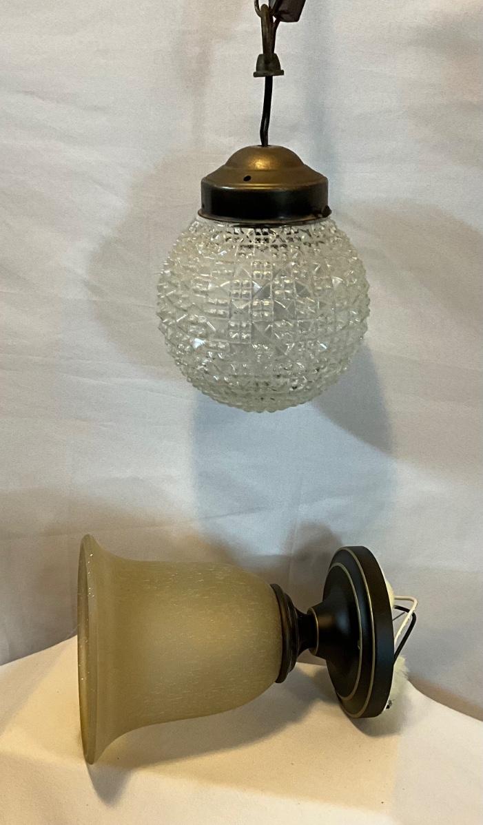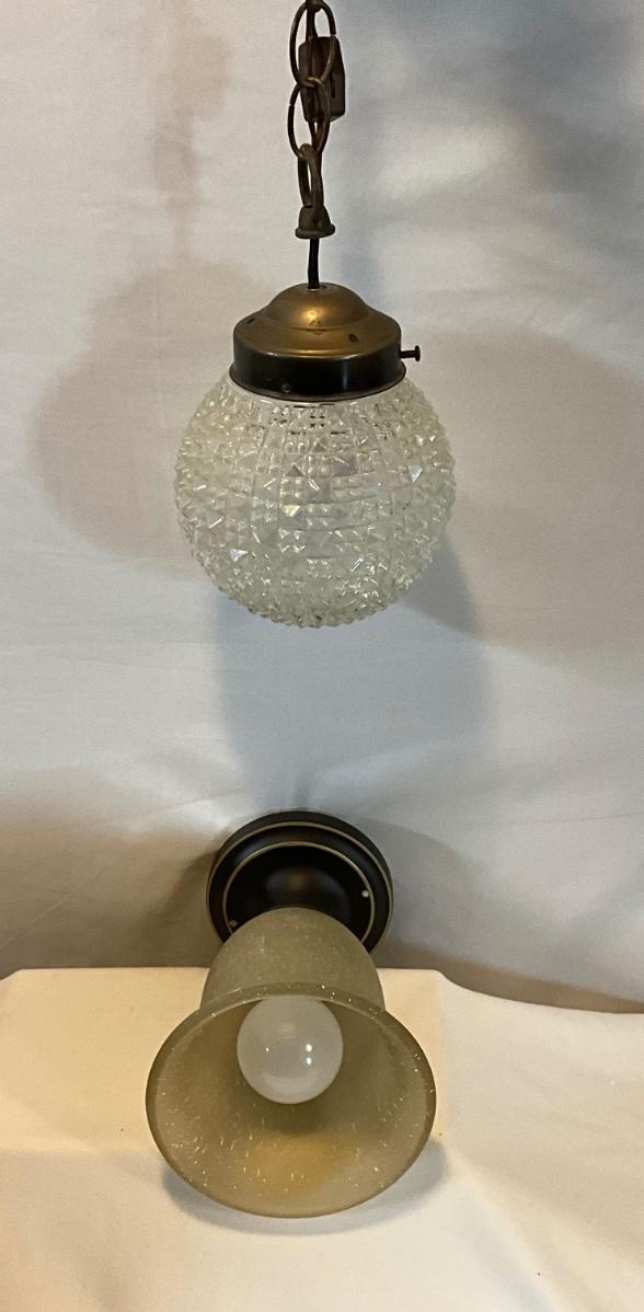 2 ceiling lights- one pendant globe with bronze, one bronze flush mount