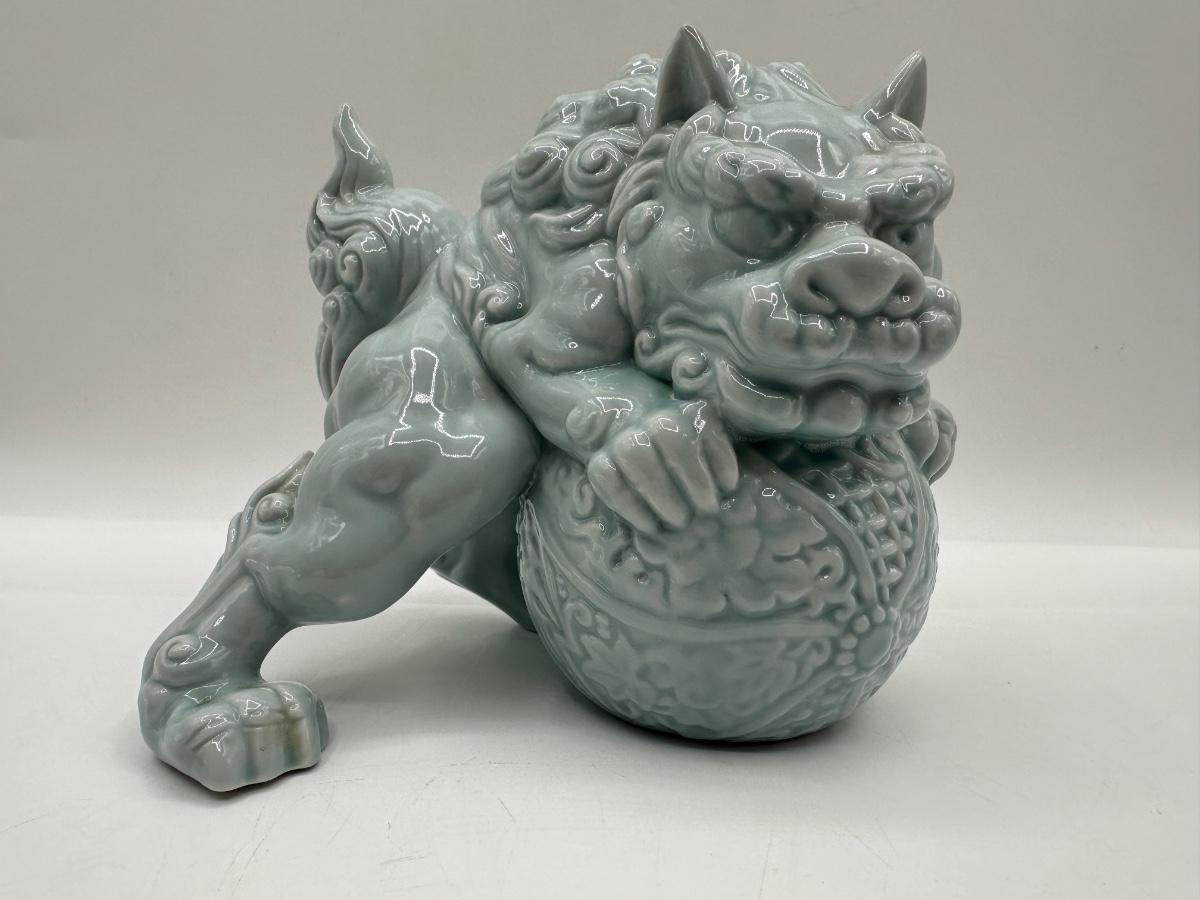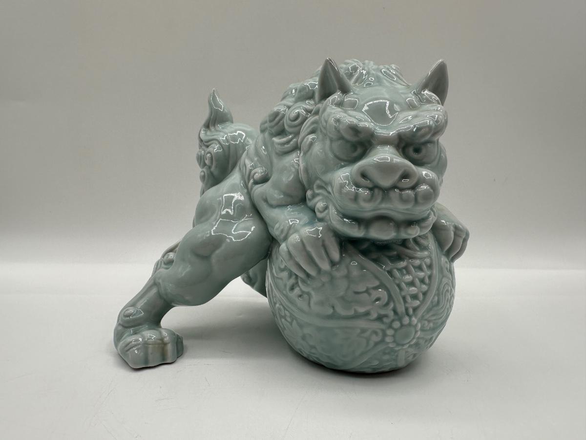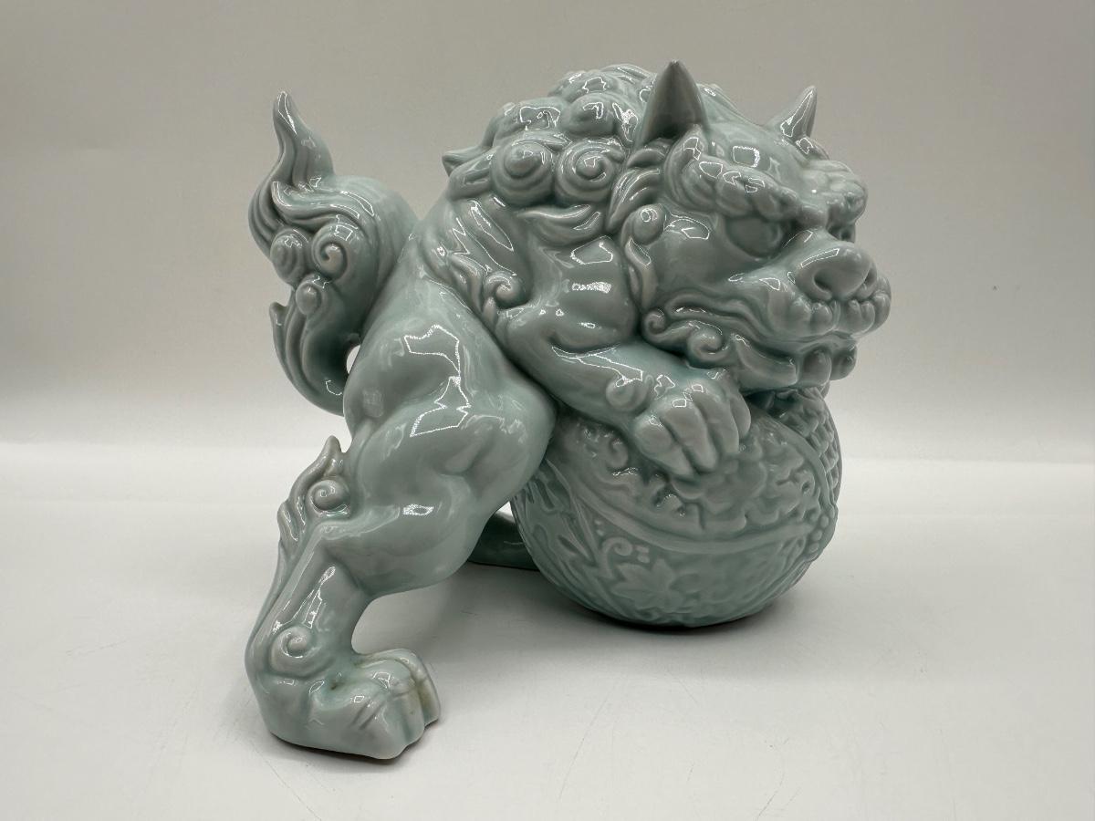 Celadon Foo Dog Figurine, Andrea by Sadek, Chinese Guardian Lion