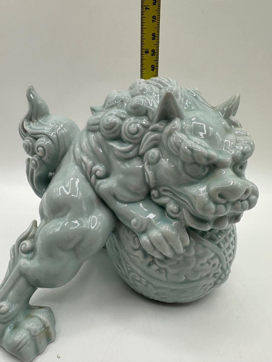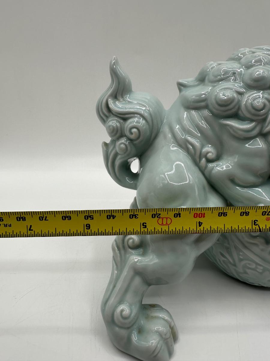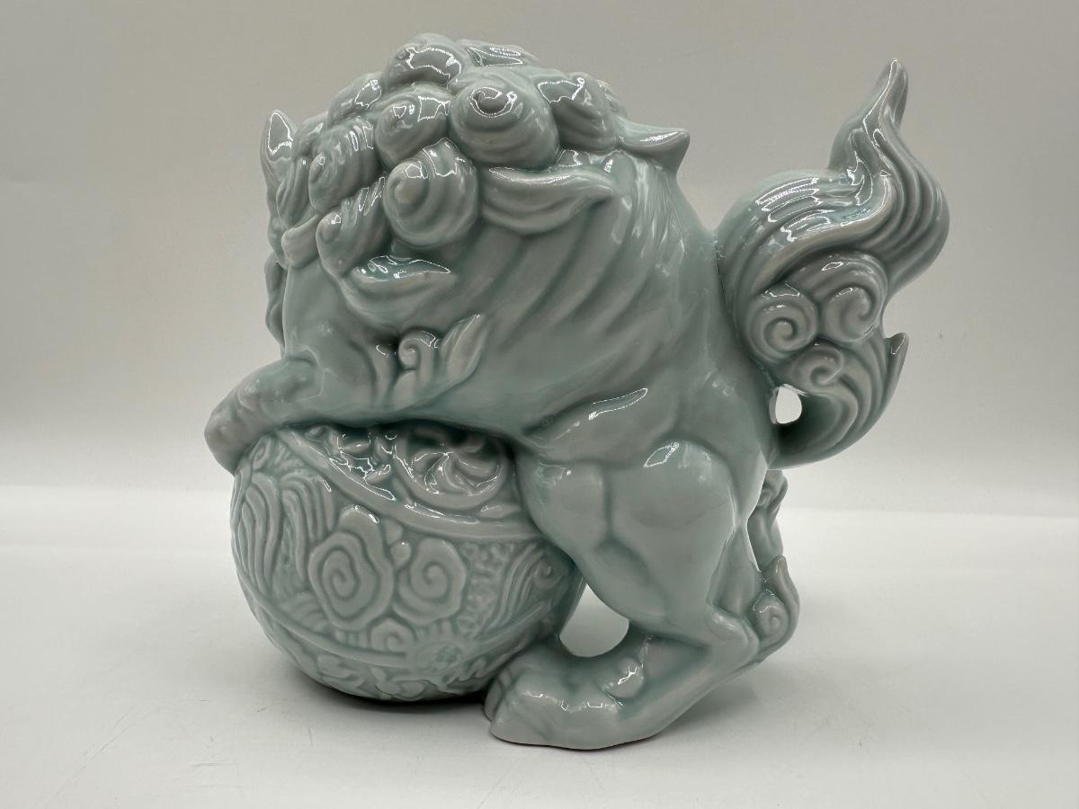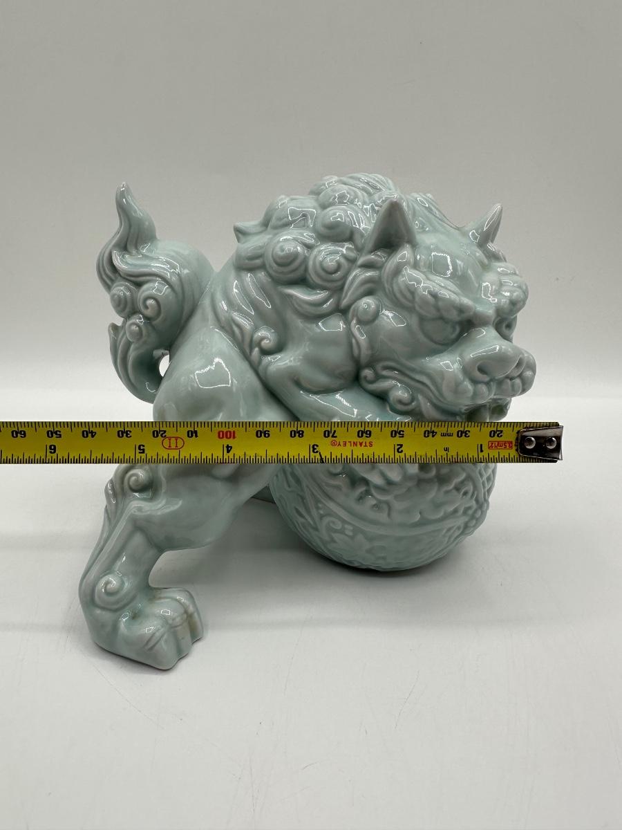 Celadon Foo Dog Figurine, Andrea by Sadek, Chinese Guardian Lion