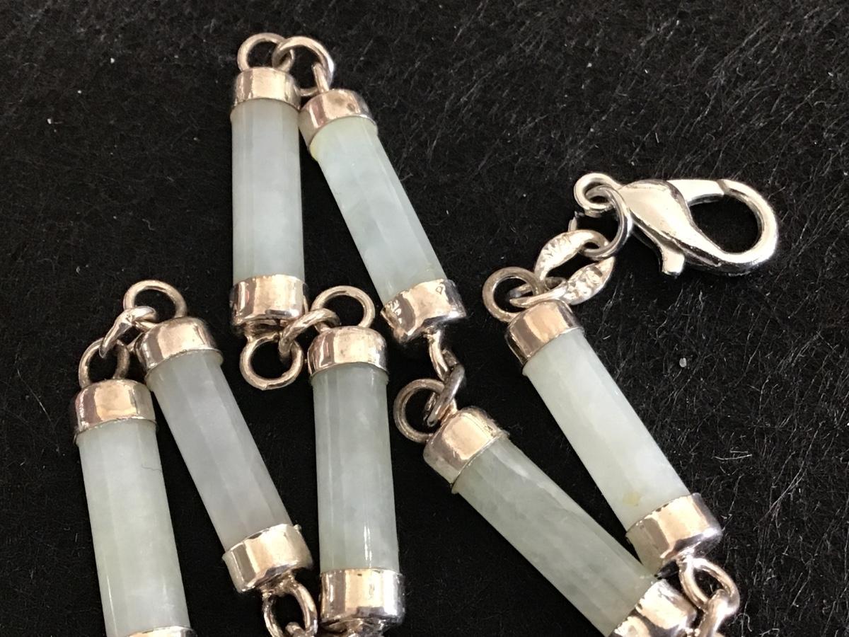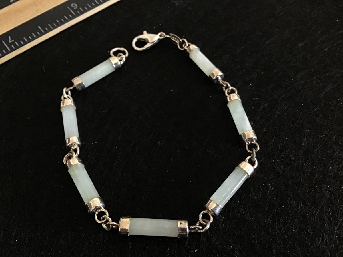 Celadon Jadeite Tube Stone Sterling Vintage