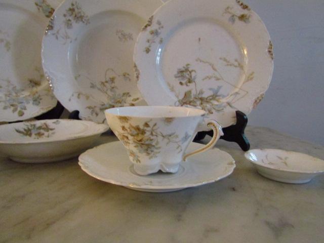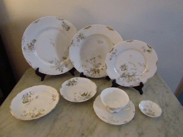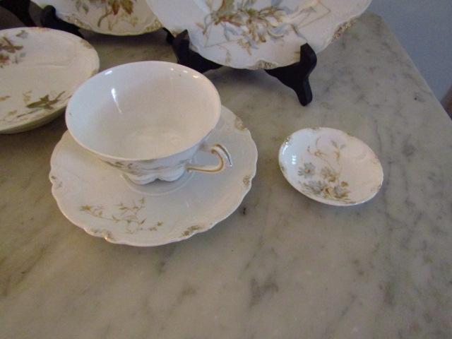 Celebrate China- Cluny Pattern: Made in Germany. Hand Painted and Numbered. Dinner Plates- 8, Soup Bowls- 14, Salad Plates- 8, Fruit Bowls- 8, Dessert Bowl- 8, Cups- 7, Saucers- 3, Tea Bag Rest- 8.