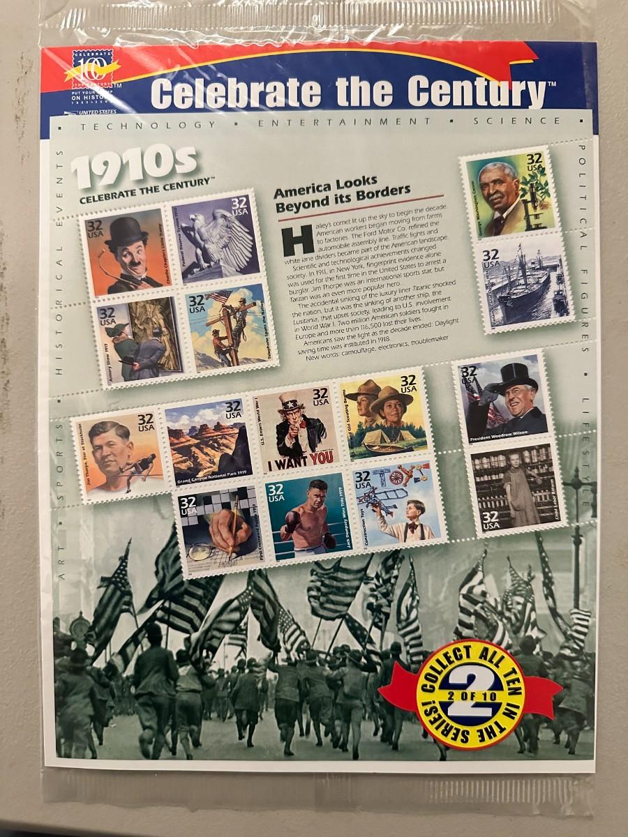 Unopened Celebrate The Century, 1910s, Collectible Stamps, America Looks Beyond Its Borders, Boy Scouts Rally NYC, Gift For Collector