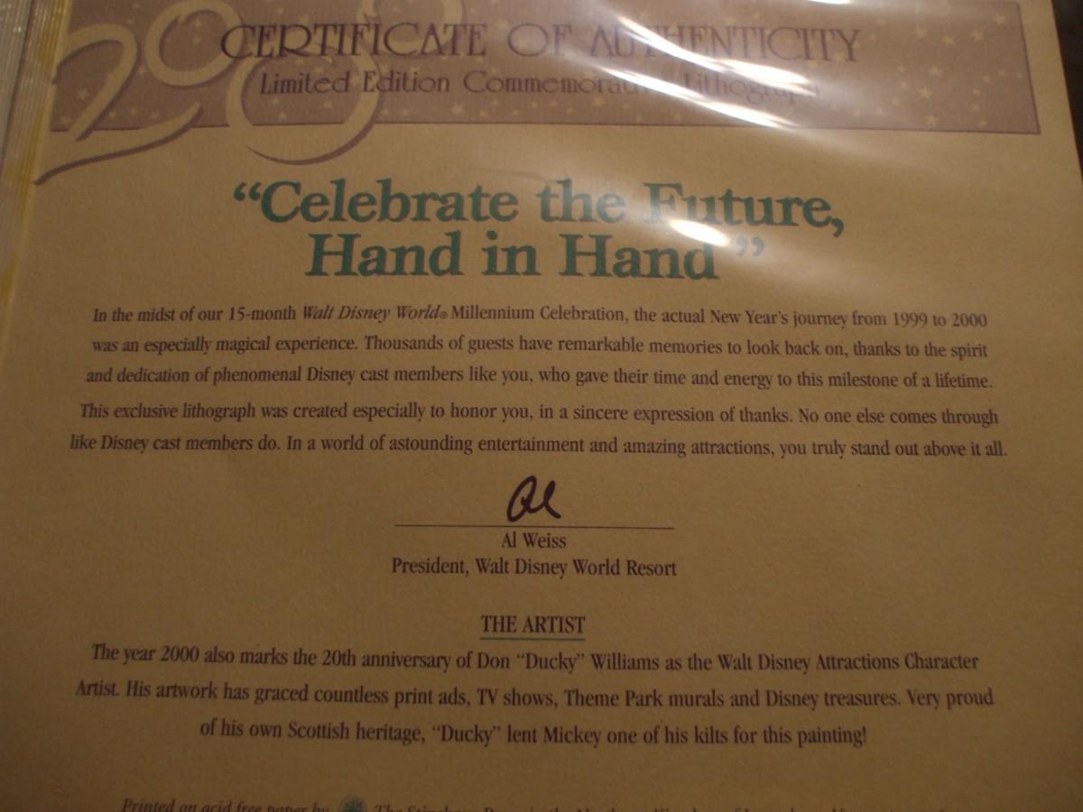 Disney Limited edition commemorative lithograph done by Don Williams.