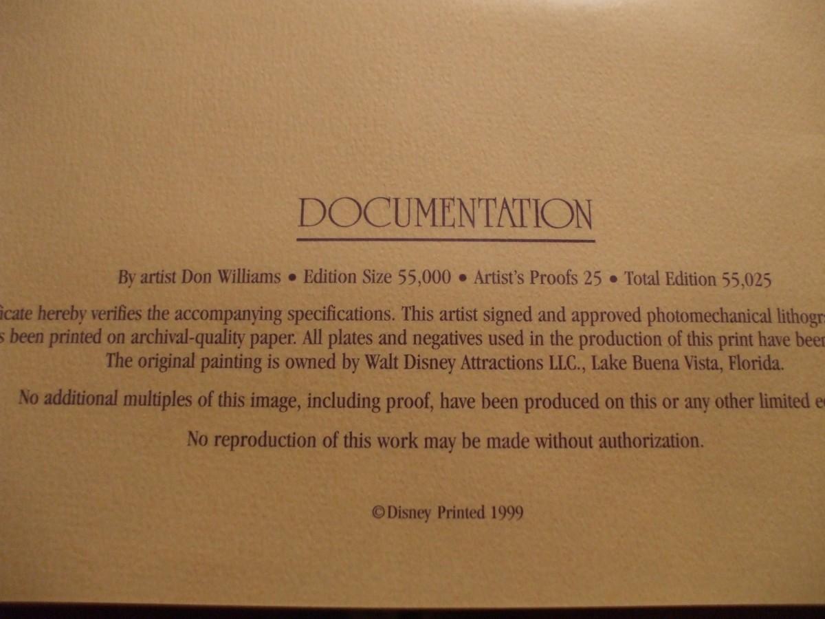 Disney Limited edition commemorative lithograph done by Don Williams.