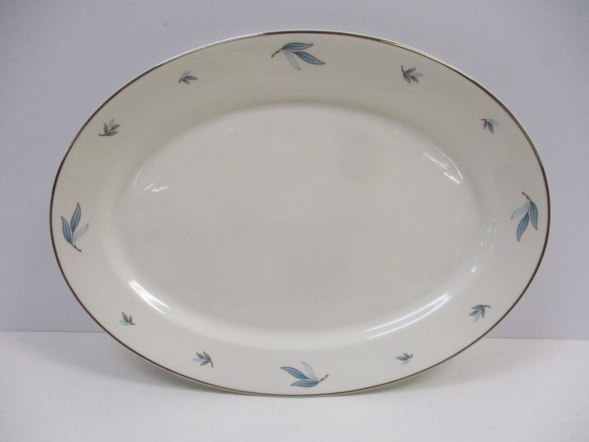 Celeste Syracuse China Made In America Platter Platinum Trim Blue Leaves