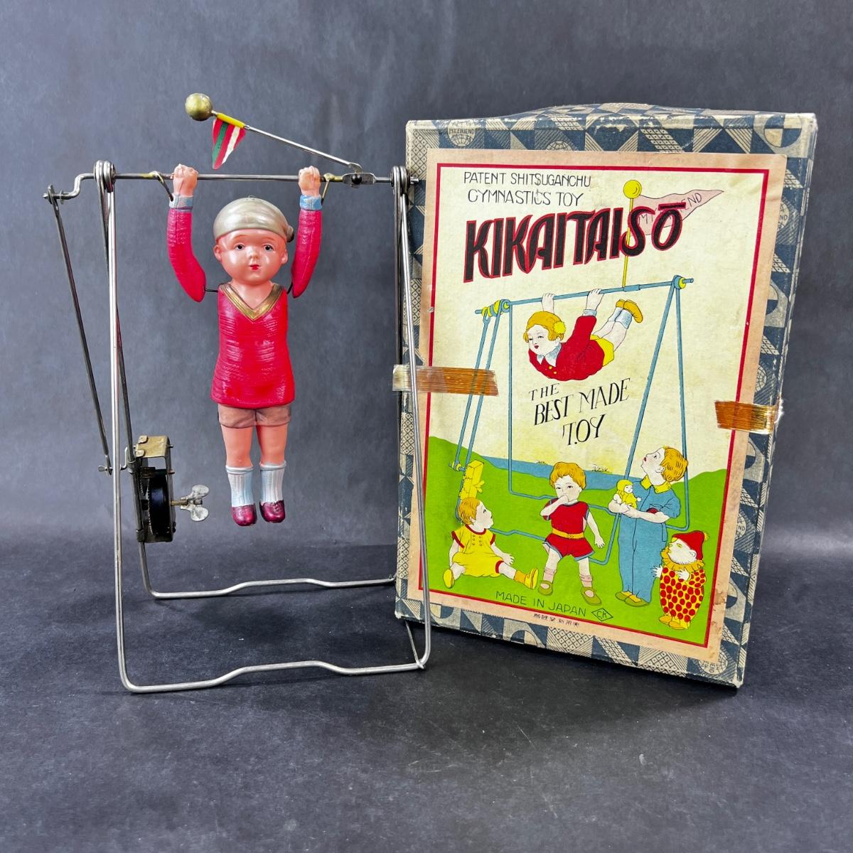Attractive and vibrant, this Celluloid Wind-Up Gymnast is impressive! Box is in fine condition for its age. **Works, Video of Function on YouTube Video, Has Key** **|** Please see photos for details and condition. ::: Shipping is available on this lot. If you require shipping you must let us know at the close of the auction. We will coordinate with you after the item has been won. Shipping fees will include insurance up to or exceeding the value of all items being mailed. If you have any questions regarding this lot please contact the auctioneer either via this website, by direct email or by phone. PICK UP TIMES and other important information can be found in the TERMS and DESCRIPTION of the auction. Please take a look for pertinent information. Thanks!