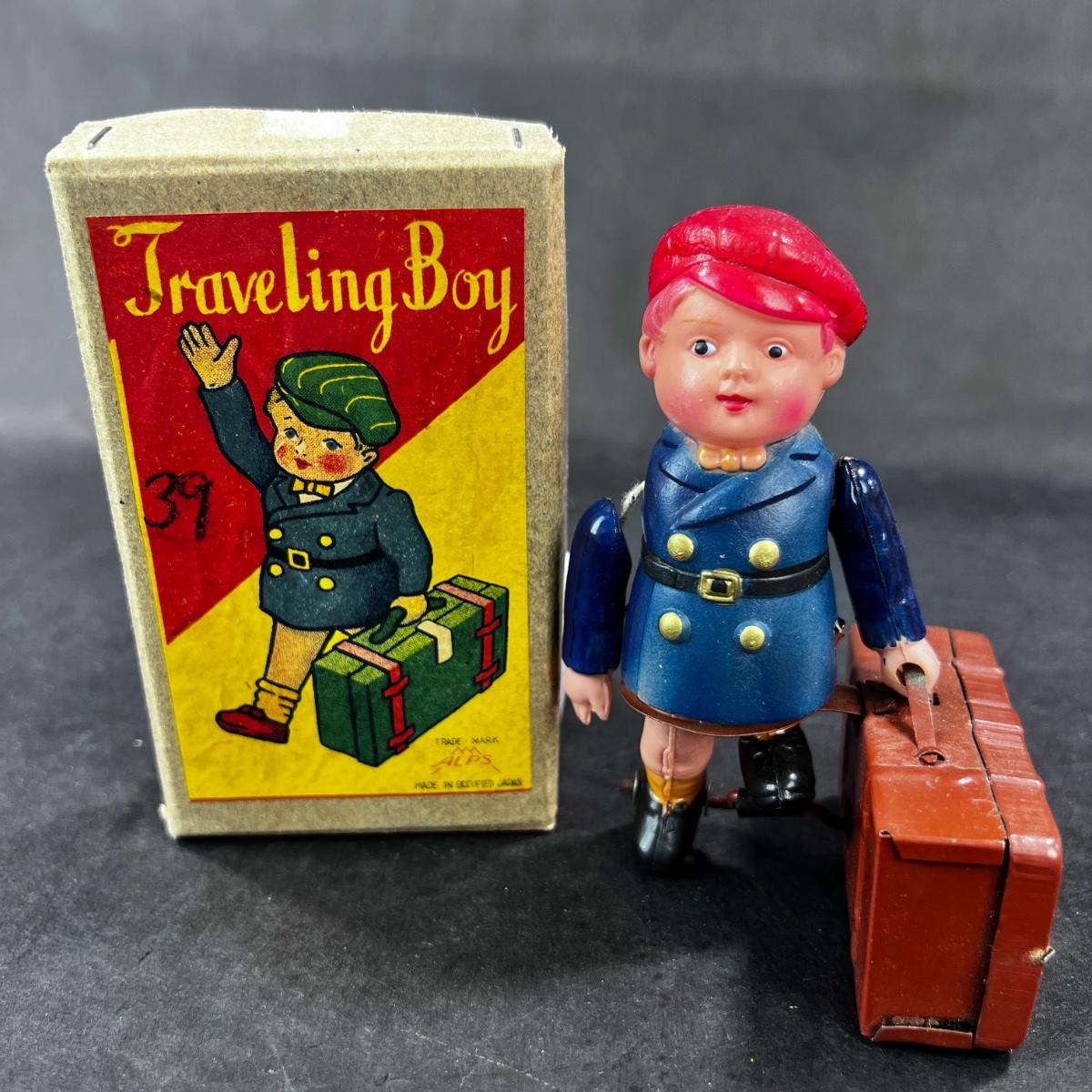 What a little gentleman. I would be happy to travel alongside him. This Traveling Boy was produced by Alps in the early 1900s. He comes with his original box. **Works, Video of Function on YouTube Video, Has Key** Please see photos for details and condition. **|** ::: Shipping is available on this lot. If you require shipping you must let us know at the close of the auction. We will coordinate with you after the item has been won. Shipping fees will include insurance up to or exceeding the value of all items being mailed. If you have any questions regarding this lot please contact the auctioneer either via this website, by direct email or by phone. PICK UP TIMES and other important information can be found in the TERMS and DESCRIPTION of the auction. Please take a look for pertinent information. Thanks!