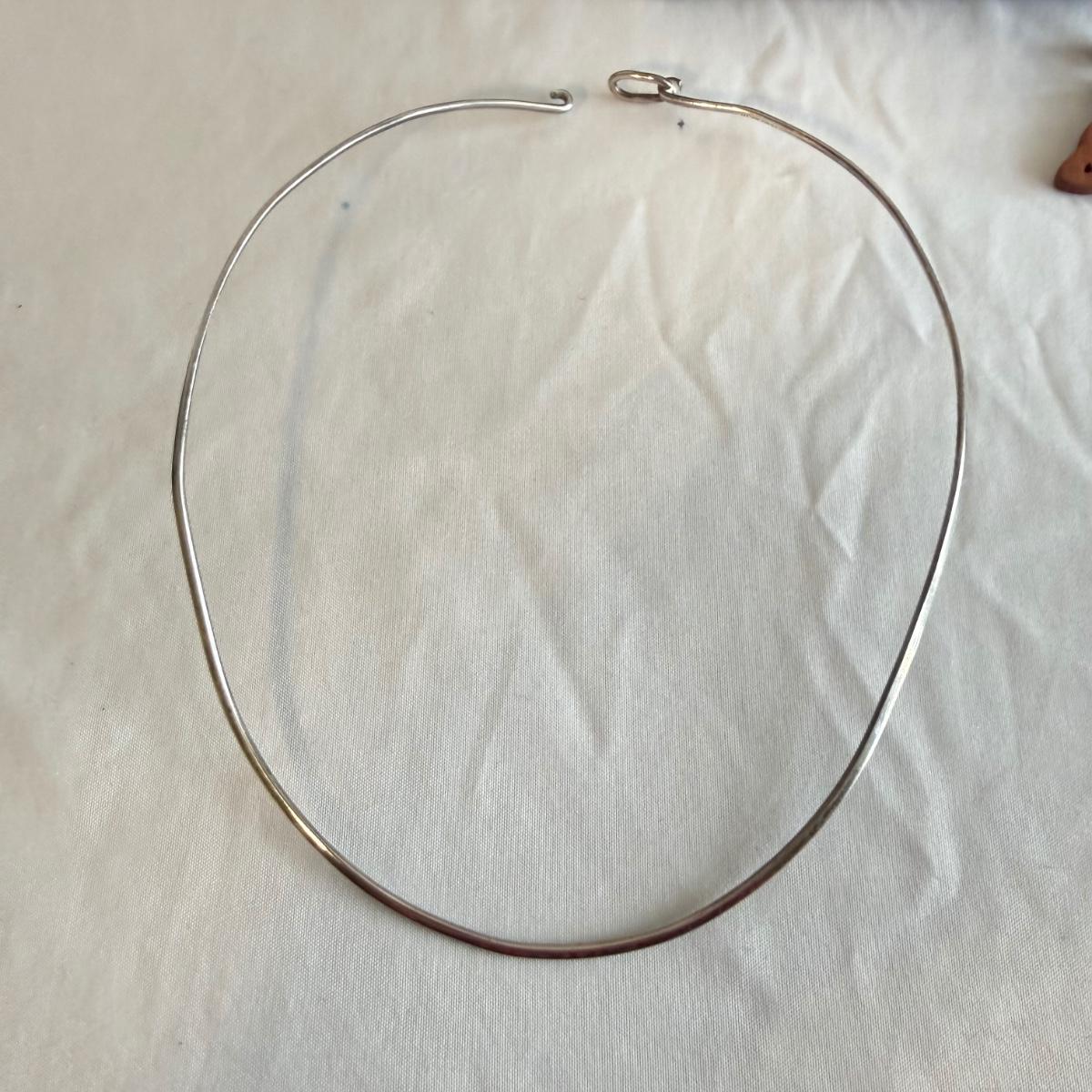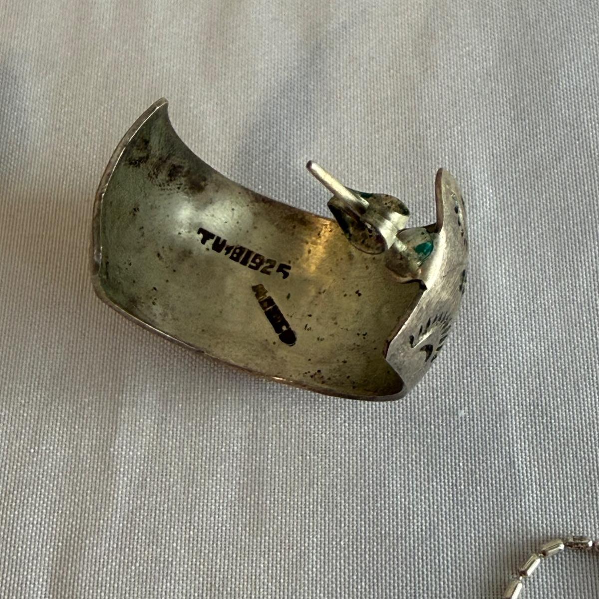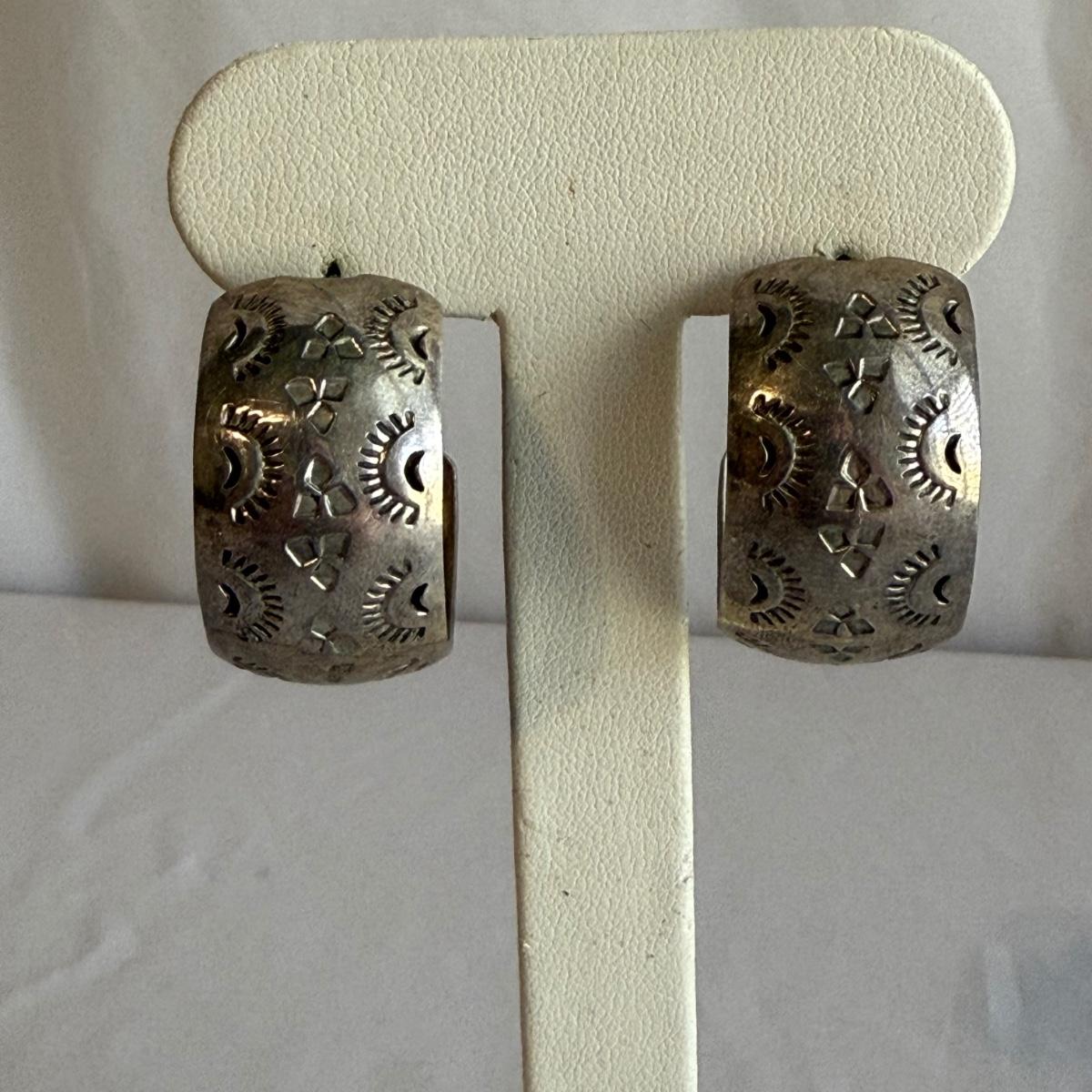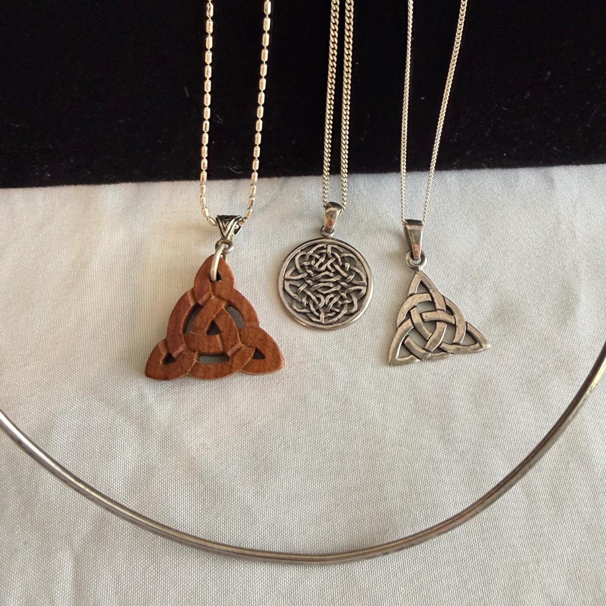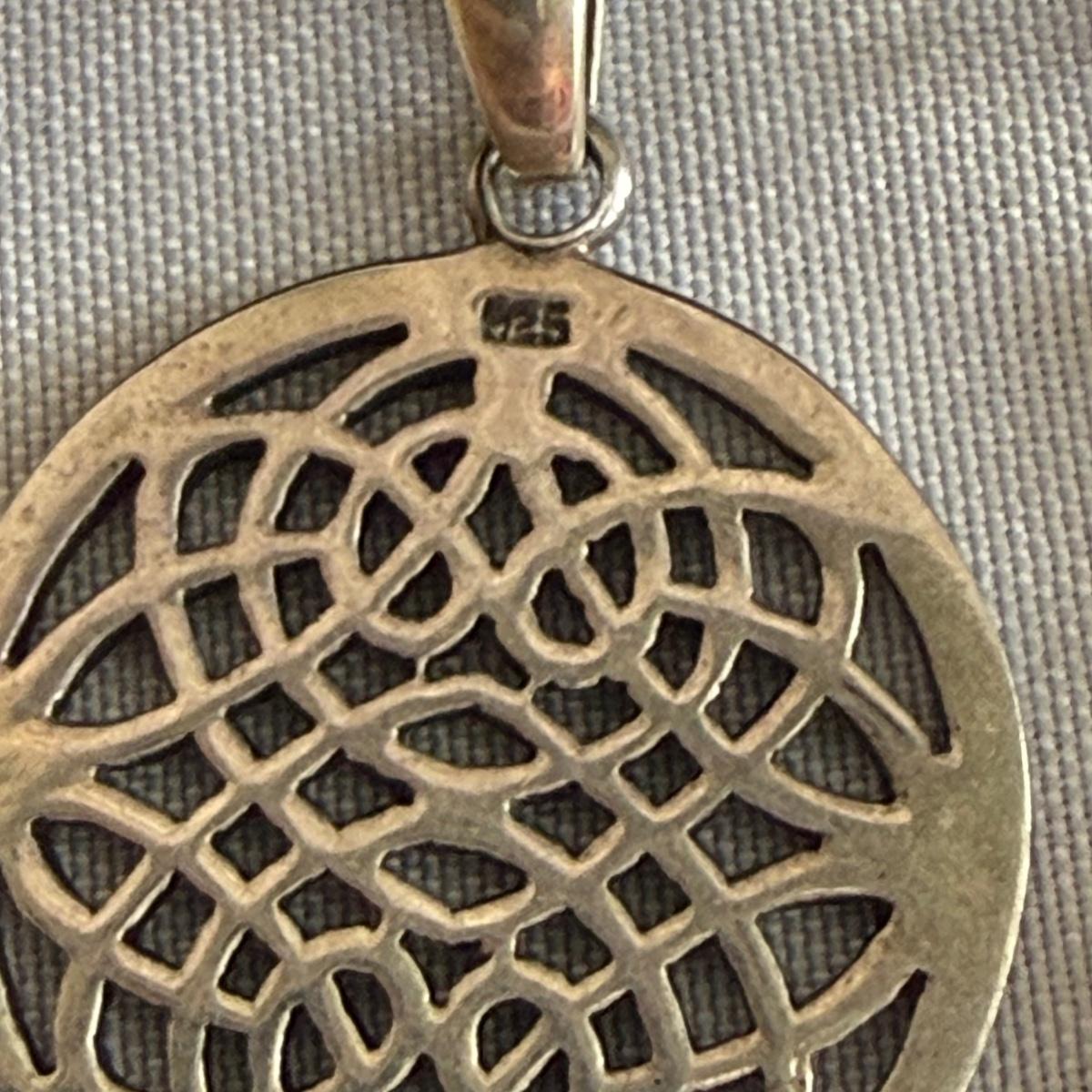Two trinity pendants and an infinity circle pendant on chains marked 925 plus large half-cuff earrings for pierced ears with Native American-like stamp design and a 925 choker. One pendant is carved wood and all other items are silver and marked 925 with other markings as well. See images. All sales are final. No returns or refunds. Please bid accordingly. Shipping available.