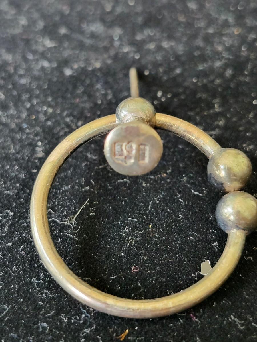 It is worn on the shoulder by men and on the breast by women. The pin goes through the fabric and then the fabric is pulled back through the ring.
