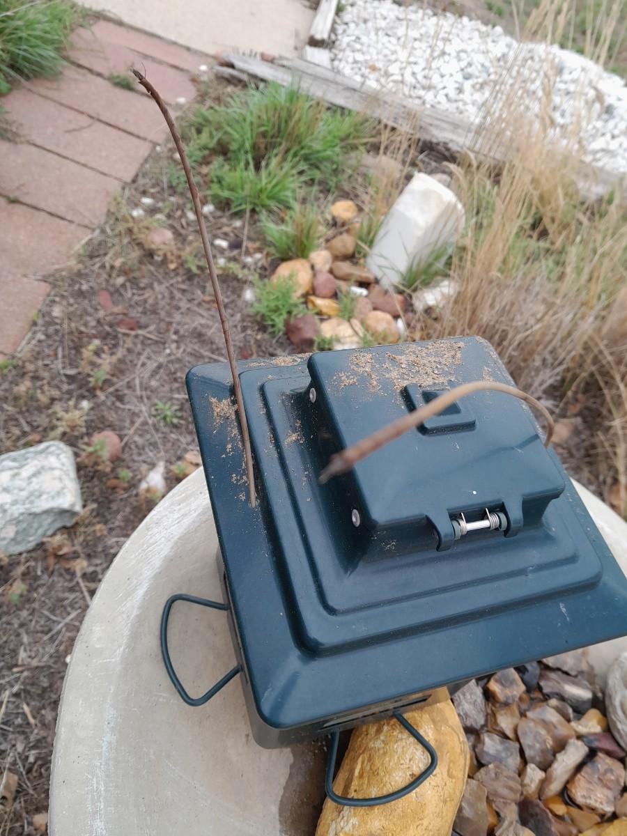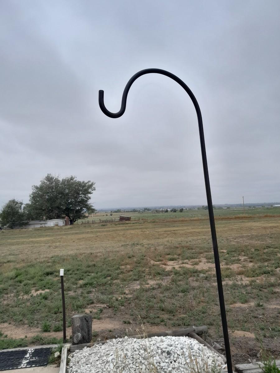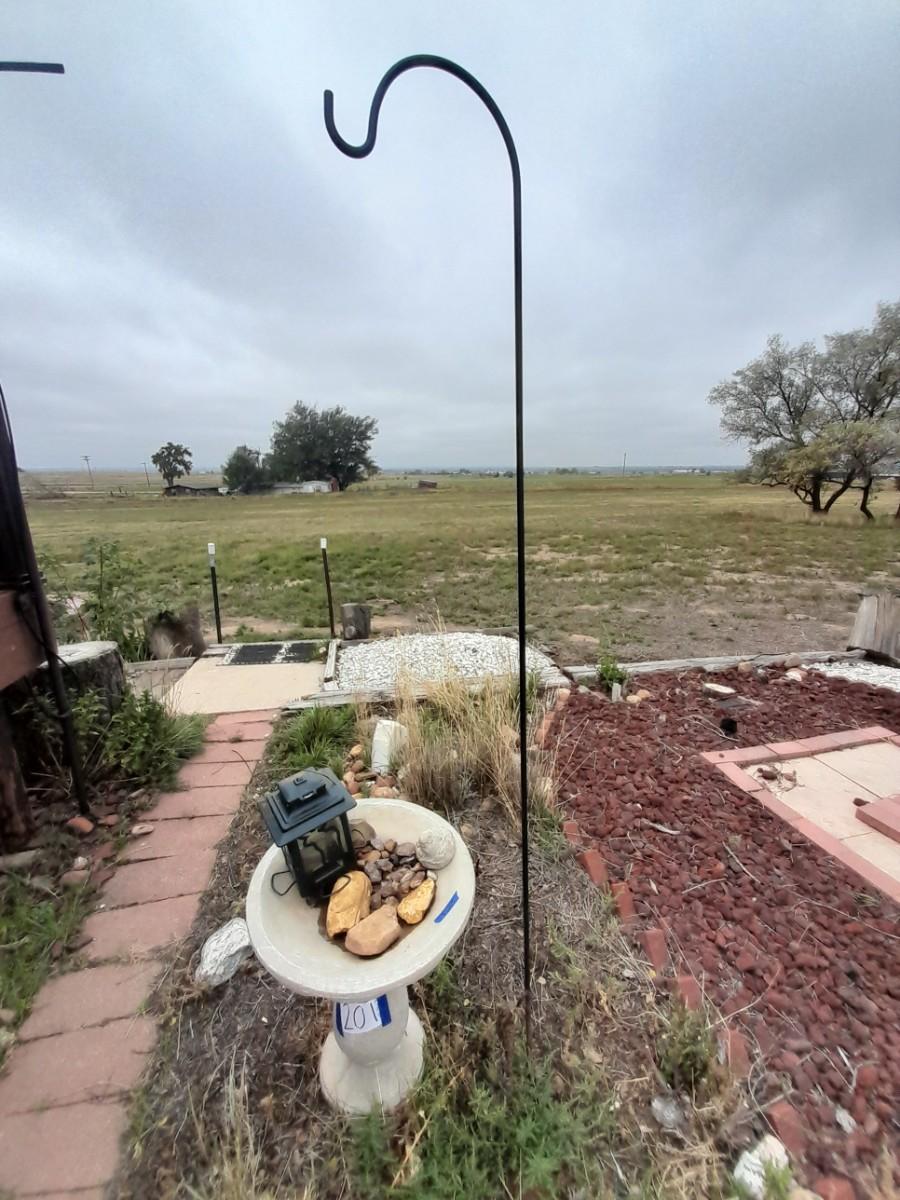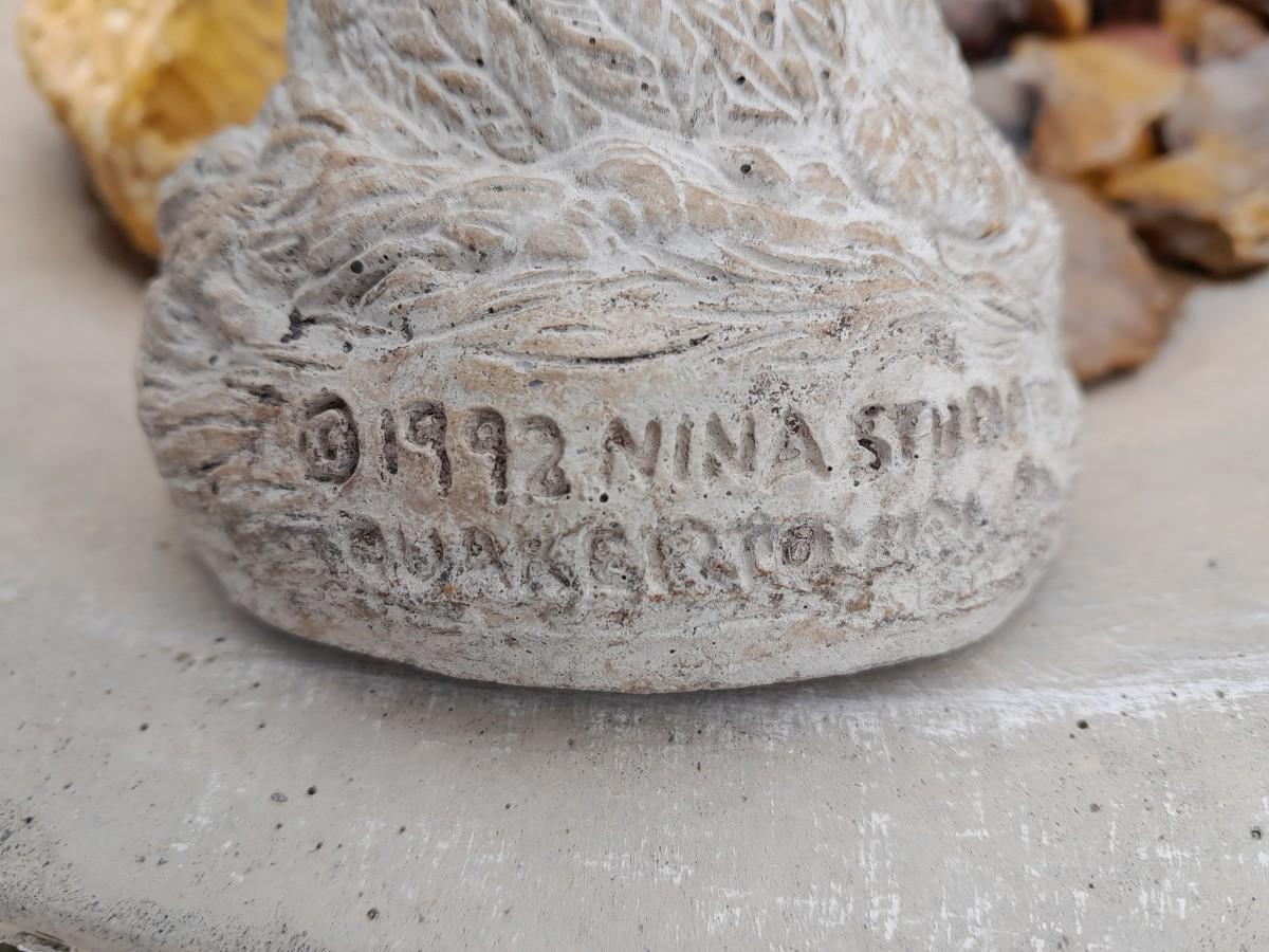 19" STAND X 23" BOWL CEMENT BIRD BATH, BIRD FIGURE, BIRD FEEDER AND GARDEN HOOK