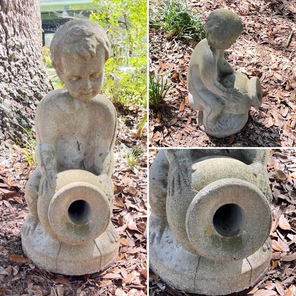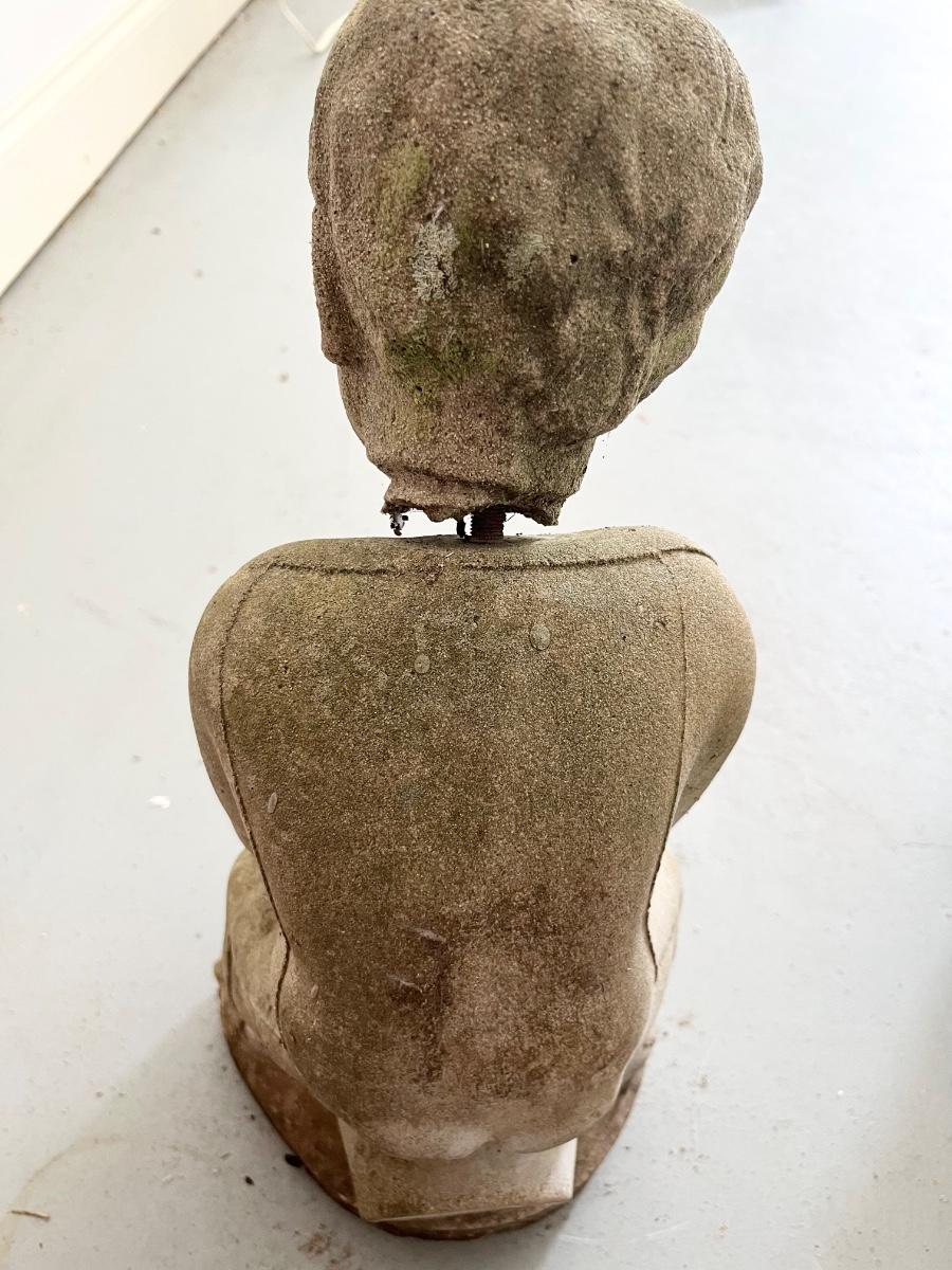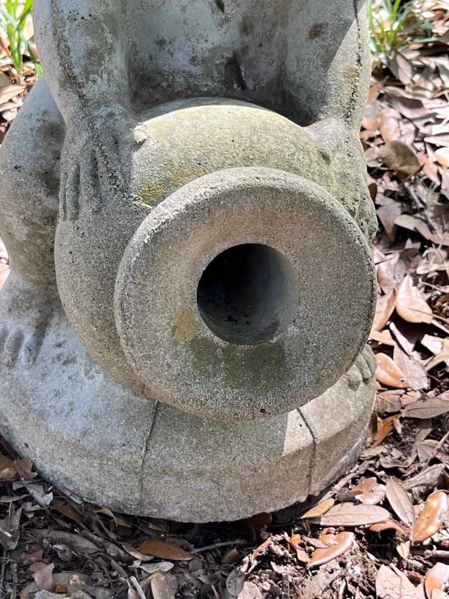 Cement around neck has broken away from the rebar, as seen in photo, but statue is very sturdy. ~ 20” H x 9” Round