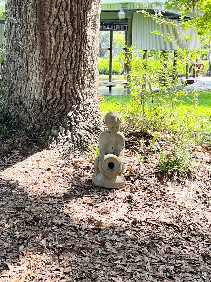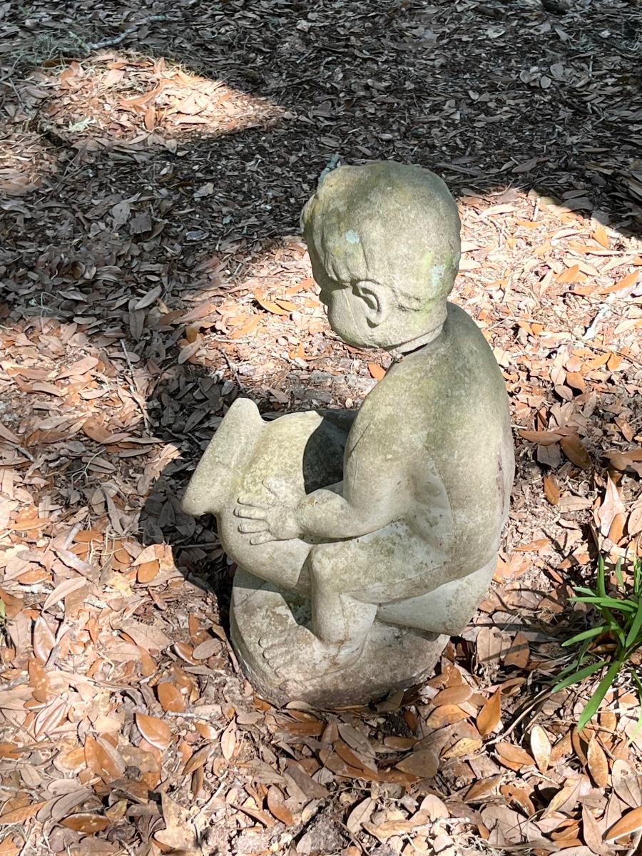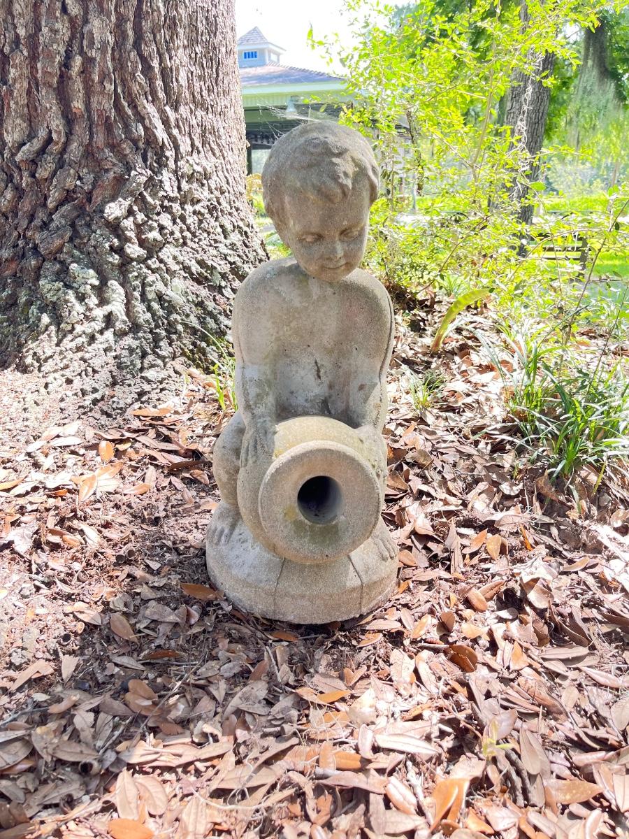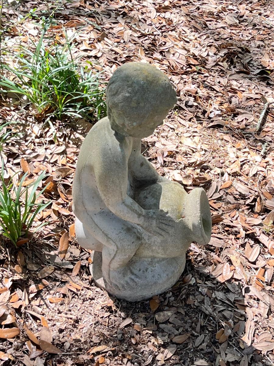 Cement around neck has broken away from the rebar, as seen in photo, but statue is very sturdy. ~ 20” H x 9” Round