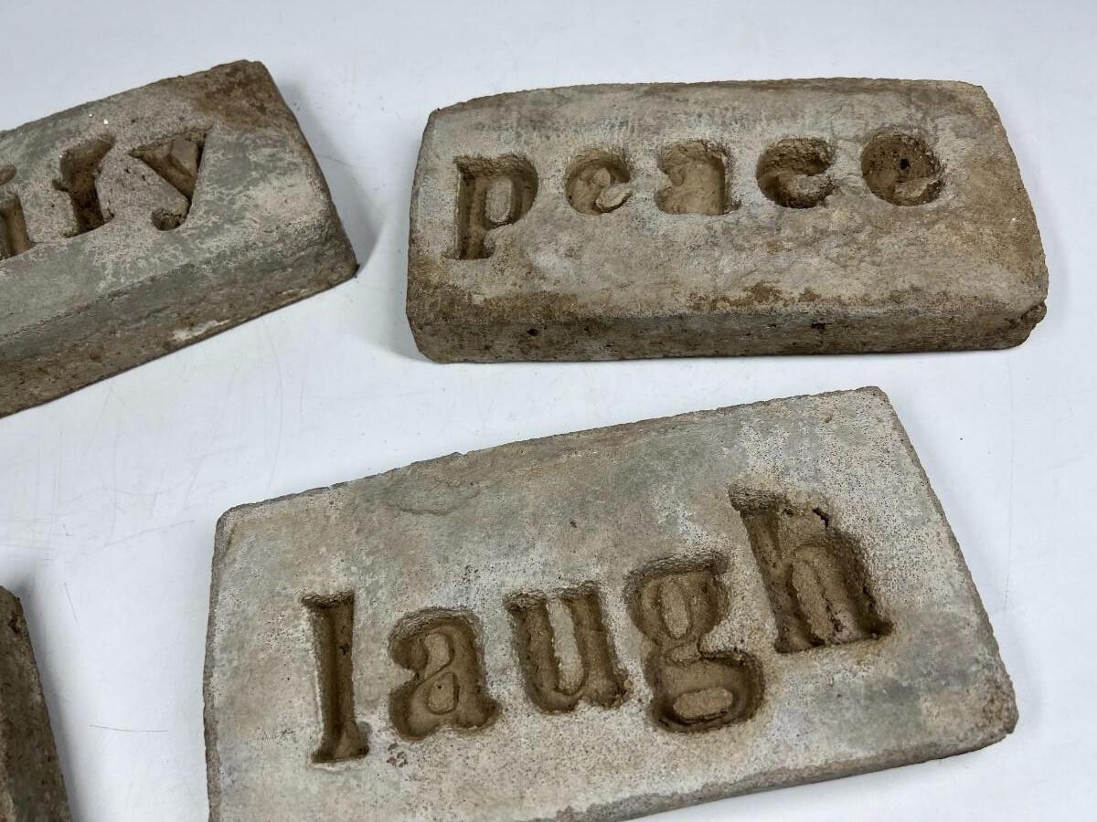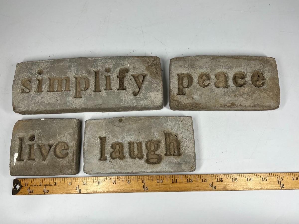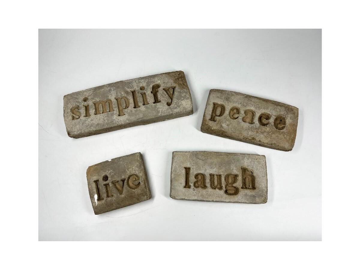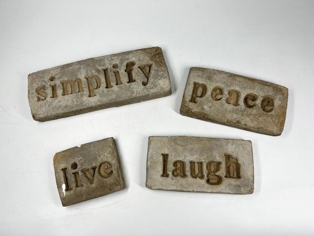 Cement Garden Art Affirmation Words- Peace, Simplify, Live, and Laugh. Great in the garden or displayed. Various sizes.