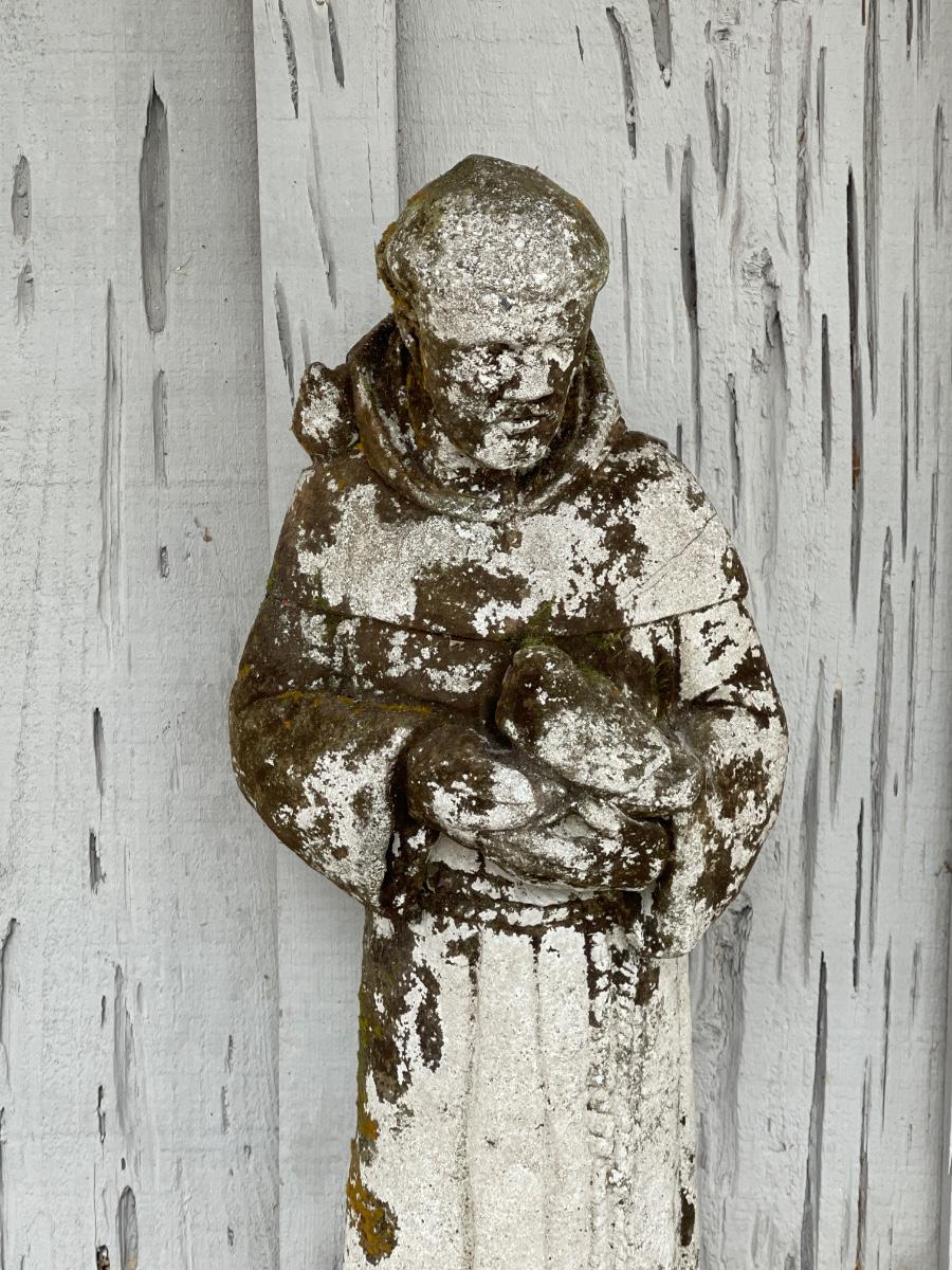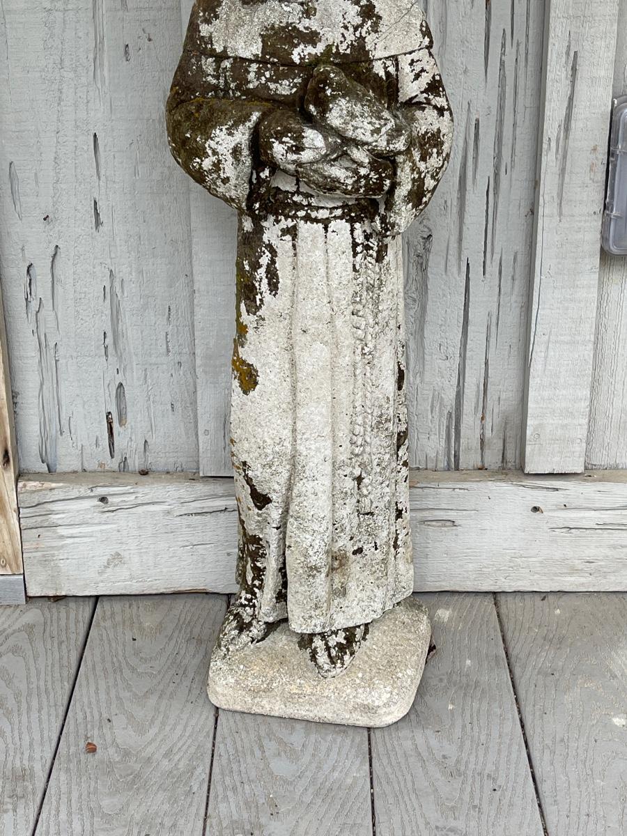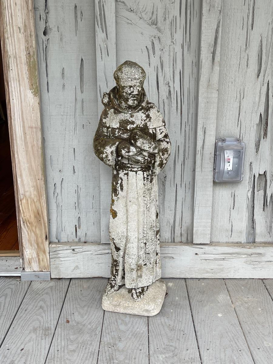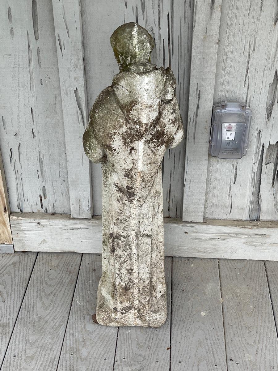 He has been in the garden and yes, he is very heavy. 30” H x 7” W x 7” D