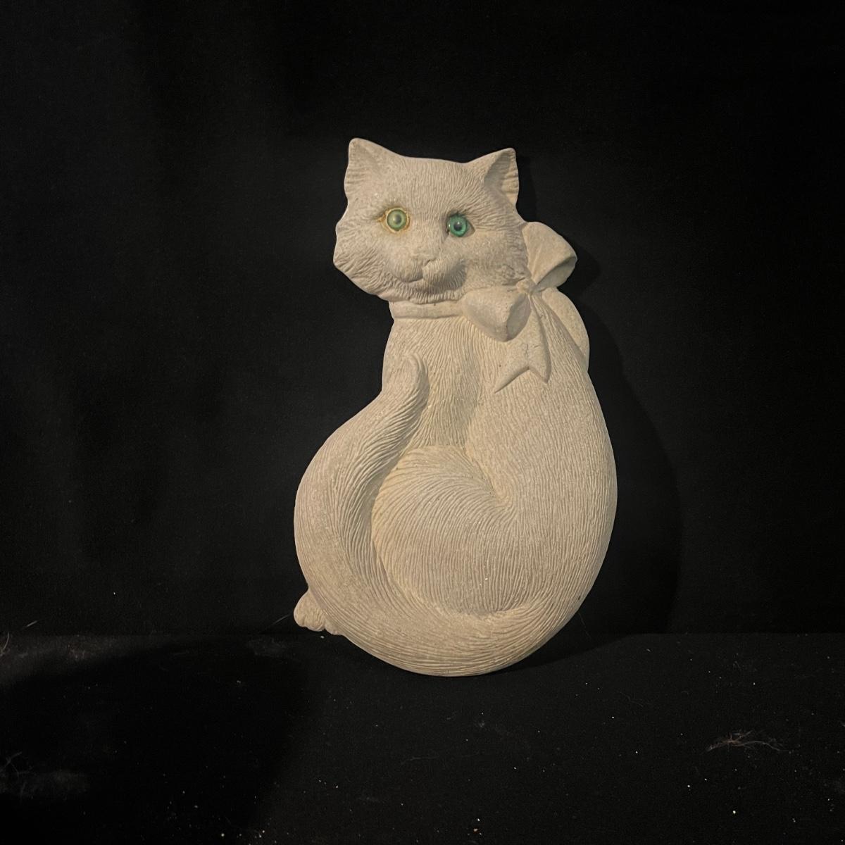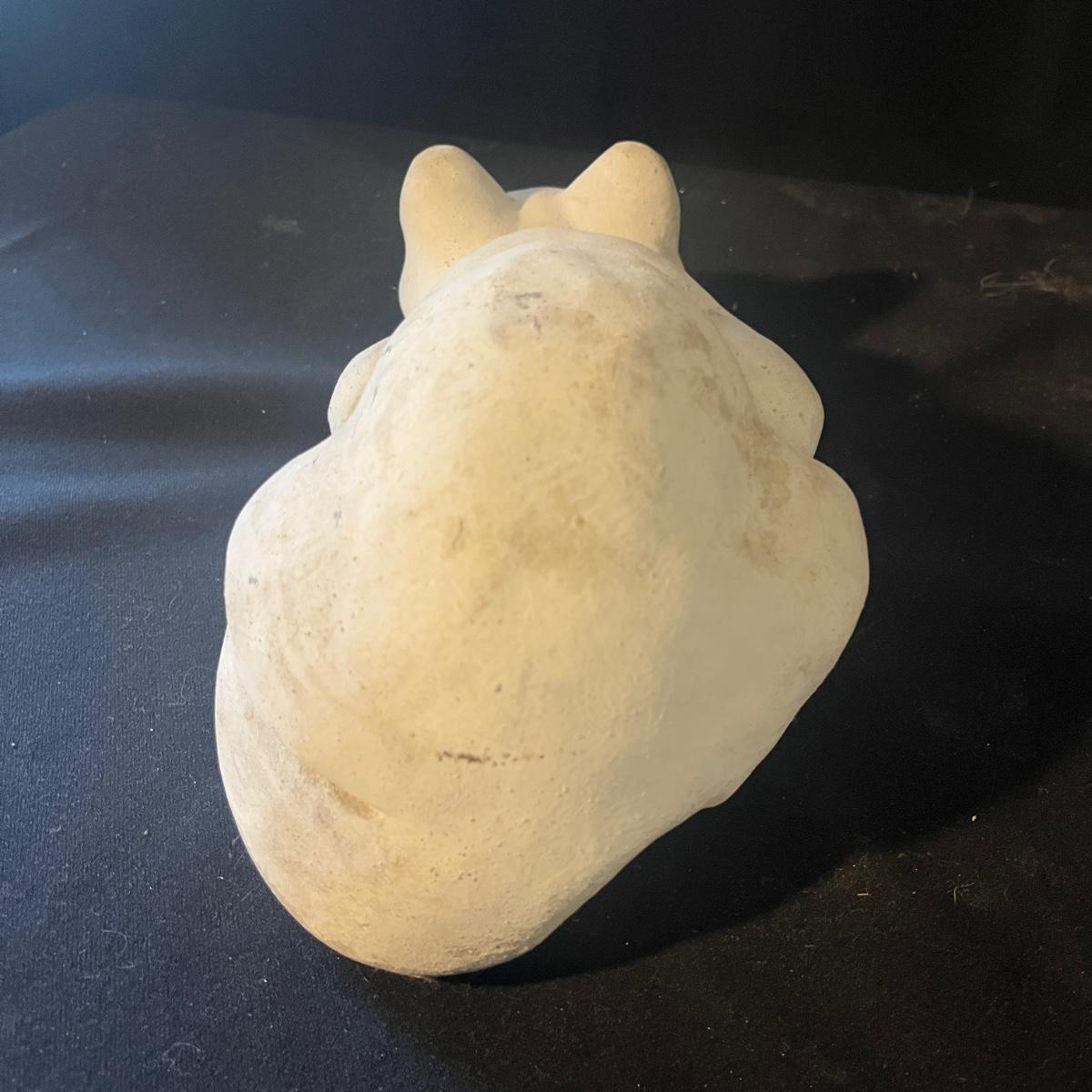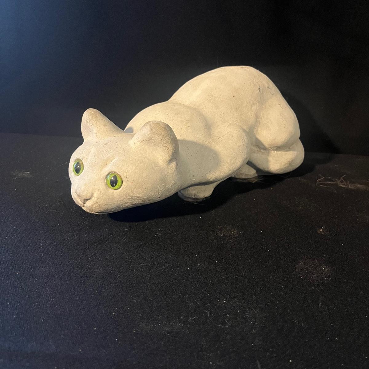 Lot includes a stone cat, two cement cats with wings, cement cat wall hanging and a cement cat that measures 11.5” x 6” x 5”.