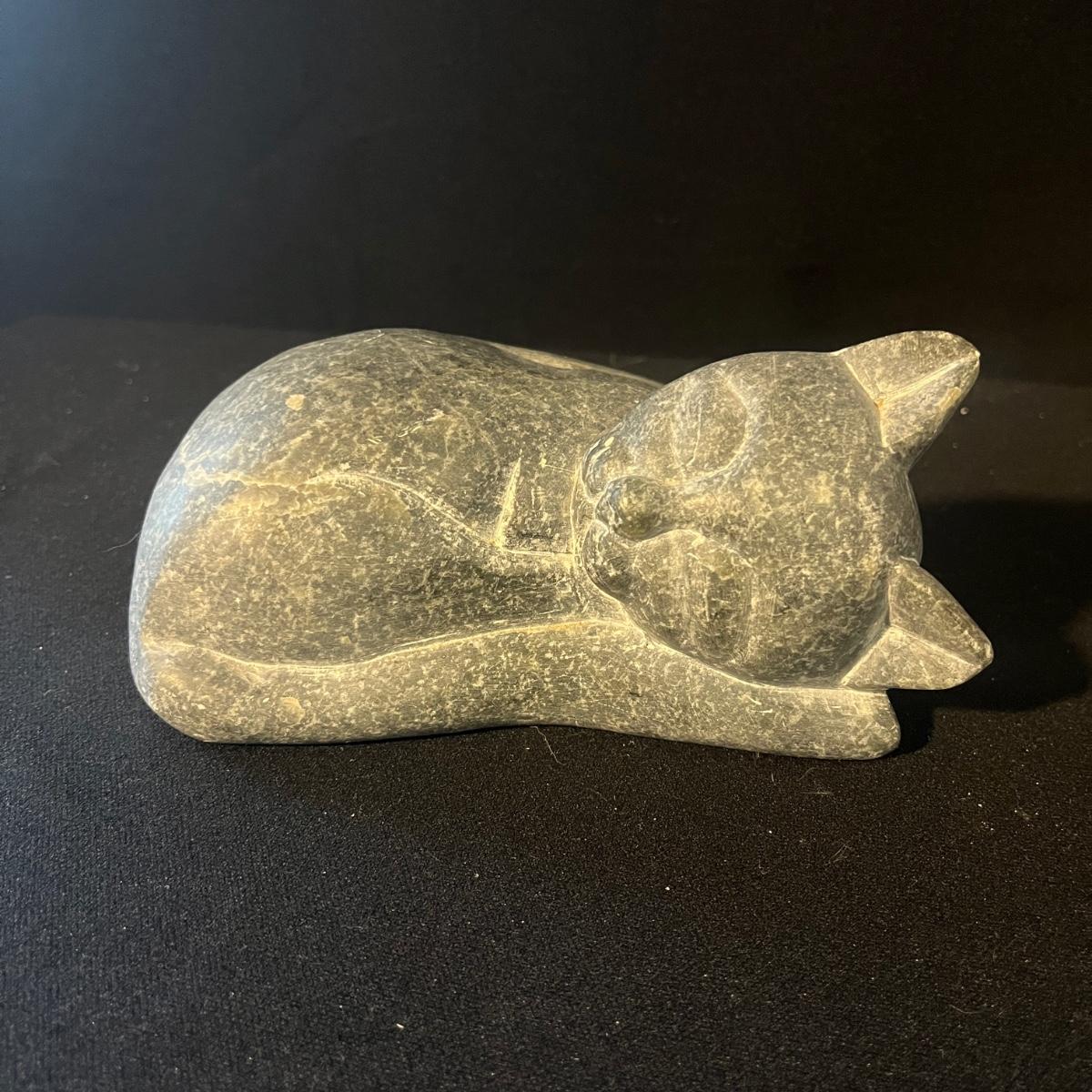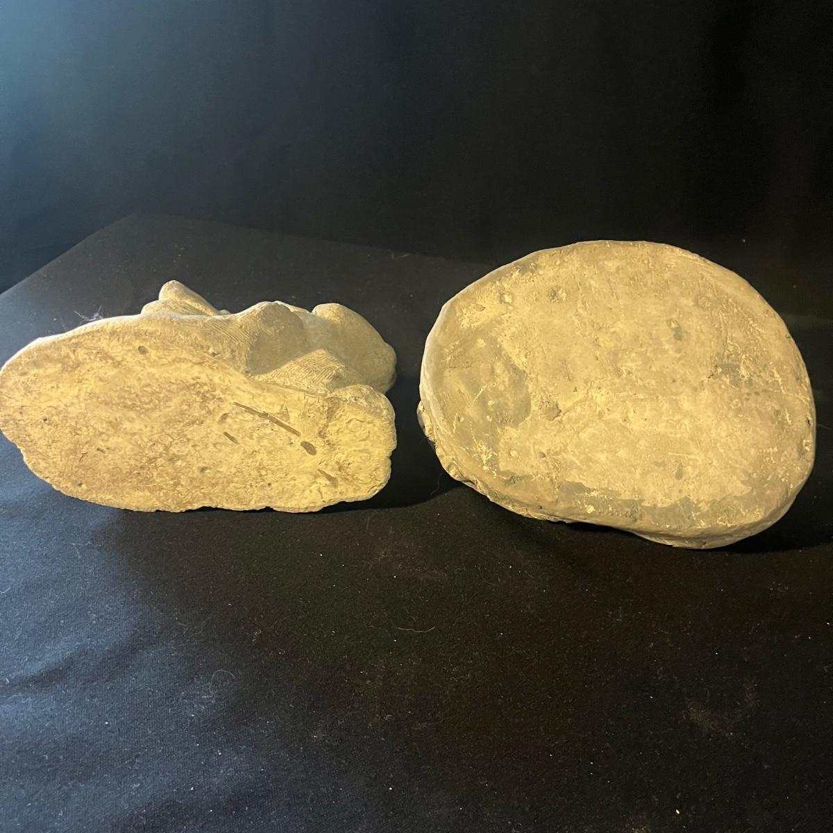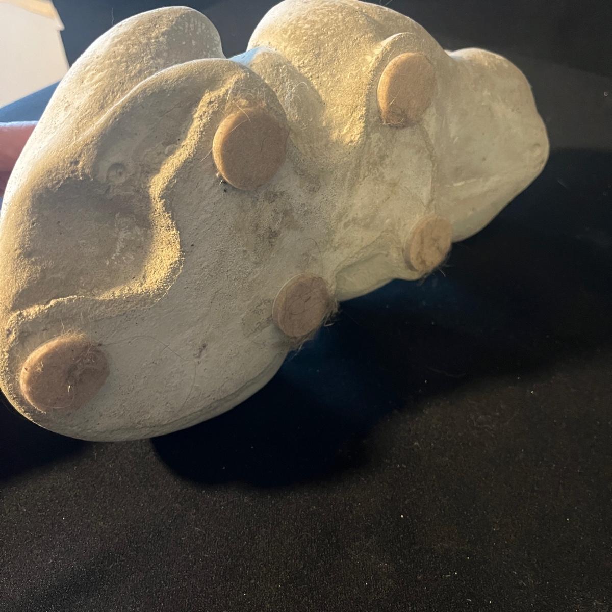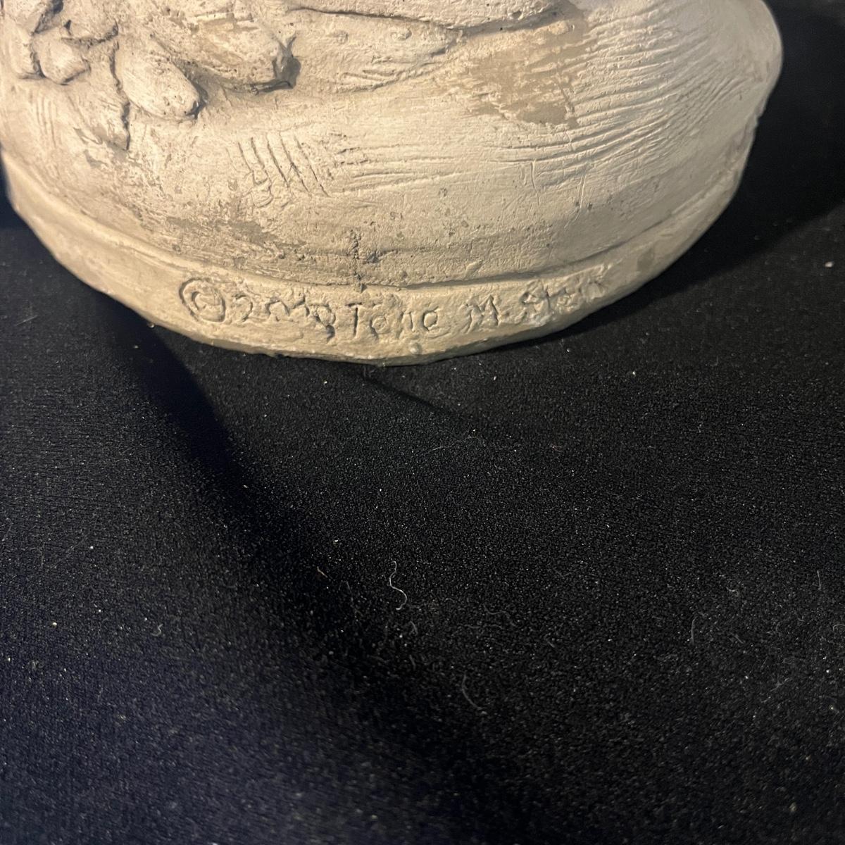 Lot includes a stone cat, two cement cats with wings, cement cat wall hanging and a cement cat that measures 11.5” x 6” x 5”.