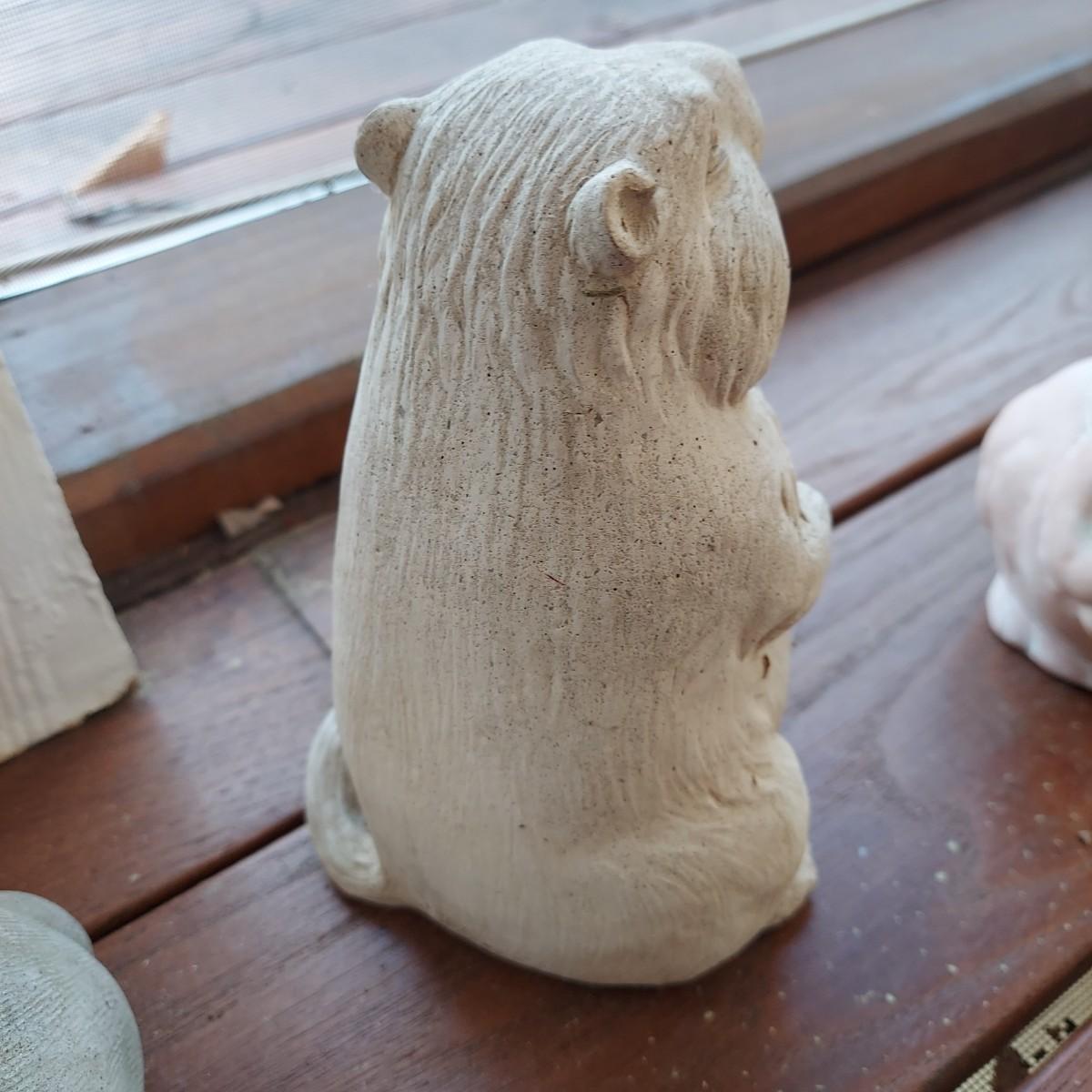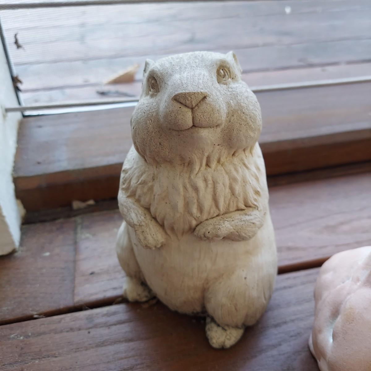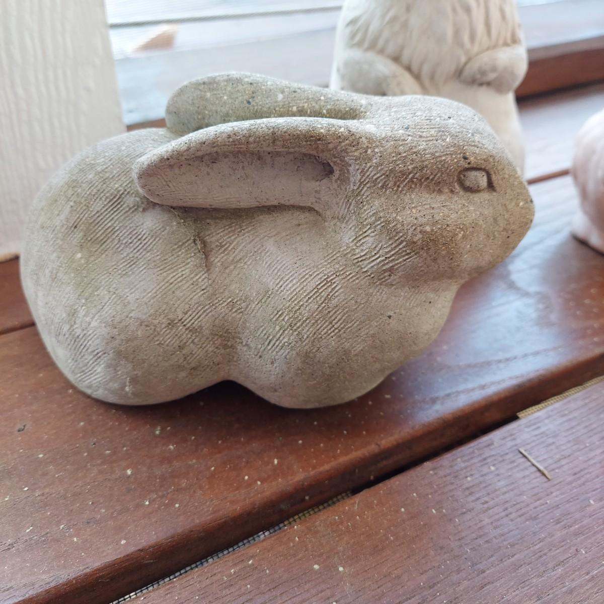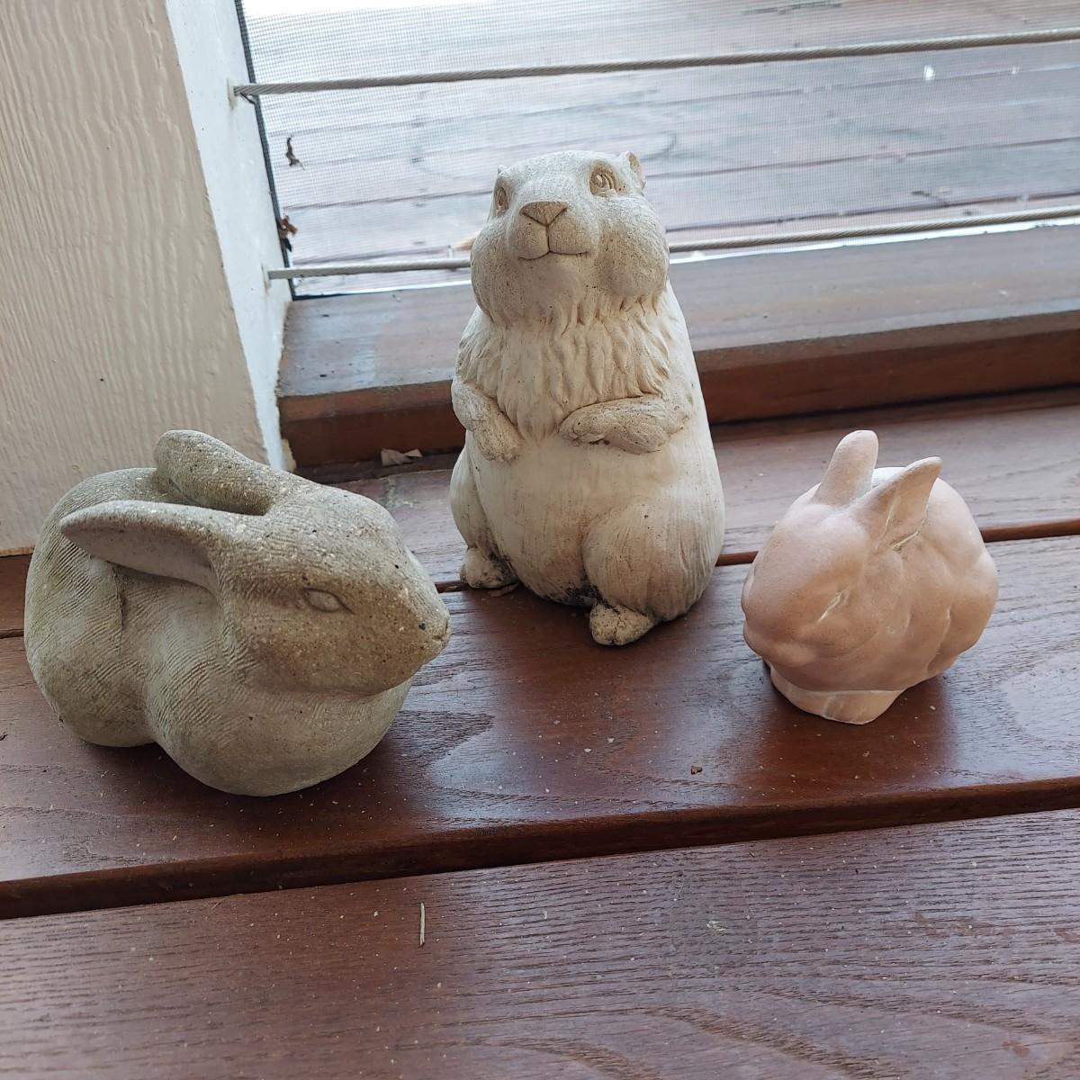 Lot includes three solid yard statues in the shapes of animals. There is a cement bunny and groundhog as well as a terracotta bunny. The groundhog measures approximately 6"H. The largest is the bunny that measures approximately 5” x 8” x 4"H. Please see photos for details. Local Pickup Only