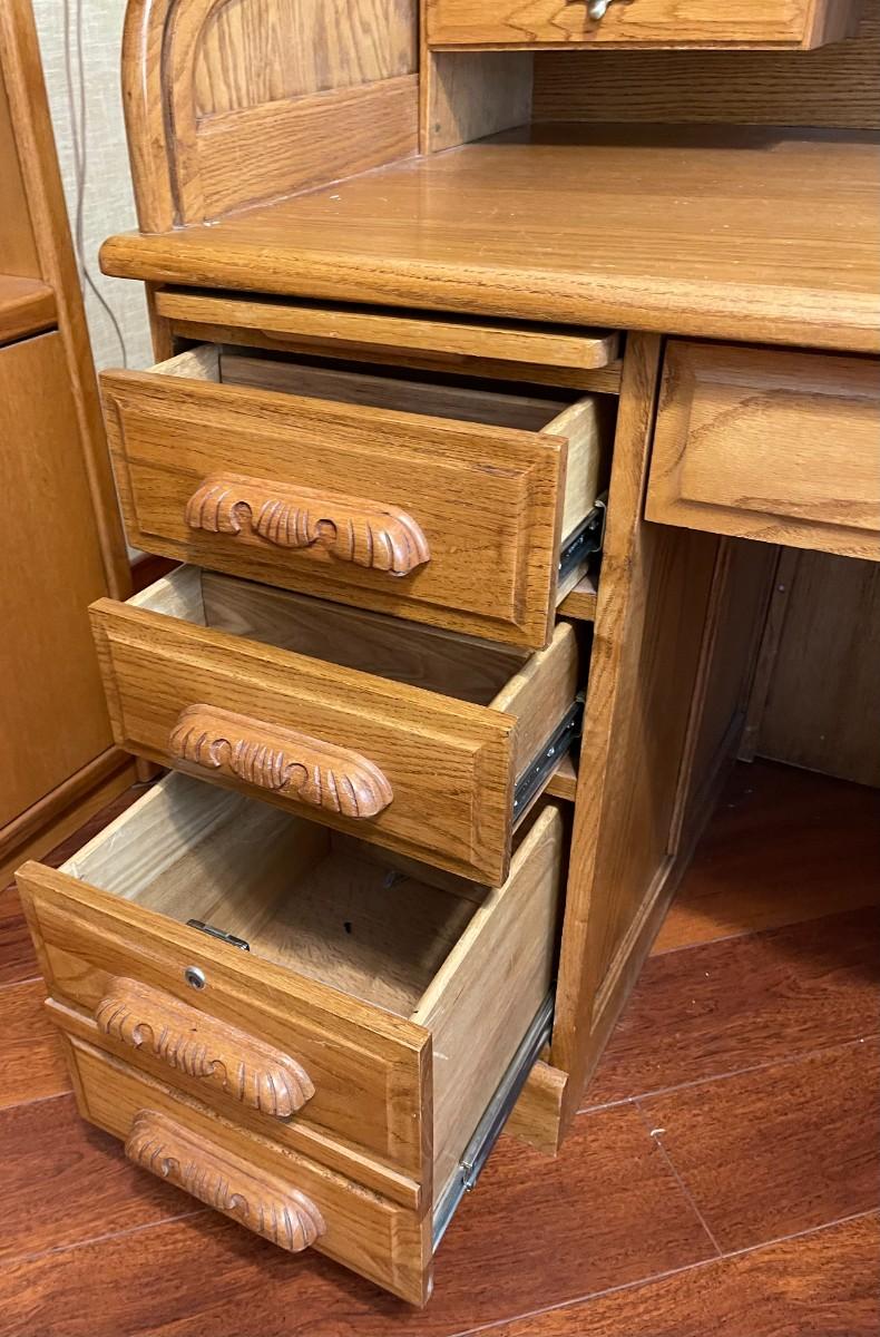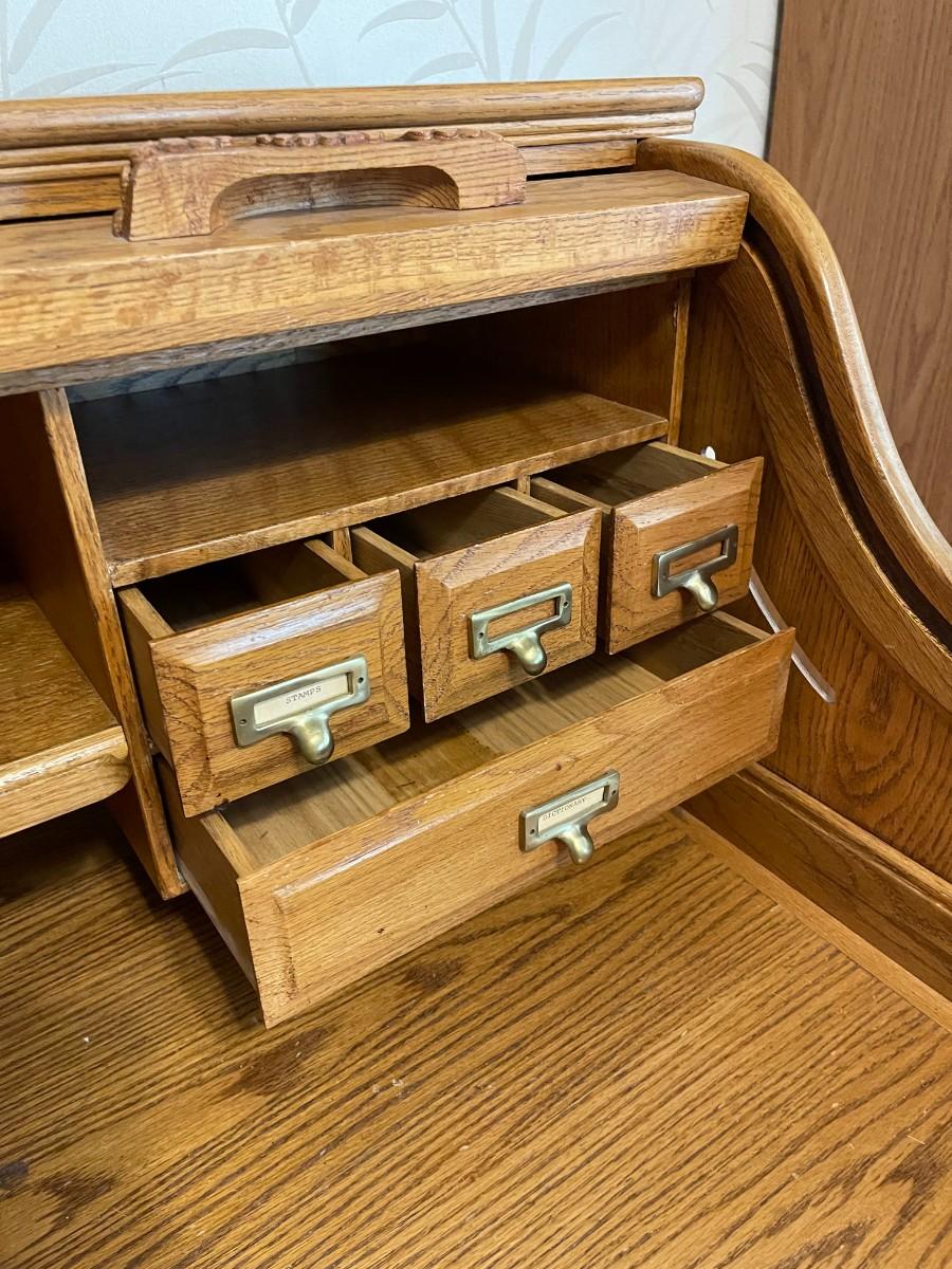 Cenntennial Rolltop Desk with keys, 15 drawers, very good condition, oak Banker's Desk